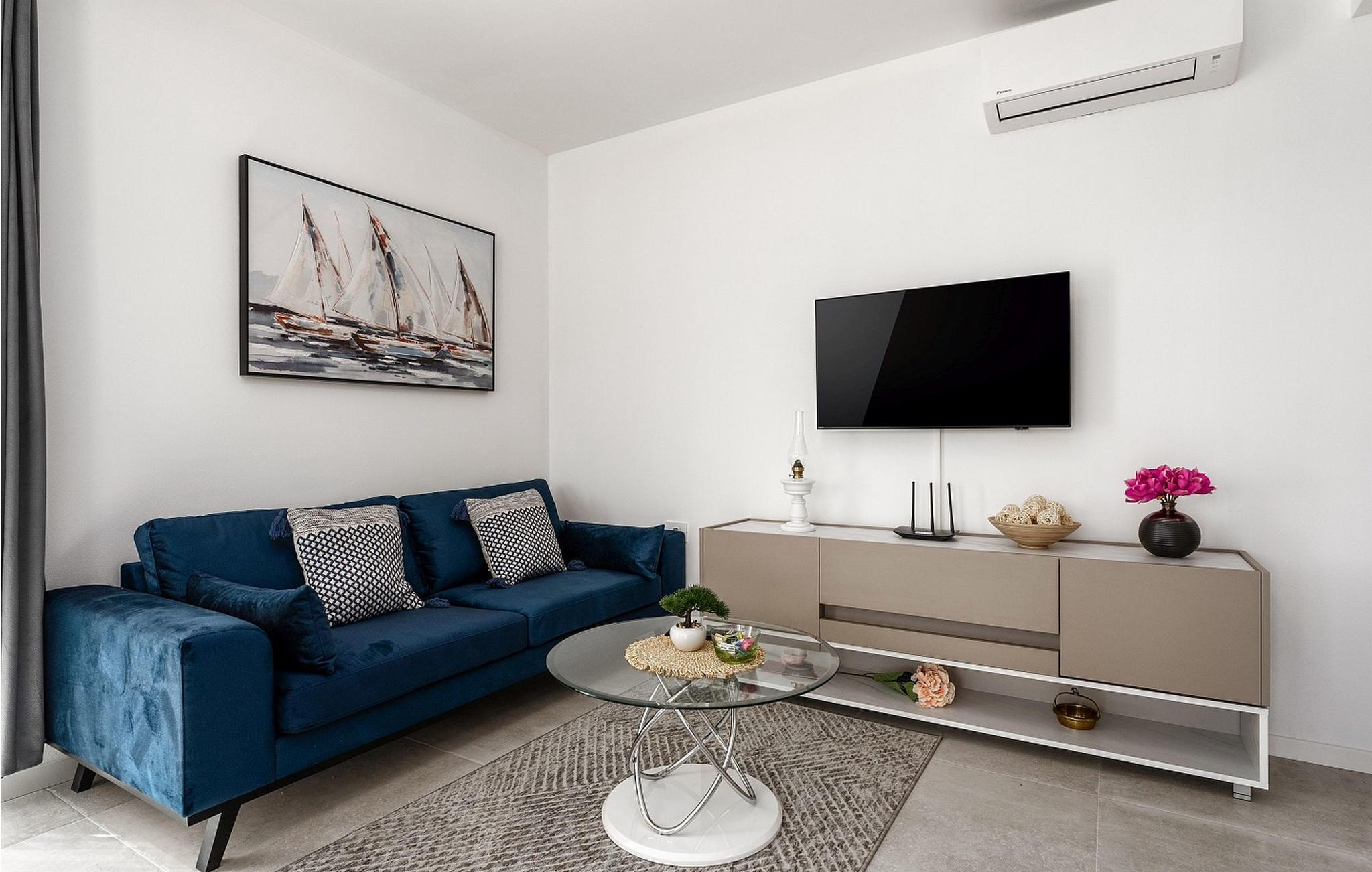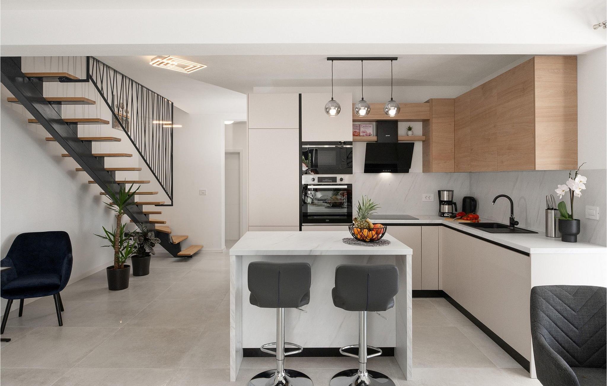 Die Villa bietet Platz für eine große Familie und ist vollständig klimatisiert. Im Erdgeschoss erwartet Sie ein großzügiges Wohnzimmer mit direktem Zugang zur Terrasse und zum Pool. Die voll ausgestattete Küche und der elegante Essbereich laden dazu ein, gemeinsam zu kochen und Mahlzeiten zu genießen. Im Obergeschoss finden Sie einen Balkon mit einer traumhaften Aussicht auf das glitzernde Blau des Meeres.