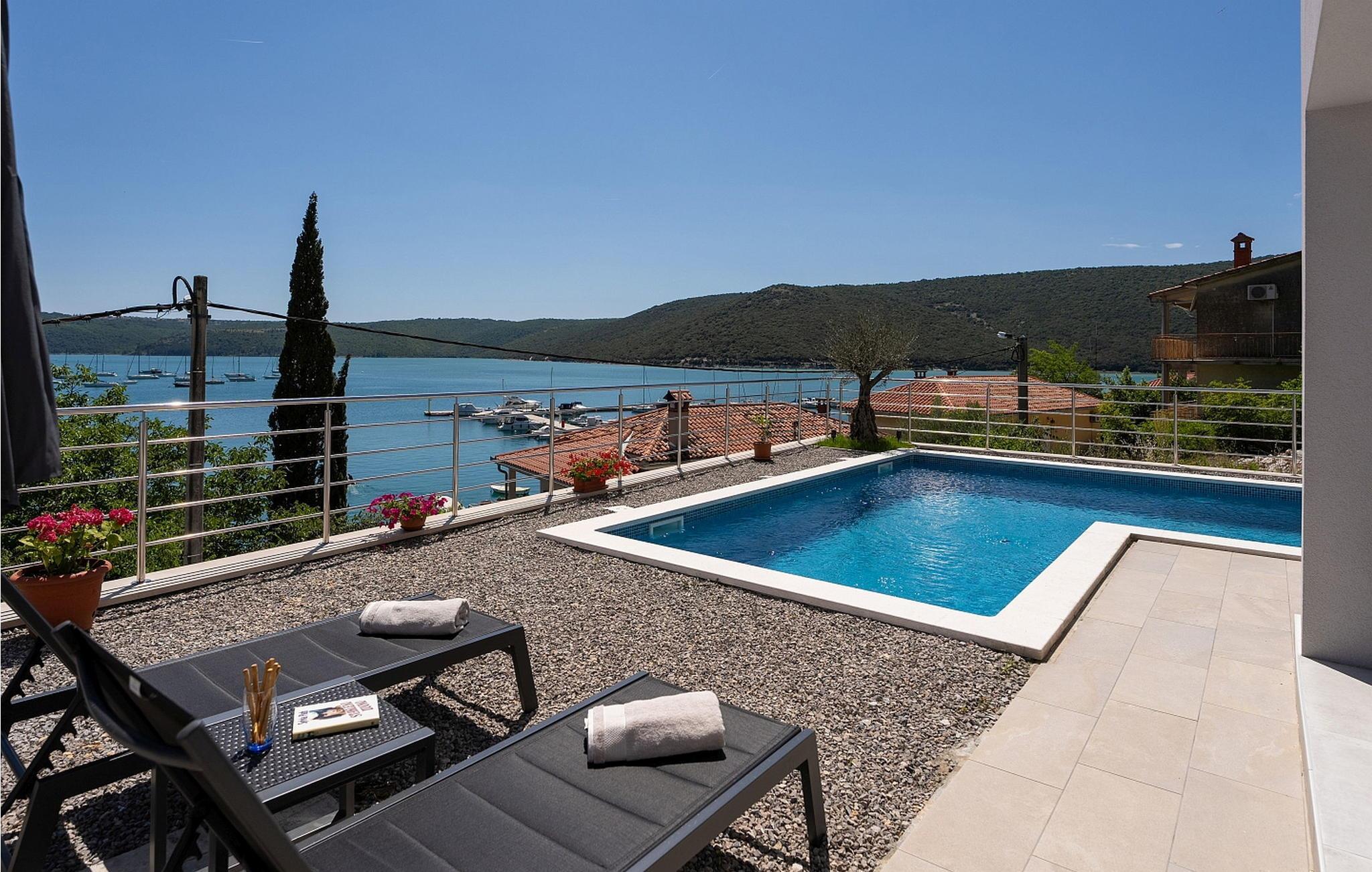 Erleben Sie pure Entspannung und Luxus in der modernen Villa Cincin im malerischen Ort Trget. Mit ihrem fantastischen Blick auf die Bucht von Rasa ist dieses Ferienhaus der ideale Ort für einen erholsamen Urlaub. Trget ist bekannt für seine köstlichen Muscheln, und die charmante Stadt Labin liegt nur eine kurze Autofahrt entfernt.