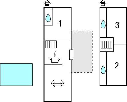 Badezimmer (nr. 3) - WC. Warmes und kaltes Wasser. Dusche