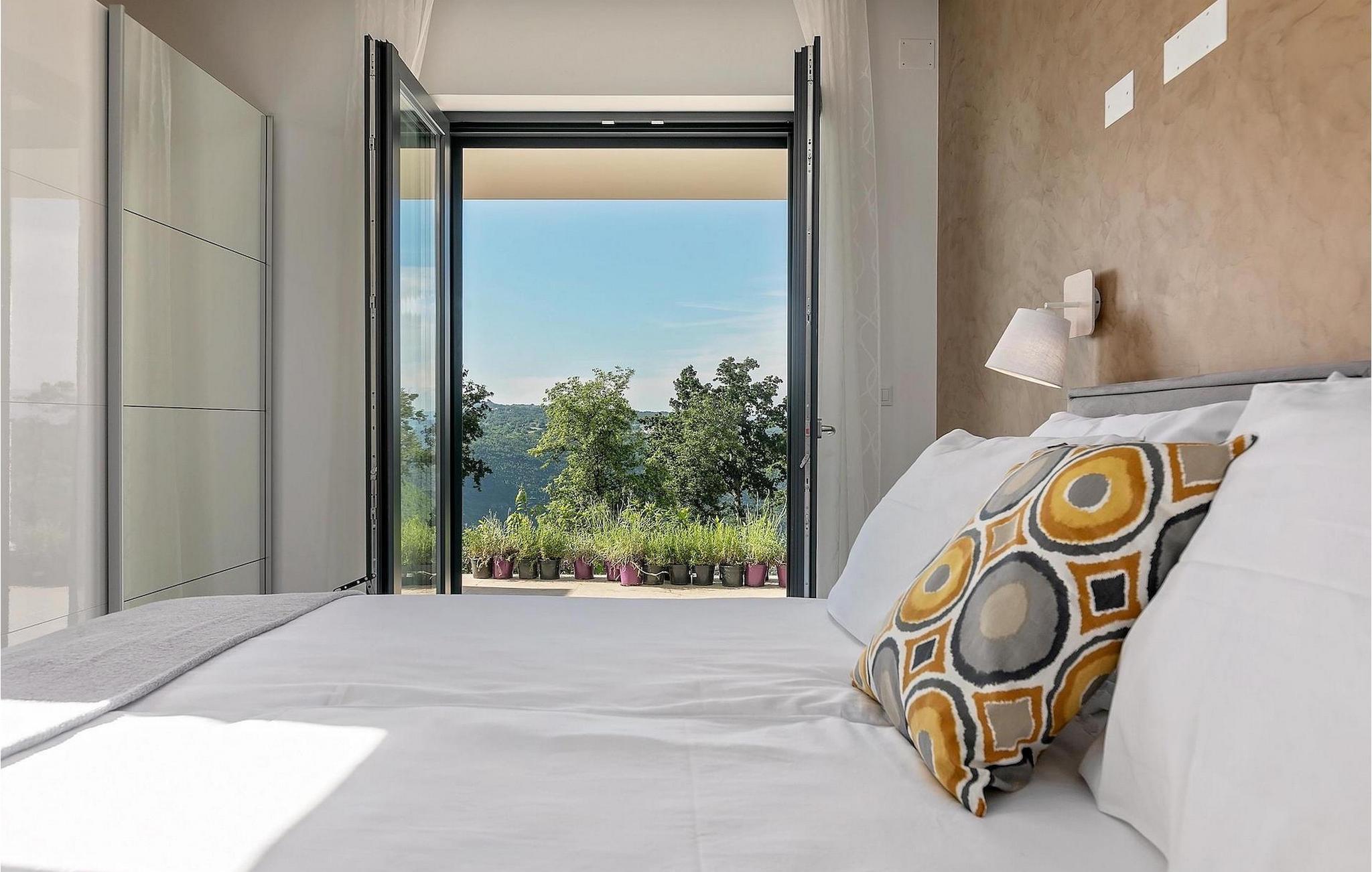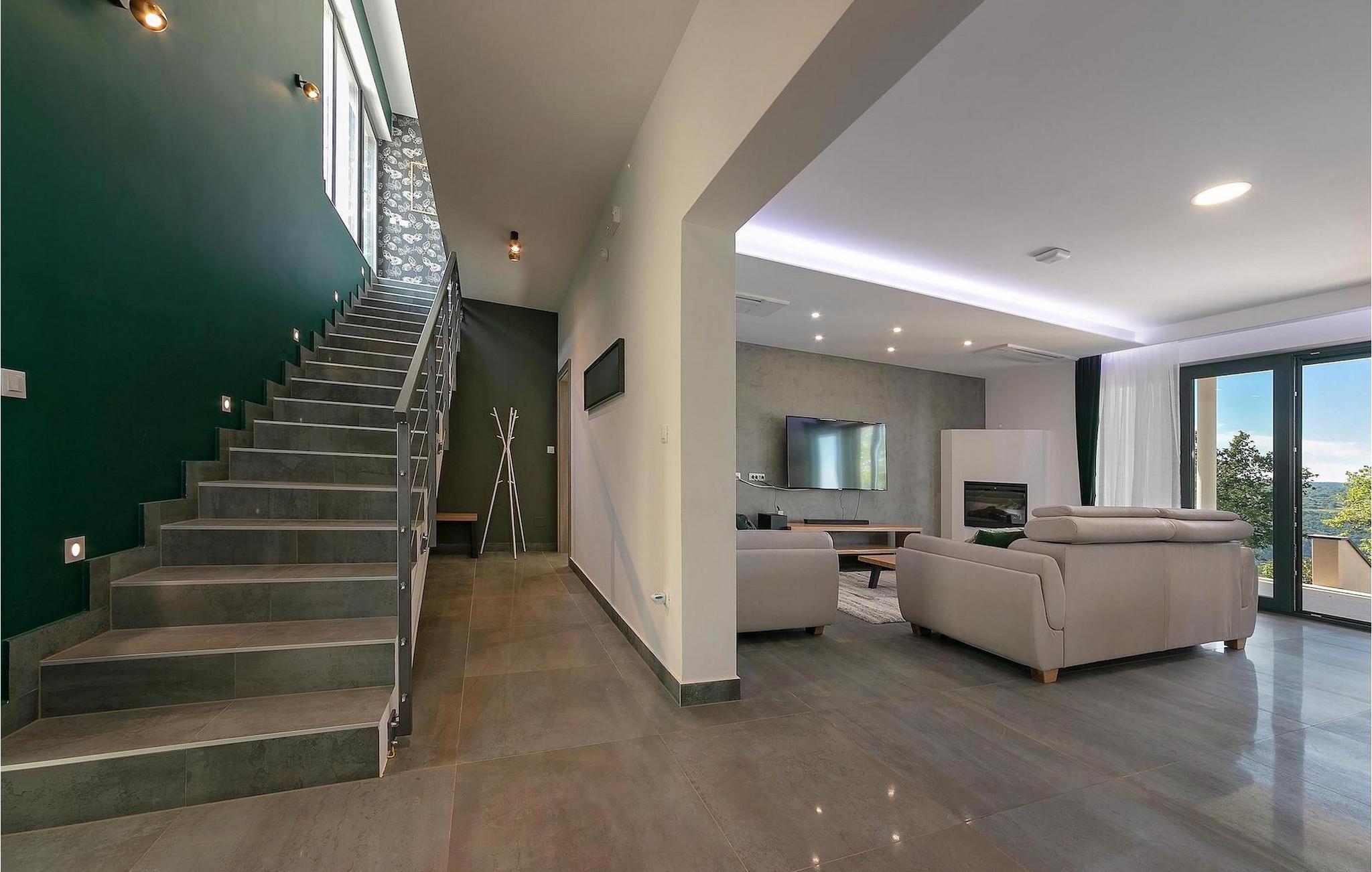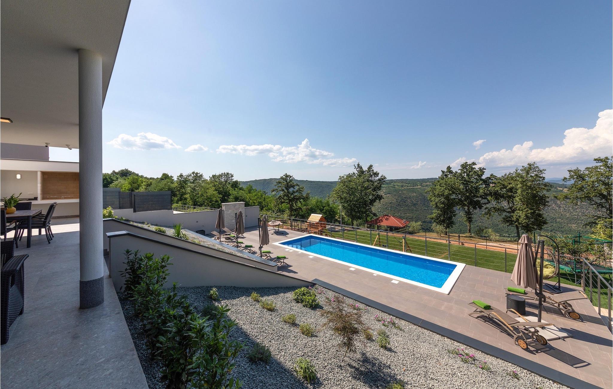Falls Sie von einen erholsamen Urlaub träumen, mit zahlreichen zusätzlichen Aktivitäten für die Unterhaltung, modern eingerichtete Interieurs und das schöne istrische Hinterland, Villa Althea ist Ihre richtige Auswahl. Die Villa bietet Unterkunft für bis zu 8 Personen in 4 schön eingerichteten, räumlichen Schlafzimmern ausgestattet mit Fernsehern, Klimaanlagen und privaten Badezimmern. Im Erdgeschoss finden Sie ein großes Wohnzimmer mit sorgfältig ausgewählten Details in ruhigen Farbtönen und ein Schlafzimmer. Das Wohnzimmer ist im offenen Konzept verbunden mit Esszimmer und Küche. Diese Räume schauen auf die Treppen die zum großen, einladenden Pool führt. Hier finden Sie viele Sonnenliegen versteckt im Schatten der Sonnenschirmen für warme Tage, während der große Pool bereit steht, falls Sie entscheiden einzutauchen, um Erfrischung zu finden. Der Garten verbreitet sich im Außenbereich und bietet viele Freizeitaktivitäten an, wie ein Netz für Badminton und Volleyball, einen Trampolin und Kinderspielplatz ideal für die Vergnügung der Kleinen, während Sie Ihre Speisen am Grill vorbereiten. Mit bis zu 8 Plätzen im Essbereich im Freien, können Sie Ihre Abende mit Blick auf den Pool und die grünen Hügel Istriens im Hintergrund genießen. Auf der ersten Etage finden Sie 3 Schlafzimmer und zwei Terrassen. Eine Terrasse ist überdacht, auf der Sie Sport treiben können, während die andere zum Sonnenbaden einlädt.