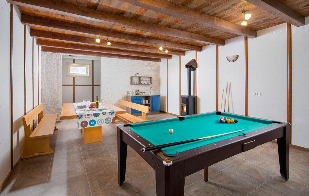 Die wunderschöne Villa Sunny liegt an einem schönen Ort namens Snašici, in der Nähe der mittelalterlichen Stadt Labin, die mit einer reichen Geschichte, atemberaubenden Sehenswürdigkeiten und natürlicher Schönheit aufwartet. Auf einer Wohnfläche von 280 m² verfügt die Villa Sunny über 4 geräumige Schlafzimmer mit französischen Betten, wobei ein Zimmer über ein Zustellbett für eine weitere Person verfügt. Die Villa verfügt außerdem über 4 wunderschön eingerichtete Badezimmer mit Dusche und 2 separate Toiletten. Die charmante Küche ist mit allem ausgestattet, was Sie während Ihres Aufenthalts benötigen könnten, das Esszimmer bietet bequem Platz für bis zu 8 Gäste, während das schöne Wohnzimmer mit einem ausziehbaren Sofa, einem Fernseher und einem schönen Holzofen ausgestattet ist, der eine gemütliche und gemütliche Atmosphäre schafft warme Atmosphäre in den kälteren Wintermonaten. Diese vollklimatisierte Villa verfügt außerdem über einen gut ausgestatteten Keller, in dem die Gäste angenehme gemeinsame Momente verbringen können, passend ausgestattet mit einem massiven Holztisch und Bänken. Wer gerne aktiv ist und Erholung braucht, wird im Trimmschrank, der mit einem Stepper, einem Spinning-Fahrrad, einem Rudergerät und Gewichten ausgestattet ist, sicher seinen Spaß haben. Wenn Sie Lust auf Wettkampf haben, können Sie eine Partie Billard oder Darts spielen und wer Körper, Geist und Seele entspannen möchte, kann dies in der Sauna tun oder sich beim Zubereiten von Mahlzeiten auf dem Wandgrill vergnügen. Auch im Freien ist Spaß garantiert, denn den Gästen stehen auch ein Tennisplatz und ein Mini-Fußballfeld zur Verfügung. Der teilweise umzäunte, 1300 m2 große Garten verfügt über eine große Terrasse und einen von Sonnenliegen umgebenen Swimmingpool (35 m2), wo die Gäste zu jeder Tages- und Nachtzeit ein erfrischendes Bad genießen können. Für die jüngsten Gäste gibt es einen Kinderspielplatz. 4 private Parkplätze stehen ebenfalls zur Verfügung. Wählen Sie für Ihren Urlaub die Villa Sunny in der Nähe von Labin und genießen Sie die Schönheit der Ostküste Istriens. Villa Sunny teilt sich Sportanlagen für Tennis und Fußball mit Villa Nikola. Haustiere sind in dieser Unterkunft nach Ermessen des Eigentümers oder gegen eine Gebühr gestattet. Bitte beachten Sie, dass diese Unterkunft keine Jugendgruppen oder Junggesellenabschiede akzeptiert. Eine Jugendgruppe in dieser Unterkunft besteht aus Personen unter 30 Jahren. Buchen Sie diese Unterkunft nicht, wenn Sie eine Jugendgruppe oder ein Junggesellenabschied sind, da Ihre Buchung nach der Buchung abgelehnt wird, was auch bei der Ankunft in der Unterkunft oder während Ihres Aufenthalts der Fall sein kann, und Sie keine Rückerstattung erhalten.