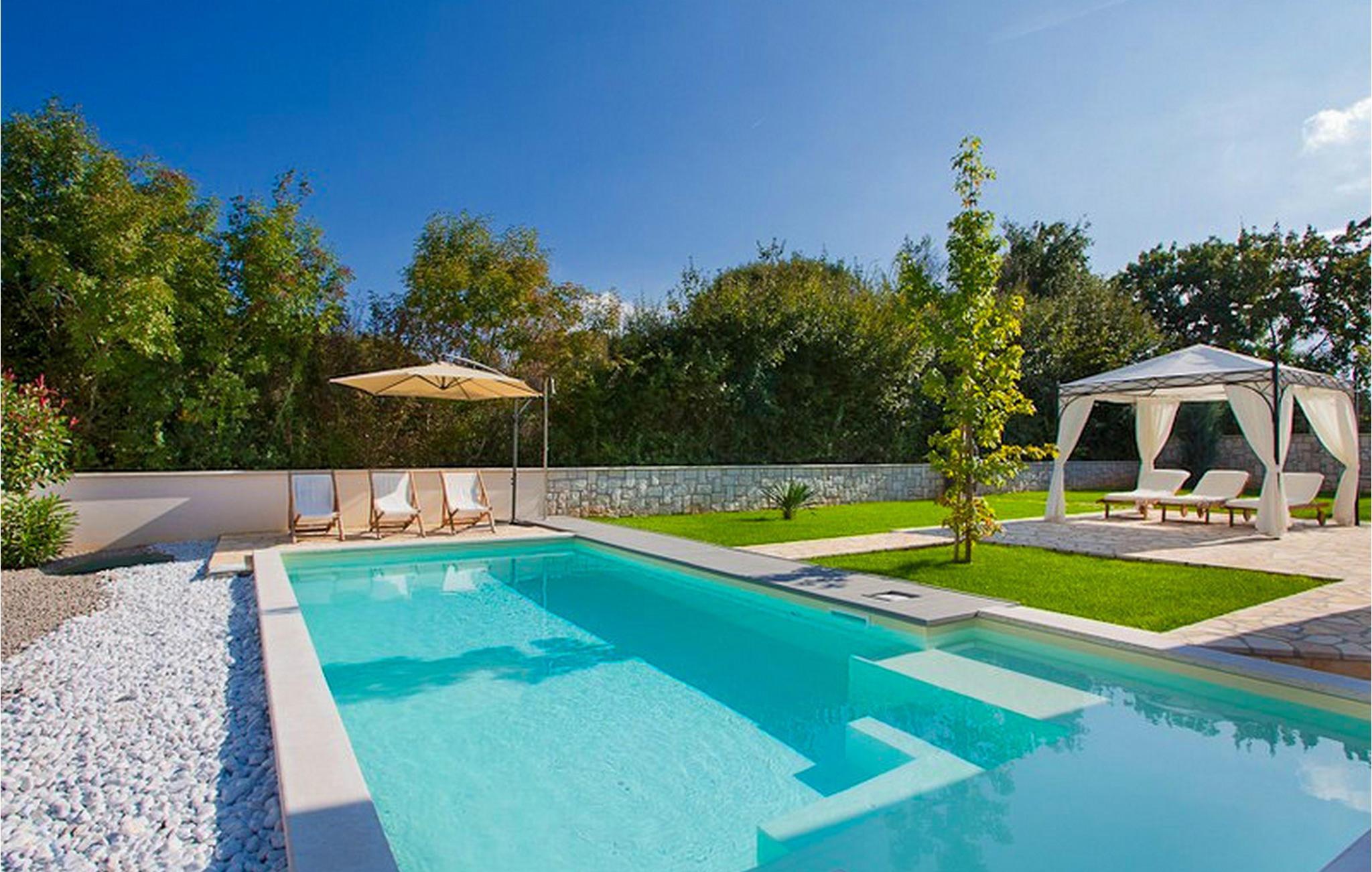 Die wunderschöne Villa Nikola liegt in Istrien, nur drei Kilometer von der Stadt Labin entfernt. Die Lage der Villa Nikola ist ideal für alle, die der Hektik des Alltags entfliehen und sich eine Woche voller Entspannung gönnen möchten. Villa Nikola ist von üppigem Grün umgeben und eignet sich perfekt für Naturliebhaber, die sich entspannen und die unberührte mediterrane Umgebung erkunden möchten. Villa Nikola ist für 10 Personen (8 Erwachsene + 2 Kinder) geeignet. Es gibt drei Schlafzimmer, die mit drei Doppelbetten ausgestattet sind. Jedes Schlafzimmer verfügt über ein Zustellbett. Die Schlafzimmer strahlen Geräumigkeit und hochwertige Innenausstattung aus und jedes Zimmer verfügt über ein eigenes, voll ausgestattetes Badezimmer. Die weitere zehnte Person kann im Wohnzimmer schlafen. Das Wohnzimmer ist sehr geräumig und öffnet sich zur voll ausgestatteten Küche und zum gemütlichen Esszimmer. Außerhalb des Wohnzimmers finden Sie eine schöne Terrasse, die in den Bereich zum Sonnenbaden übergeht, wo Sie Liegestühle und einen schönen Pool von 30 m² finden. Außerdem gibt es einen neu errichteten Steingrill, wo Sie mit Ihrer Familie und Freunden viele frische Mahlzeiten zubereiten können. Das Gelände der Villa ist sehr geräumig und ermöglicht den Gästen zahlreiche Aktivitäten wie Tischtennis, Billard, Trampolin, Darts, PlayStation 3. Das Angebot umfasst neu errichtete Sportanlagen für Tennis und Fußball sowie einen neu gebauten Stein Haus, ideal für Kinder, und ein Weinberg, der die schöne Umgebung ergänzt und in dem die Gäste frei spazieren gehen können. Die Villa bietet auch vier Fahrräder, damit die Gäste die Schönheit der Region Labin entdecken und sich auf ein Abenteuer einlassen können – einer der berühmtesten istrischen Fahrradrouten verläuft in der Nähe der Villa! Für alle, die eine Woche absolute Entspannung genießen und gleichzeitig einen aktiven Urlaub verbringen möchten, ist Villa Nikola die perfekte Wahl! *Villa Nikola teilt sich Sportanlagen für Tennis und Fußball mit Villa Sunny. Haustiere sind in dieser Unterkunft nach Ermessen des Eigentümers oder gegen eine Gebühr gestattet. Bitte beachten Sie, dass diese Unterkunft keine Jugendgruppen oder Junggesellenabschiede akzeptiert. Eine Jugendgruppe in dieser Unterkunft besteht aus Personen unter 30 Jahren. Buchen Sie diese Unterkunft nicht, wenn Sie eine Jugendgruppe oder ein Junggesellenabschied sind, da Ihre Buchung nach der Buchung abgelehnt wird, was auch bei der Ankunft in der Unterkunft oder während Ihres Aufenthalts der Fall sein kann, und Sie keine Rückerstattung erhalten.