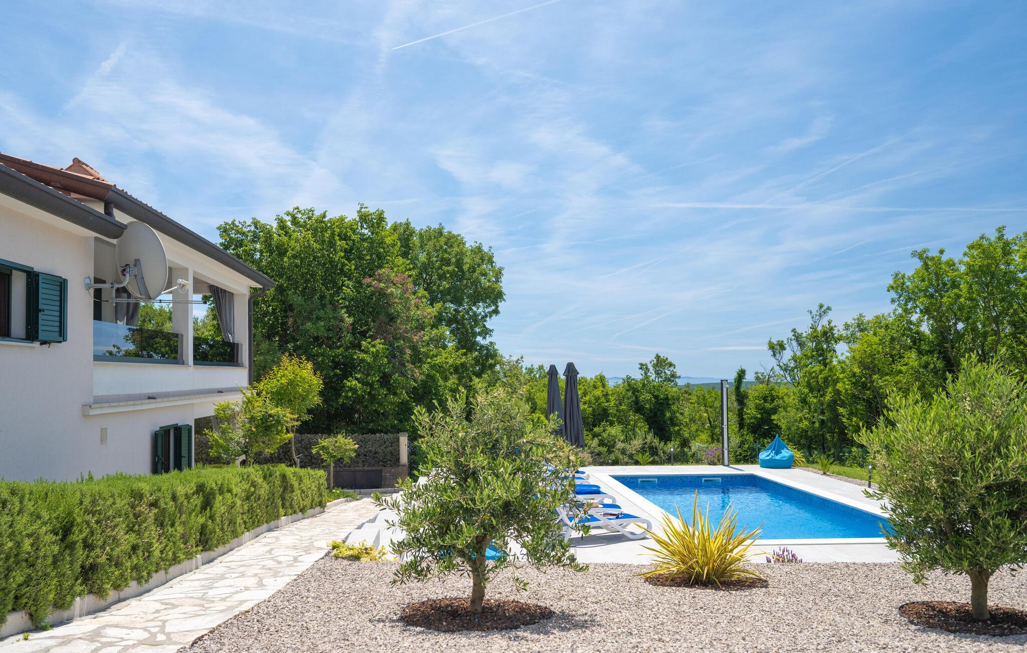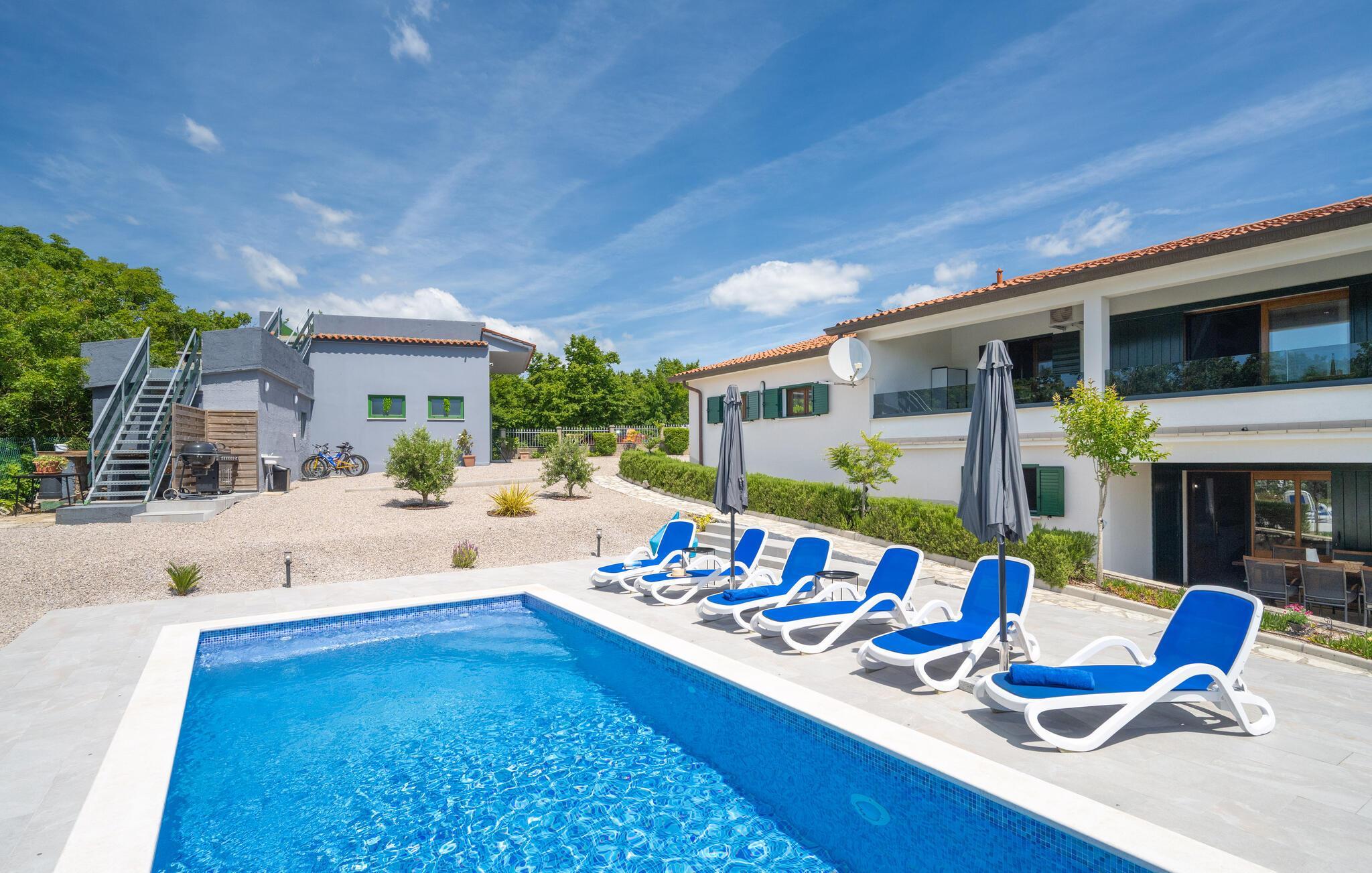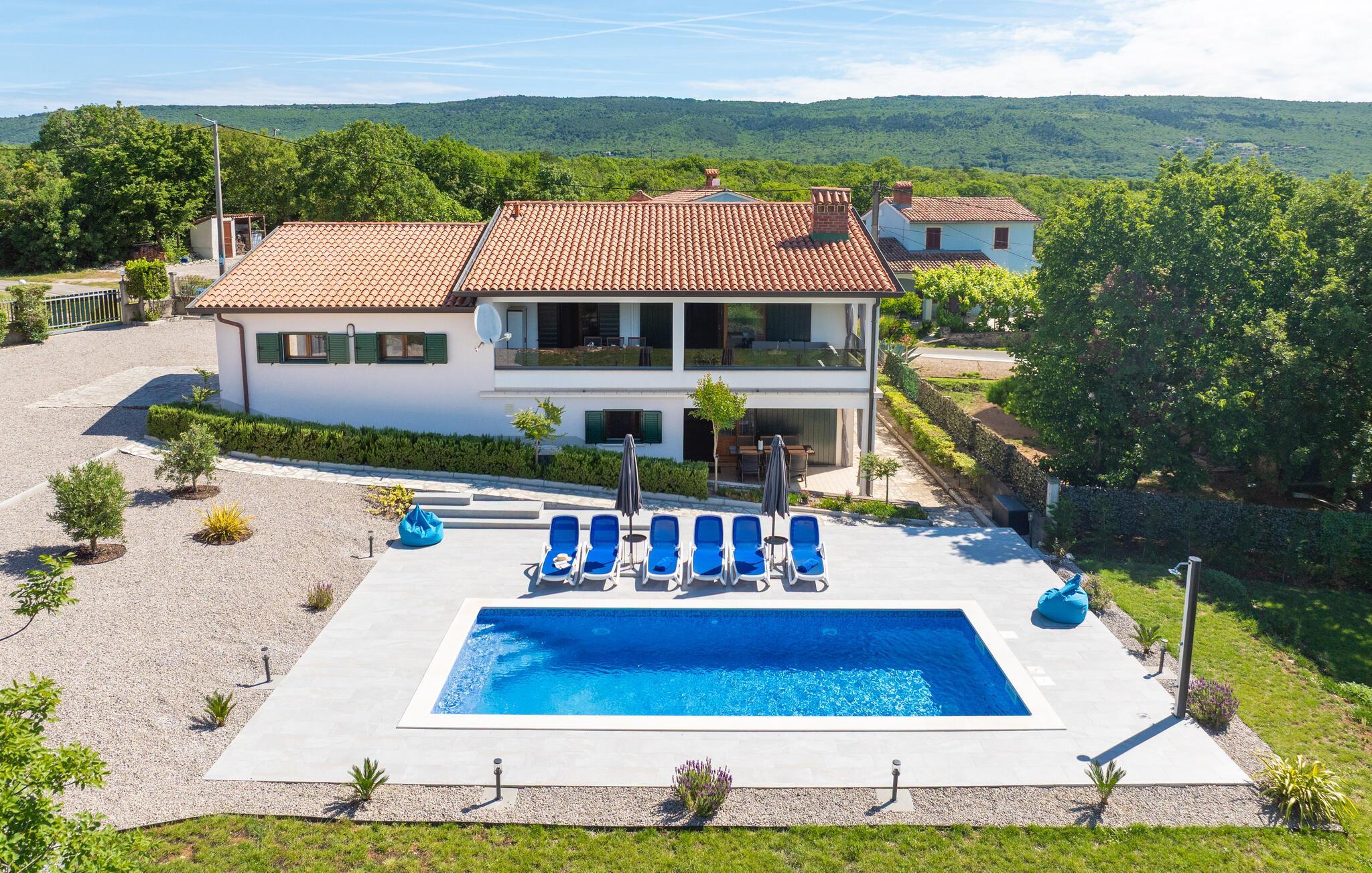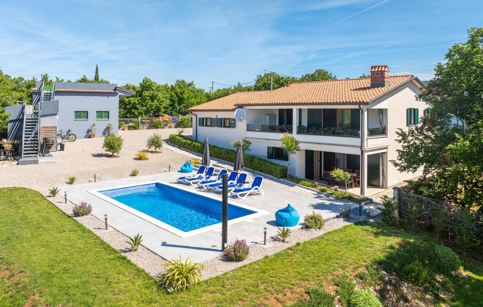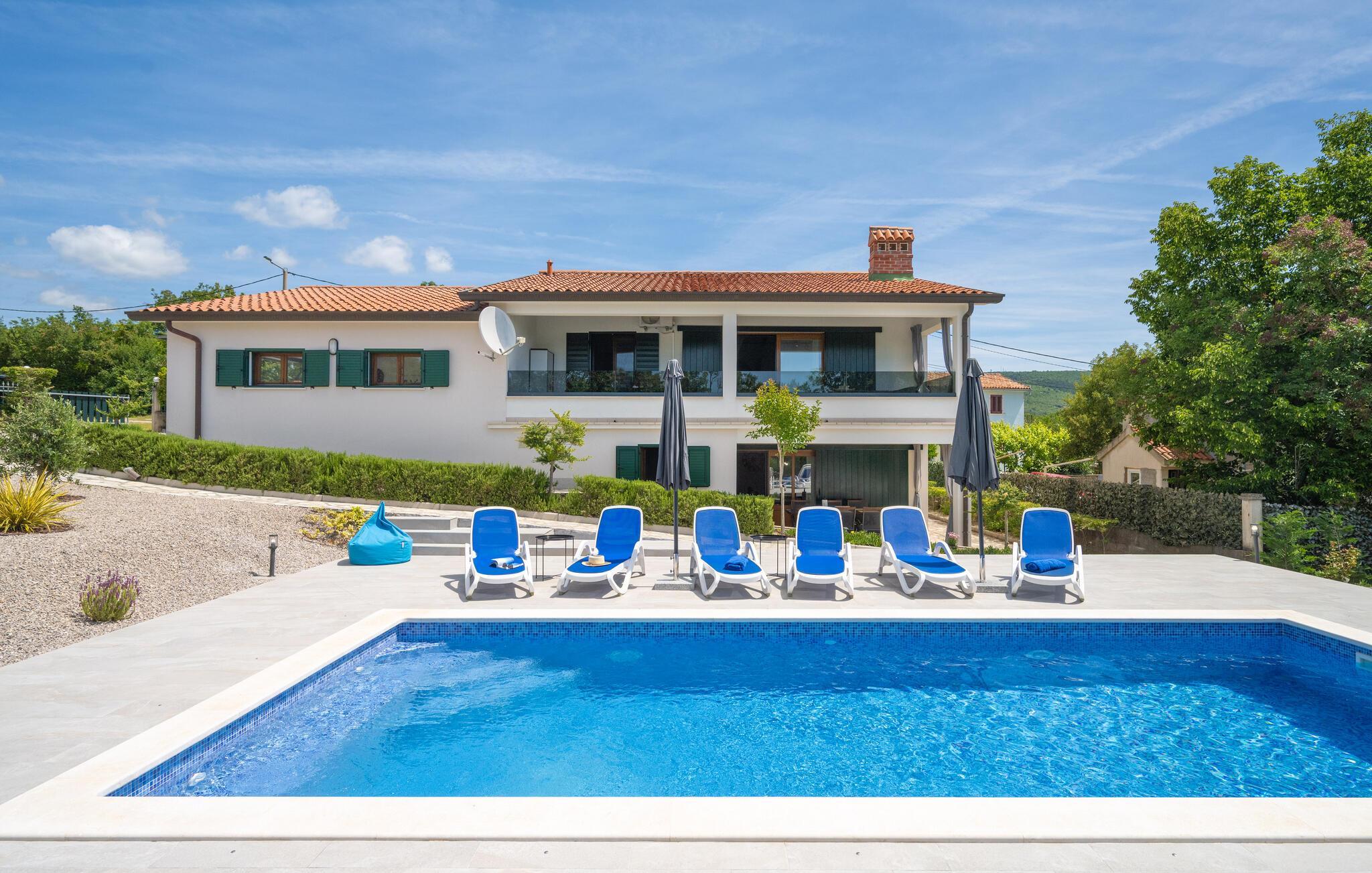 An der wunderschönen Bucht Raški Zaljev heißt Sie dieses große und helle Ferienhaus mit Aktivitätsraum willkommen.