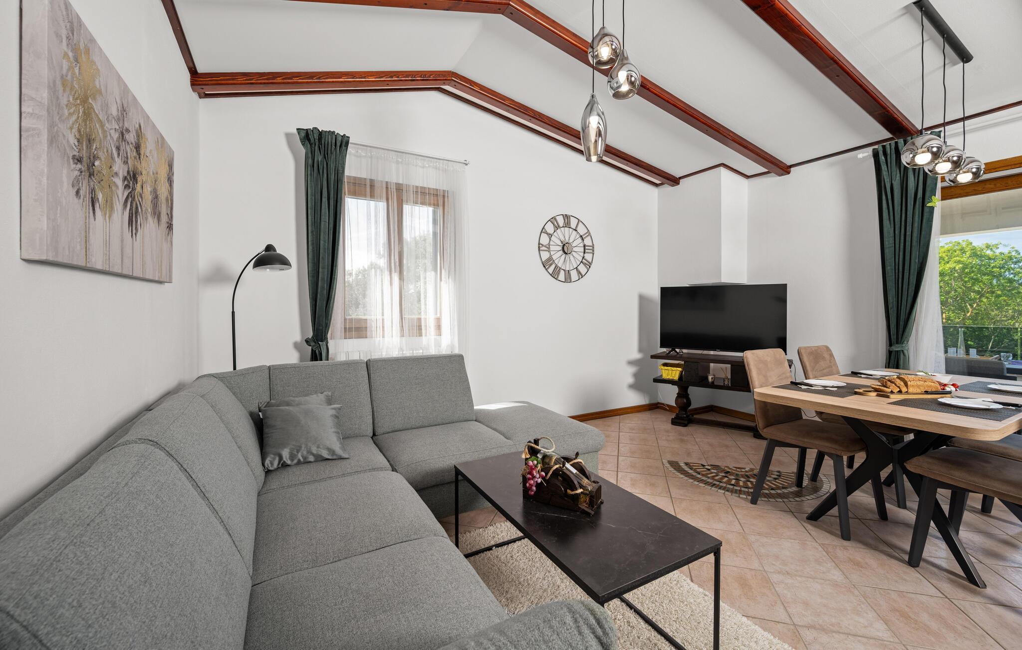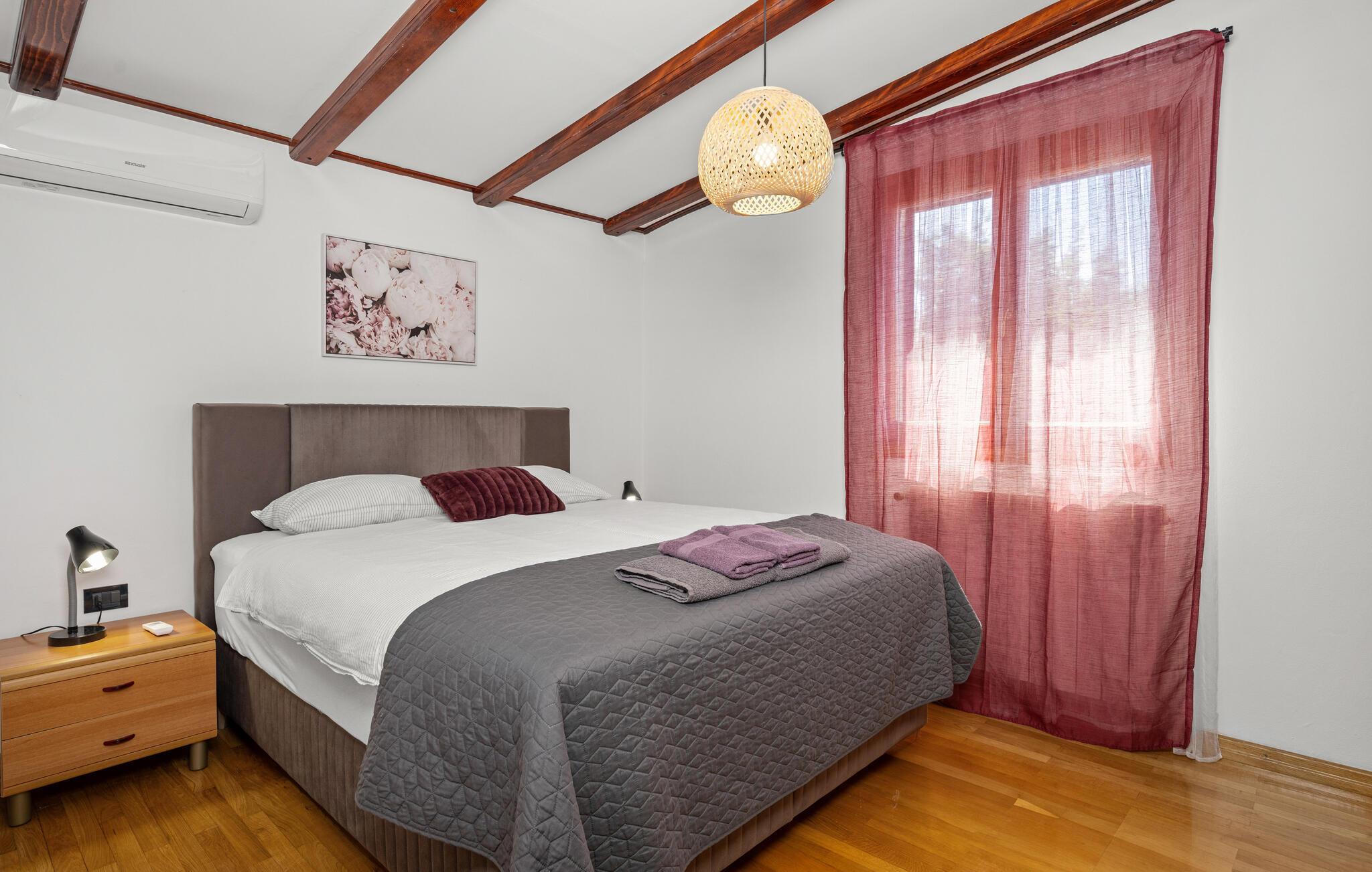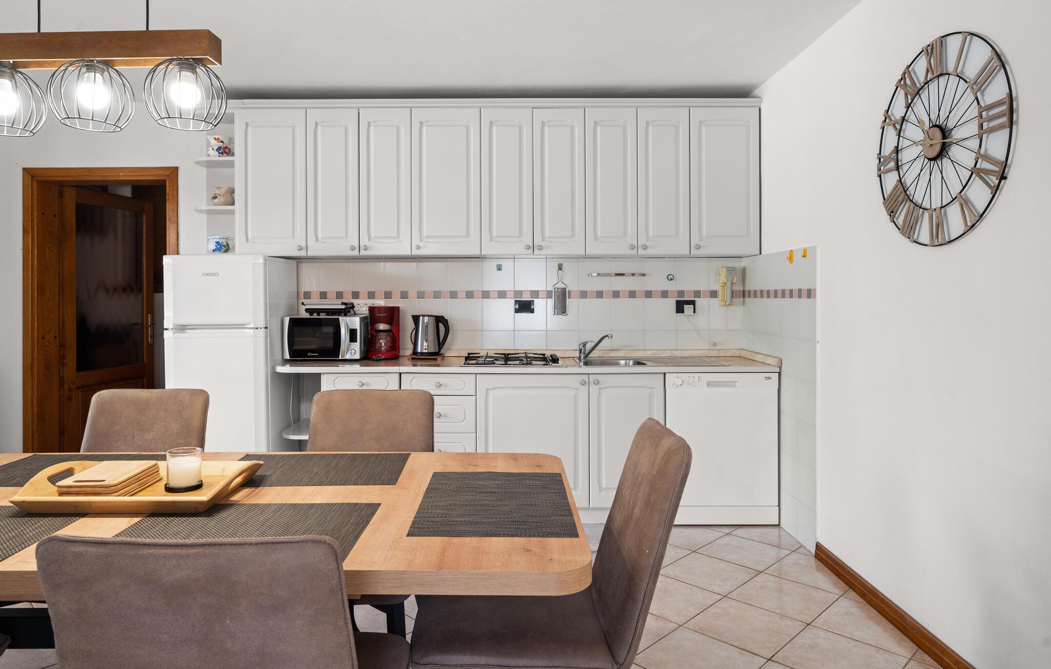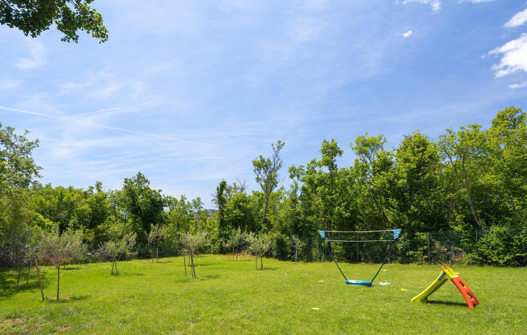 Verbringen Sie mit Ihrer Familie einen entspannten Urlaub in diesem schönen Ferienhaus in Trgetari. Das einladende Haus ist schön dekoriert und verfügt über komfortable und helle Wohnbereiche, die Sie zum Verweilen, Kochen und Spielen auffordern. Im Haus kommt auch der Spaß nicht zu kurz. Ein Aktivitätsraum mit Billard, Tischkicker und Darts bietet Ihnen Unterhaltung. Auch der Balkon und der Garten sind tolle Orte, um zu grillen und die Zeit im Freien zu verbringen. Legen Sie sich in die Sonne, spielen Sie Volleyball oder lassen Sie Ihre Kleinen schaukeln.