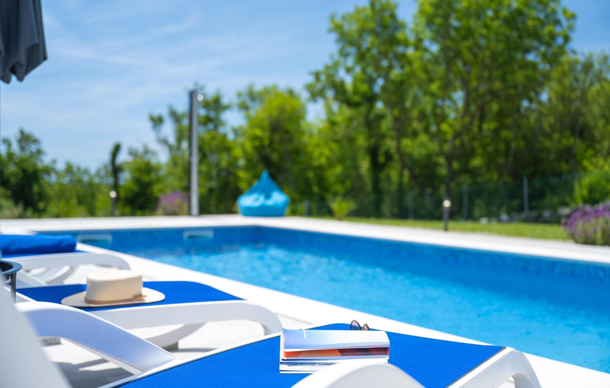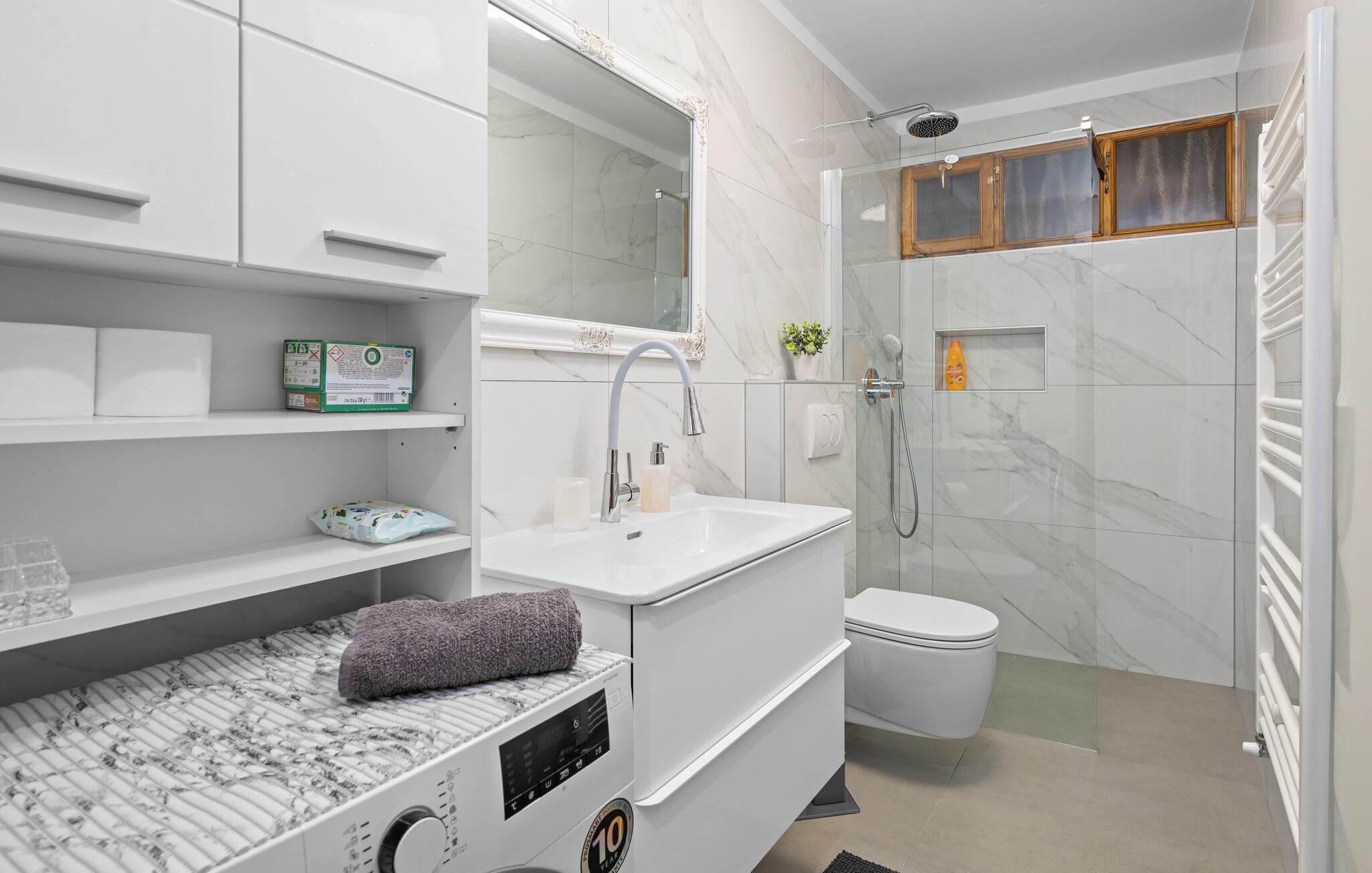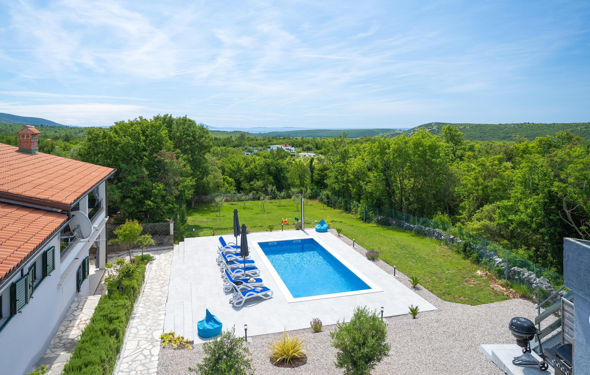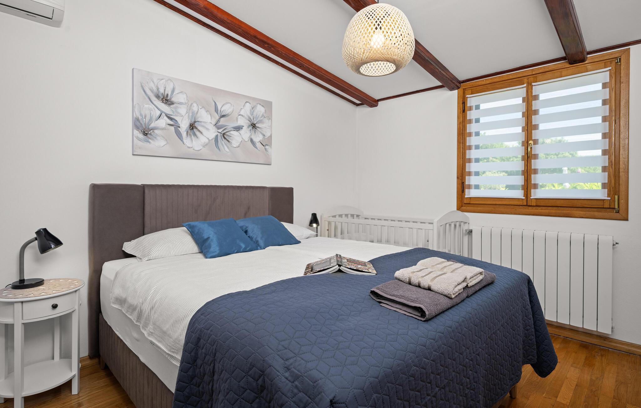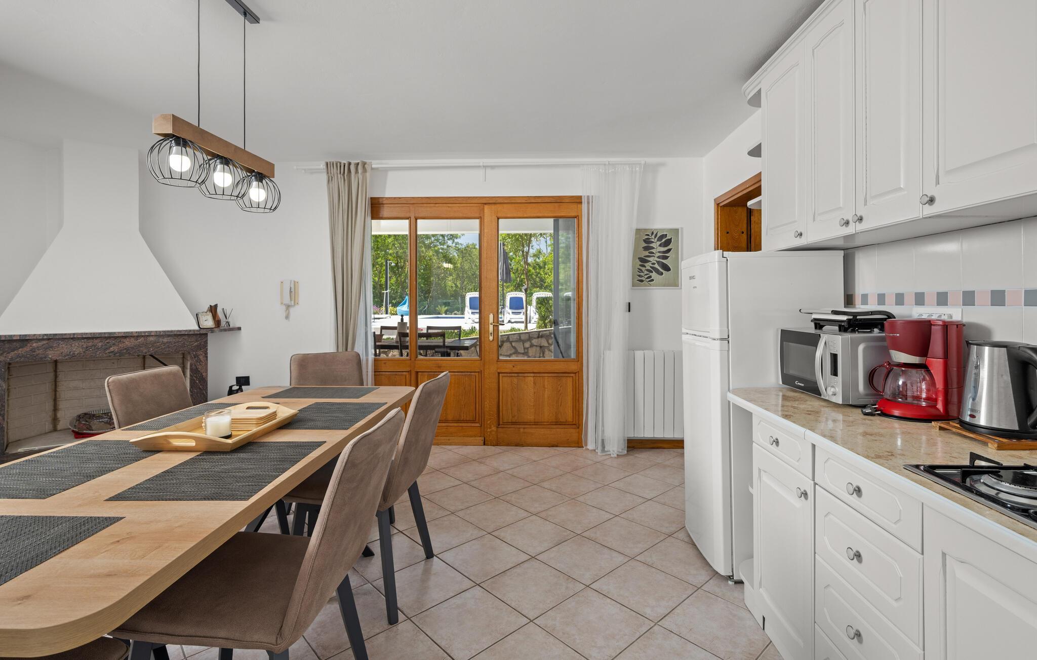 Verbringen Sie mit Ihrer Familie einen entspannten Urlaub in diesem schönen Ferienhaus in Trgetari. Das einladende Haus ist schön dekoriert und verfügt über komfortable und helle Wohnbereiche, die Sie zum Verweilen, Kochen und Spielen auffordern. Im Haus kommt auch der Spaß nicht zu kurz. Ein Aktivitätsraum mit Billard, Tischkicker und Darts bietet Ihnen Unterhaltung. Auch der Balkon und der Garten sind tolle Orte, um zu grillen und die Zeit im Freien zu verbringen. Legen Sie sich in die Sonne, spielen Sie Volleyball oder lassen Sie Ihre Kleinen schaukeln.