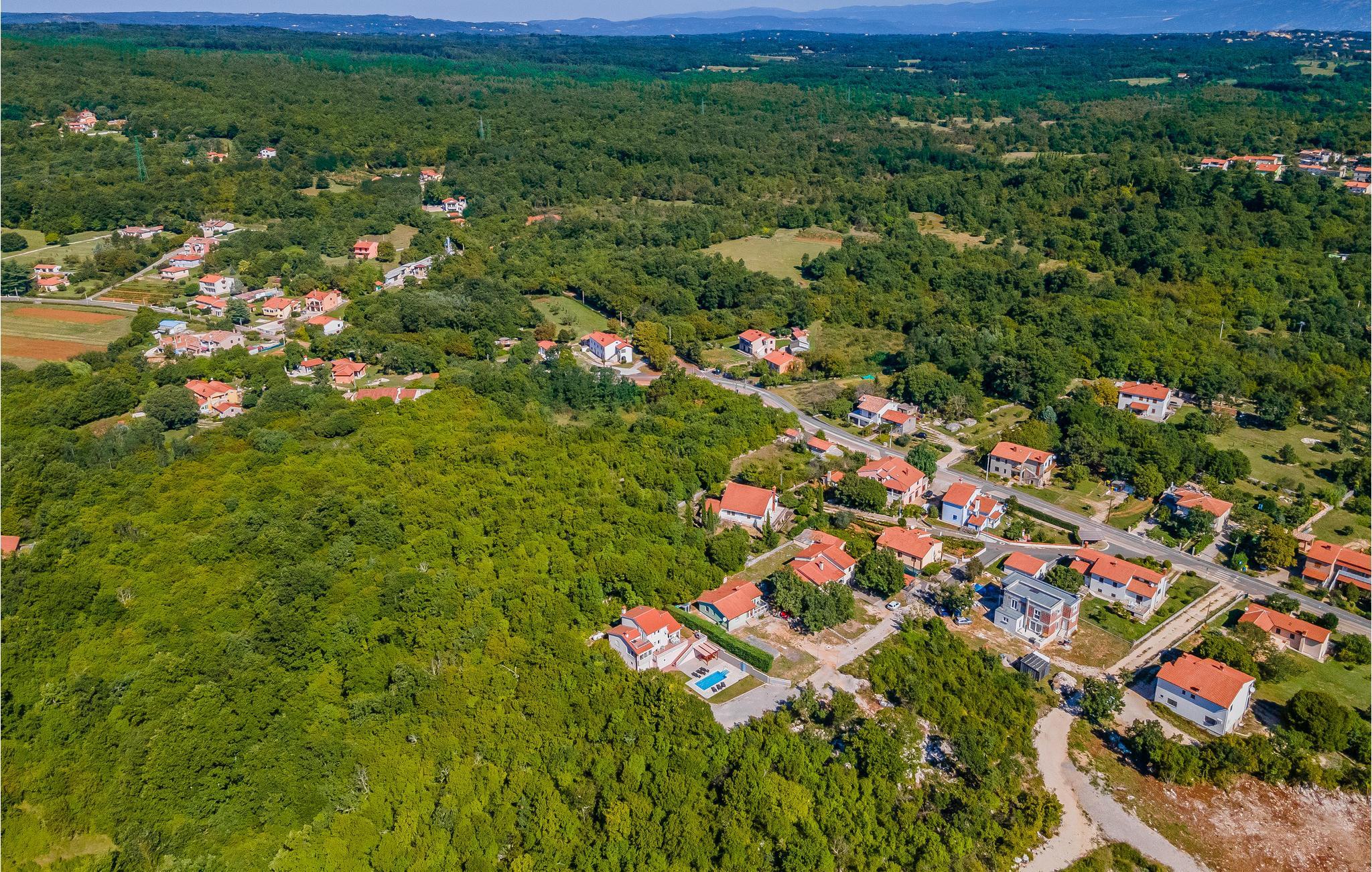 Dieses Ferienhaus mit Pool liegt in Labin, im Ortsteil Vinez. Es befindet sich in schöner Lage und bietet seinen Gästen viel Privatsphäre. Im Untergeschoss befindet sich eine sehr komfortable, praktische und geräumige Küche, die mit einer Loggia mit Glaswand und dem Esszimmer verbunden ist. Im Obergeschoss befinden sich die Schlafzimmer, die mit praktischen Möbeln ausgestattet sind. Die Etagen sind durch eine Innentreppe aus Holz miteinander verbunden. Von der großen Terrasse aus können Sie die Aussicht auf das Swimmingpool und die zauberhafte Landschaft genießen. Ein großer, teilweise umzäunter, Garten umgibt das Haus. Es liegt ganz hinten in der Straße, so dass die Kinder hier sorglos spielen und toben können. Genießen Sie den Ausblick auf die Altstadt von Labin am Hügel, die Sie zu Fuß in nur einer halben Stunde erreichen. Die schönen Kiesstrände von Rabac sind in wenigen Autominuten erreichbar.