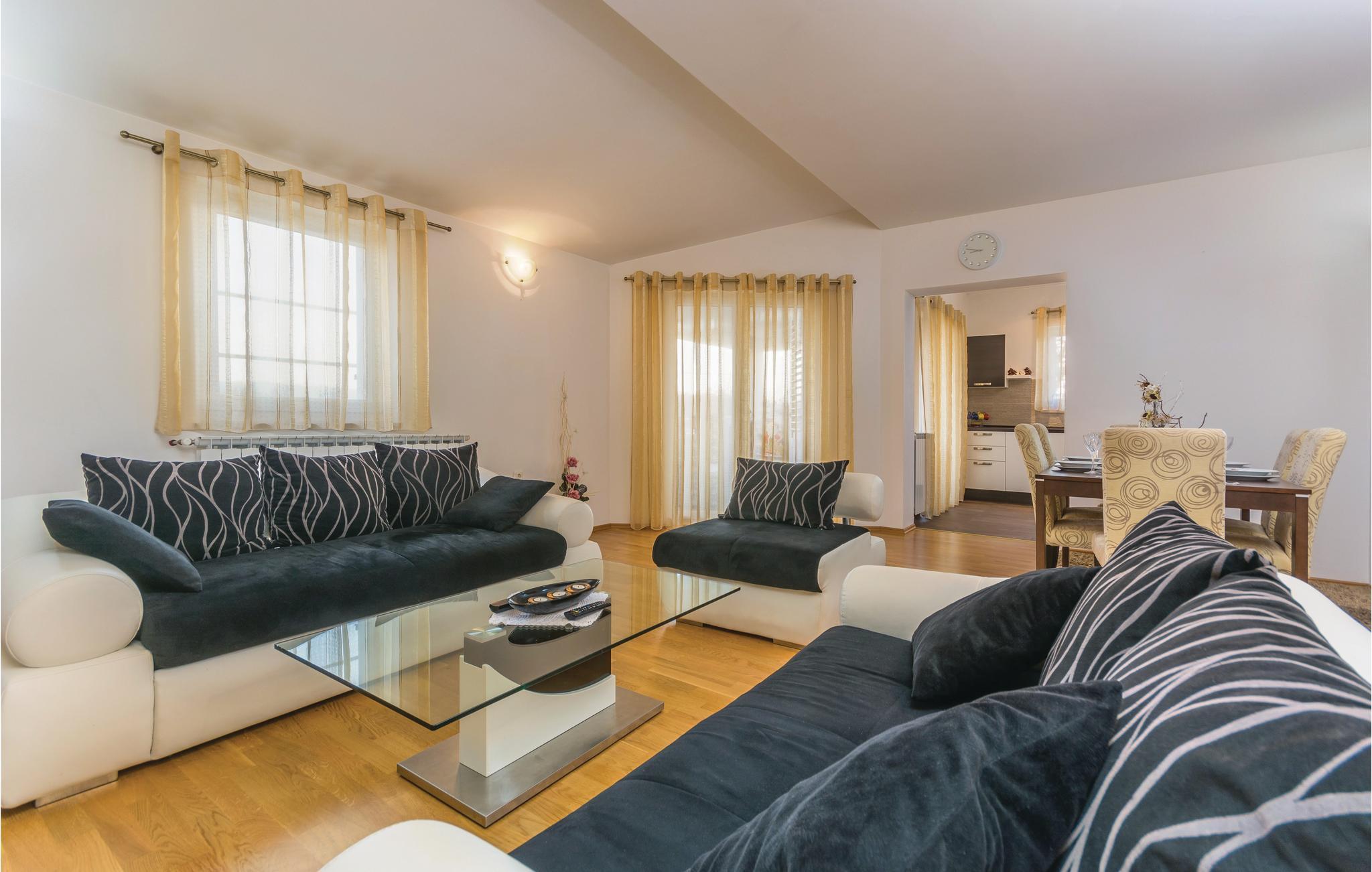 Dieses schön eingerichtete Ferienhaus im kleinen Ort Vinez ist nicht weit entfernt von der Stadt Labin und nur etwa 15 Autominuten weit weg vom Touristenort Rabac, mit seinen schönen Stränden und dem kristallklaren Meer. Es besteht aus zwei getrennten Wohneinheiten, eine im Erdgeschoss und die andere im ersten Stock, die durch Innentreppen miteinander verbunden sind. Jede Wohneinheit besteht aus zwei Schlafzimmern, Badezimmer, Küche mit Wohnzimmer und einer überdachten Terrasse, wo Sie an Sommerabenden mit Ihrem Lieblingsgetränk entspannen können. Besuchen Sie die Stadt Labin mit vielen Veranstaltungen während der Sommermonate.