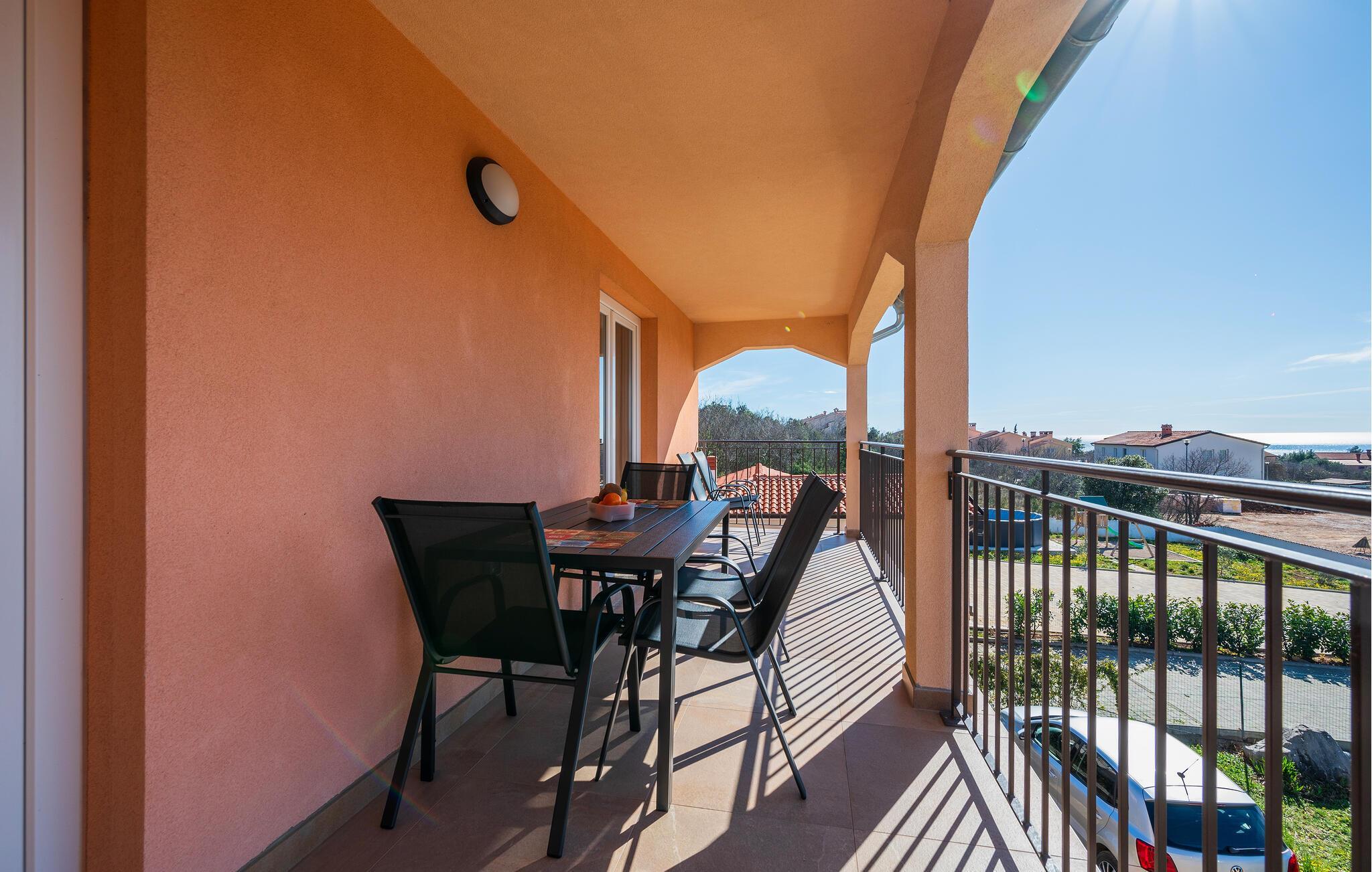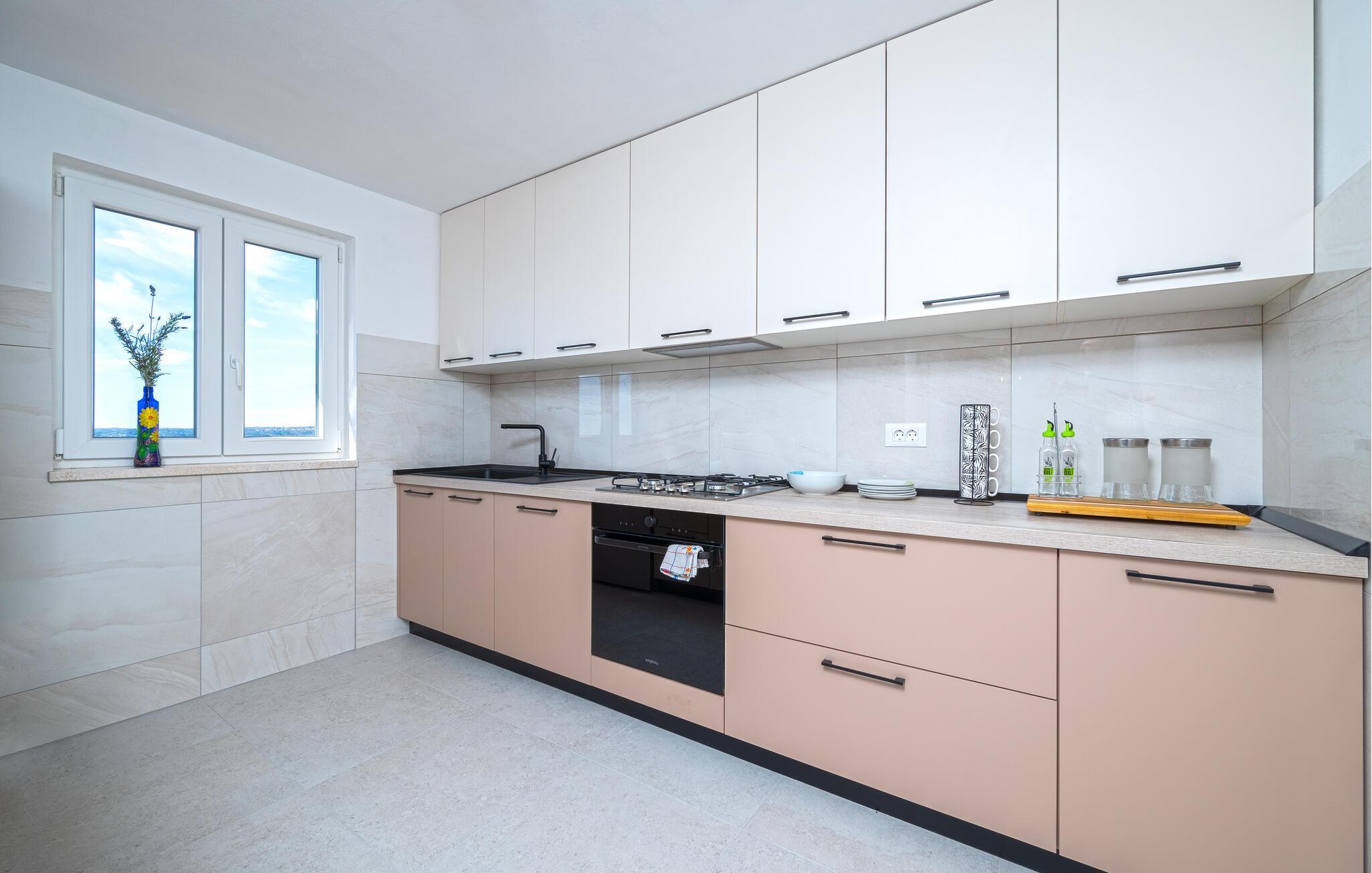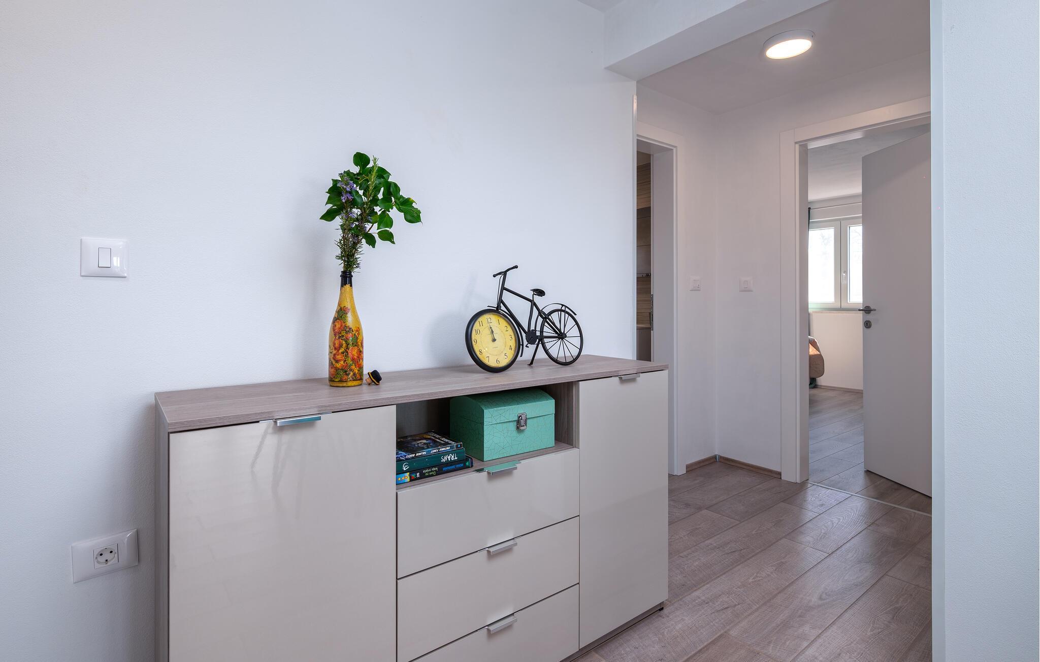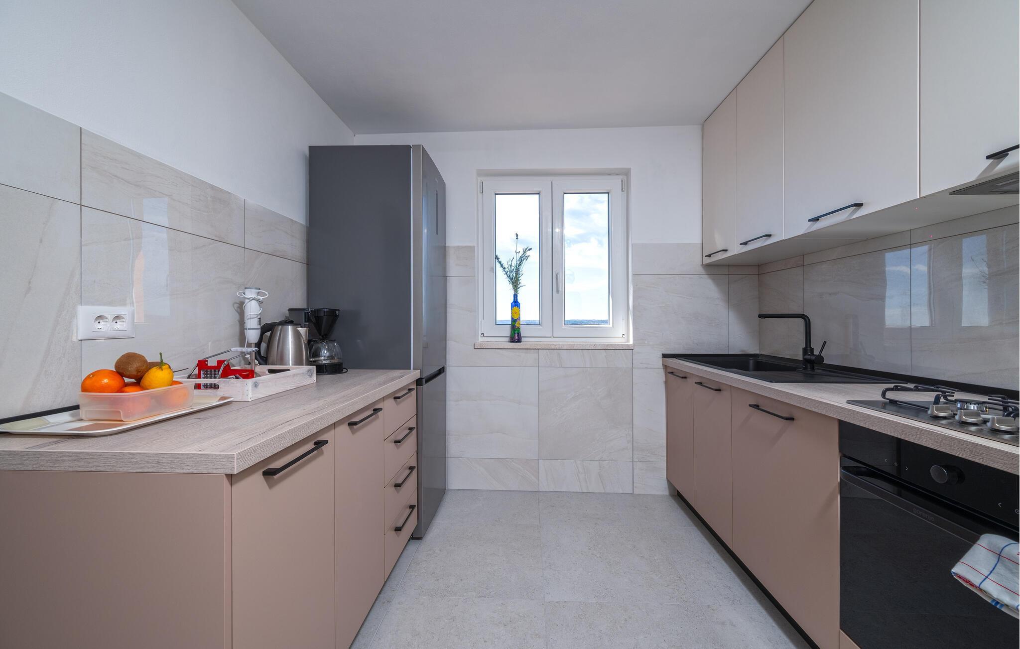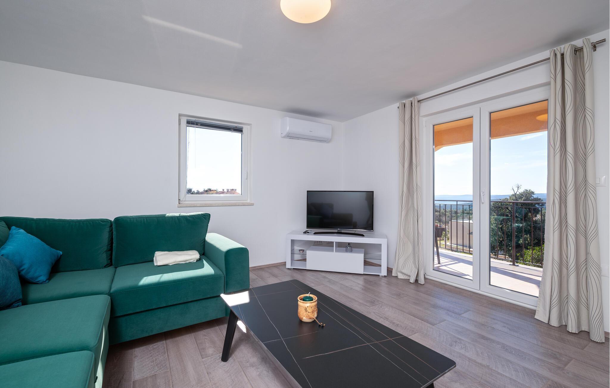 Entspannen Sie in dieser hellen und modern dekorierten Ferienwohnung, die Ihnen mit farblichen Möbelakzenten ein schönes Wohnambiente bietet. Genießen Sie vom Sofa den Ausblick auf die Landschaft und sogar auf das Meer und zaubern in der Küche leckere Mahlzeiten, die Sie auf der großzügig überdachten Terrasse mit Blick auf das Meer genießen und dort auch entspannen können. Nach einer ruhigen Nacht bietet Ihnen eines der Schlafzimmer einen Balkon mit Blick ins Grüne, wachen Sie hier entspannt auf und trinken Ihren ersten Kaffe.