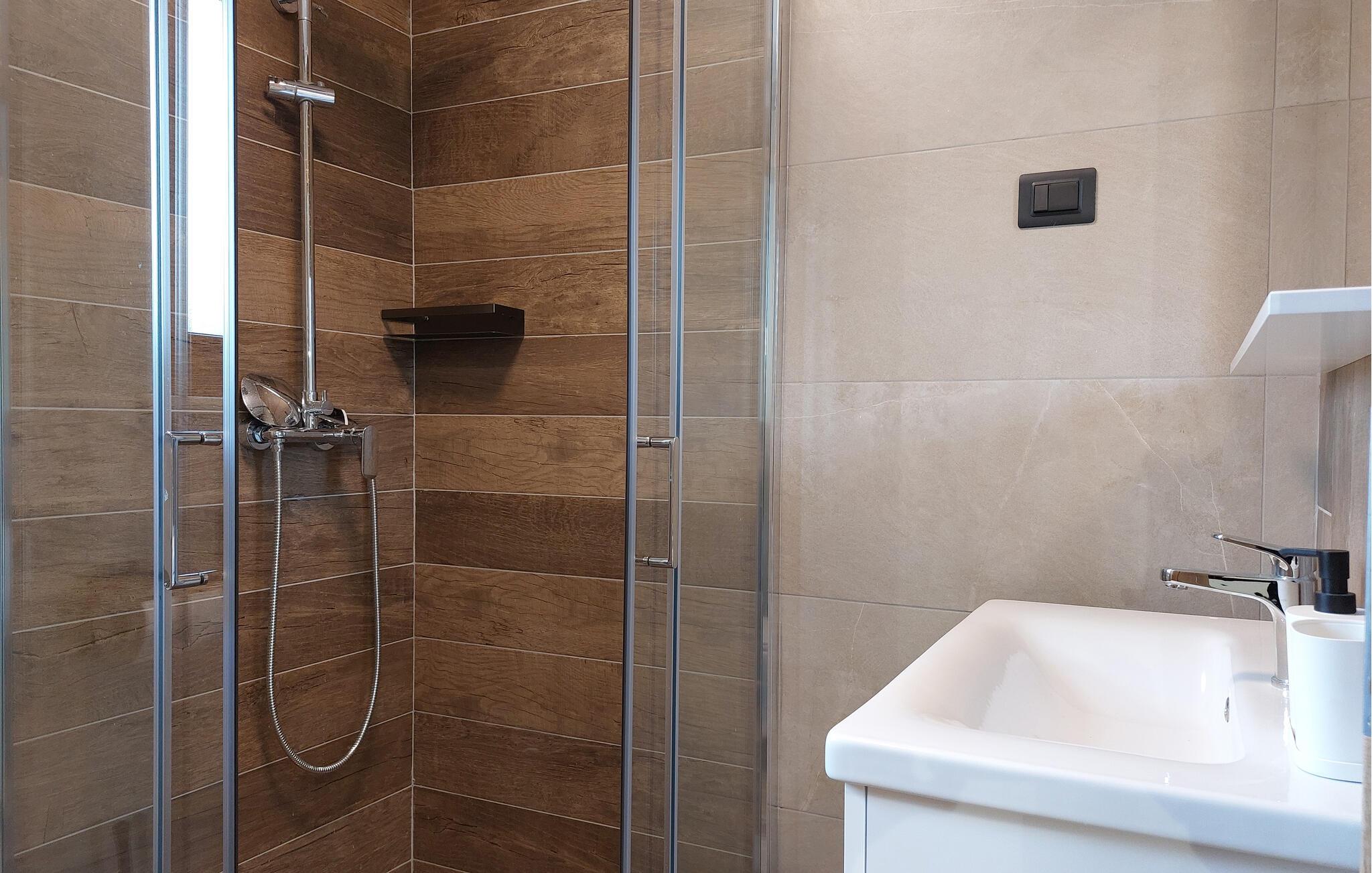 - WC mit warmem und kaltem Wasser, Dusche