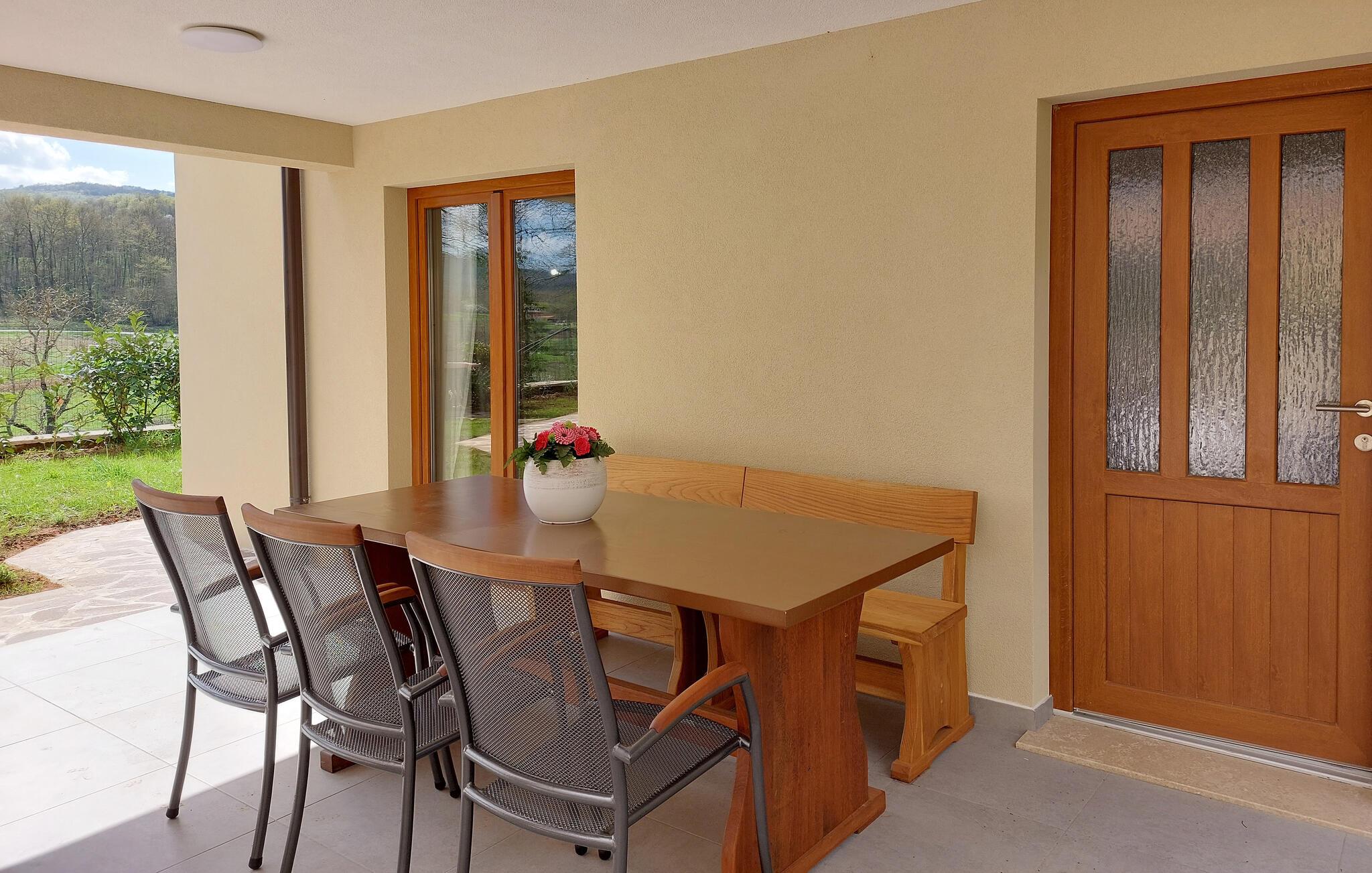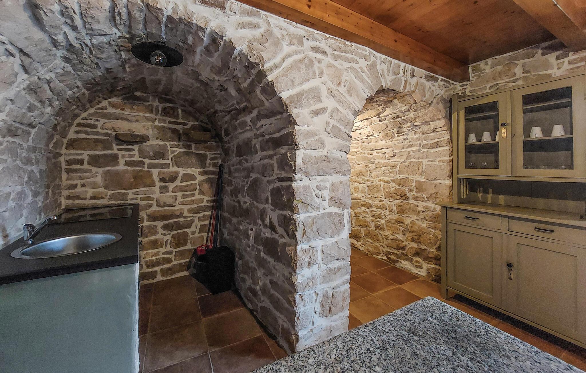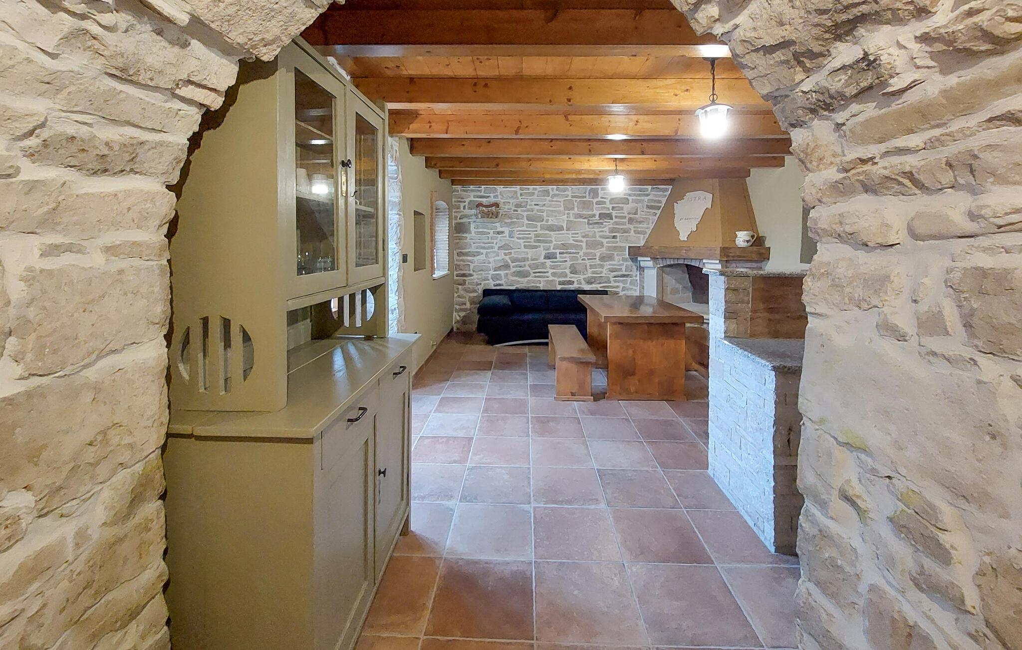 Das Haus liegt in dem kleinen Dorf Zajci im Landesinneren Istriens in einer ruhigen Umgebung und verspricht Ihnen einen angenehmen und erholsamen Urlaub. Treten Sie in das einladende Haus ein, das über schöne, helle und moderne Innenräume verfügt. Während Sie im Erdgeschoss einen schönen Raum im traditionellen Stil mit Kamin, ideal für Ihre Zusammenkünfte, erleben können, finden Sie im oberen Stockwerk die klassischen Wohnbereiche mit Küche, Ess- und Wohnzimmer.