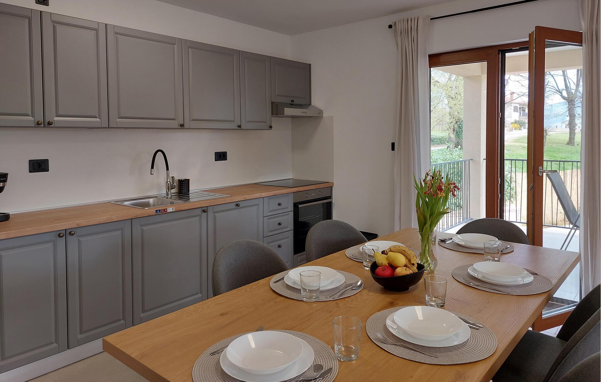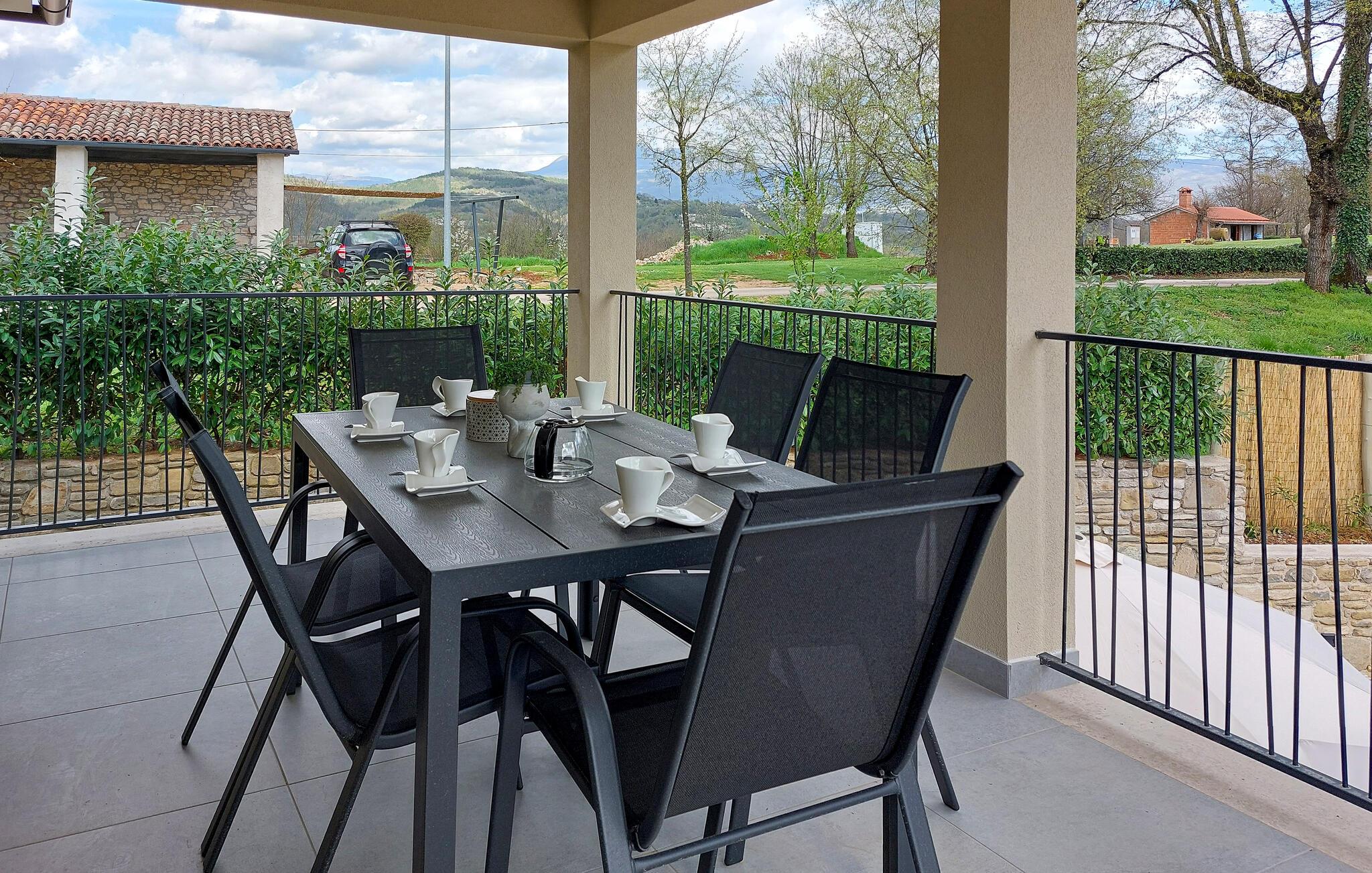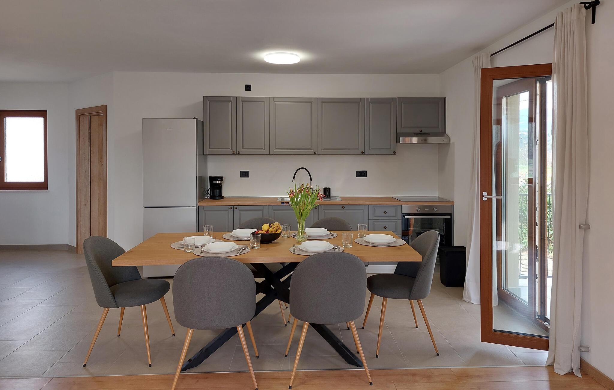 Das Haus liegt in dem kleinen Dorf Zajci im Landesinneren Istriens in einer ruhigen Umgebung und verspricht Ihnen einen angenehmen und erholsamen Urlaub. Treten Sie in das einladende Haus ein, das über schöne, helle und moderne Innenräume verfügt. Während Sie im Erdgeschoss einen schönen Raum im traditionellen Stil mit Kamin, ideal für Ihre Zusammenkünfte, erleben können, finden Sie im oberen Stockwerk die klassischen Wohnbereiche mit Küche, Ess- und Wohnzimmer.