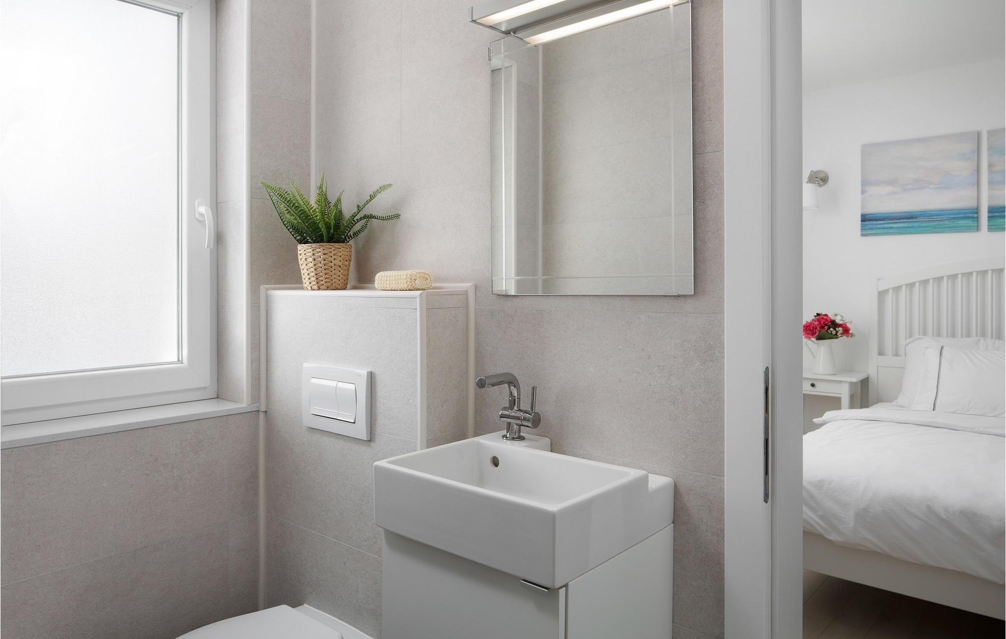 Badezimmer (nr. 2) - WC. Warmes und kaltes Wasser. Dusche