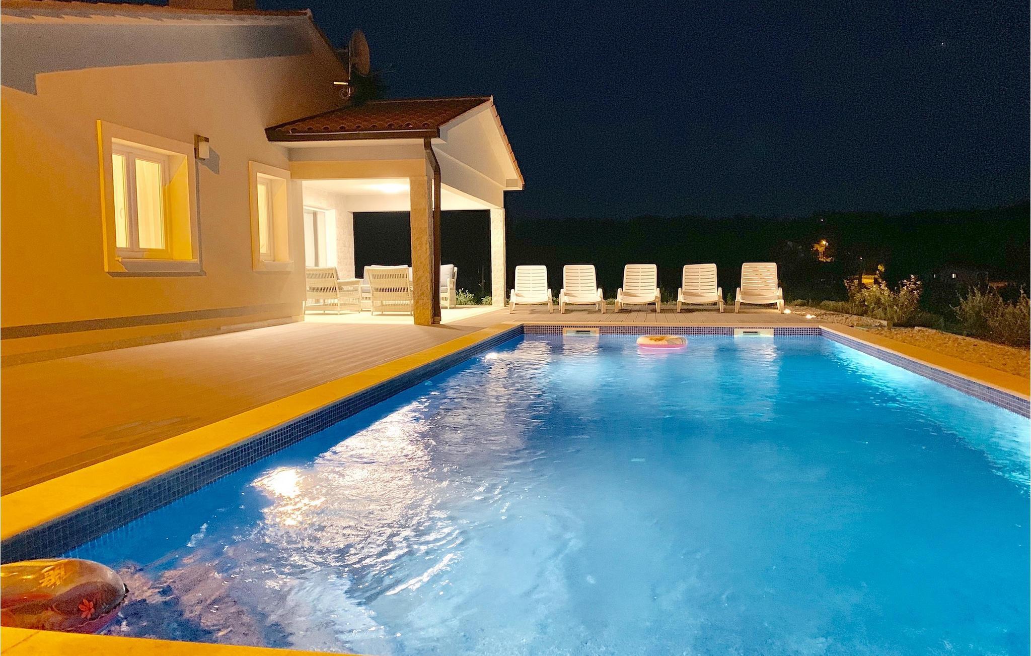 Suchen Sie nach einer modernen Villa mit einem großen, gepflegten Garten und einem einladenden privaten Pool für Ihren perfekten Familienurlaub, ist die Villa Meadow genau das Richtige für Sie! Diese einstöckige Villa erstreckt sich über einem Grundstück auf mehr als 2000 m2 und bietet genügend Platz im Außenbereich, um sich auf den Sonnenliegen zu entspannen, für Kinder, um auf dem Spielplatz zu spielen und für die gesamte Gruppe, um den Essbereich im Freien am Holzkohlegrill zu genießen. Diese wunderschöne Villa bietet Platz für bis zu 8 Personen in 3 sorgfältig eingerichteten Schlafzimmern. Alle Räume befinden sich im Erdgeschoss. Zwei Schlafzimmer verfügen über Doppelbetten, während eines über 2 Einzelbetten verfügt, dazu wird auch das Sofabett für die zusätzlichen Gäste angeboten. Beim Betreten der Villa kommen Sie zum räumlichen Bereich mit der komplett ausgestatteten Küche, Wohnzimmer (mit Kamin) und Essbereich mit Blick auf die schöne Terrasse neben dem Pool. Die Terrasse ist der ideale Ort, um gemeinsam zu frühstücken oder einfach mit einem Buch und Glas istrischen Malvazija zu entspannen. Genießen Sie Zentralistrien und erkunden Sie die wunderschöne, natürliche Umgebung, die Weiler und verbringen Sie einen entspannten Urlaub in der Villa Meadow!Die wunderschöne Villa Meadow befindet sich im kleinen Ort Zupanici in der Nähe von Labin. Hier können Sie die Ruhe in der Natur genießen. Falls Sie gerne aktiv im Urlaub bleiben können Sie hier auch Radfahren und joggen. Die Altstadt Labin befindet sich auf der östlichen Seite der istrischen Halbinsel. Es ist ein Ort, in dem sie zahlreiche Ateliers vorfinden werden und der ideale Ort, um Kunst bei jedem Schritt durch die Stadt zu genießen. Rabac, ein ehemaliges Fischerdorf, bietet gute Strände und Restaurants. In der Umgebung von Labin-Rabac können Sie Tennis, Minigolf, Beach-Volleyball, Tauchen und verschiedene Wassersportarten genießen und der erste Strand ist nur 10 km (in Rabac) von der Villa entfernt.