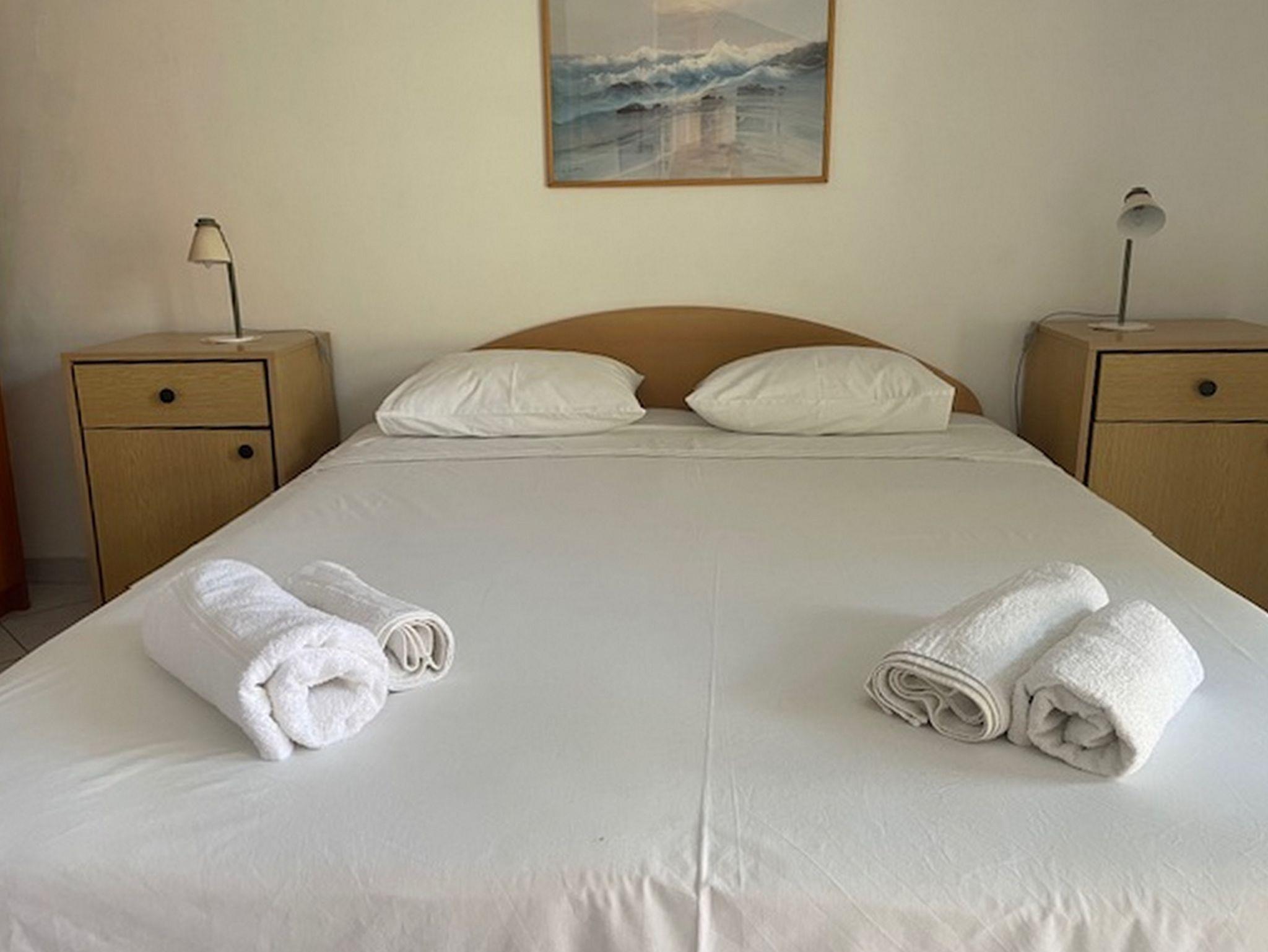 Ferienwohnung bietet Platz für 2 Gäste. Die Betten sind in Schlafzimmern, die es 1 gibt, innerhalb einer Gesamtfläche von 31m2, angeordnet. Die Gäste haben eine eigene Terrasse zur Verfügung, auf der sie in warmen Sommernächten genießen können. Das Apartment bietet Meerblick. Es ist erlaubt, Speisen auf dem Gemeinschafts-Grill vorzubereiten. IM PREIS INBEGRIFFEN: Kurtaxe, Endreinigung, Klimatisierung, Parkplatz, Internet, Kinderbett, Bügeleisen, Bügelbrett, Föhn, 1 Bett für Kinder (im Preis enthalten). Die Verfügbarkeit zusätzlicher Dienstleistungen in Ihrem reservierten Termin und die Preise derselben (falls nicht aufgeführt) müssen im Voraus überprüft werden. Zusätzliche Dienstleistungen die in der Zahlungsaufforderung nicht aufgeführt sind werden direkt beim Vermieter bezahlt, angenommen der Gast nutzt auch diese. Ermäßigung auf den Grundpreis: Gratistag 14=13 (bei einem Aufenthalt von 14 Tagen oder mehr erhalten Sie einen Gratistag für den Aufenthalt bis 31.12.26).
