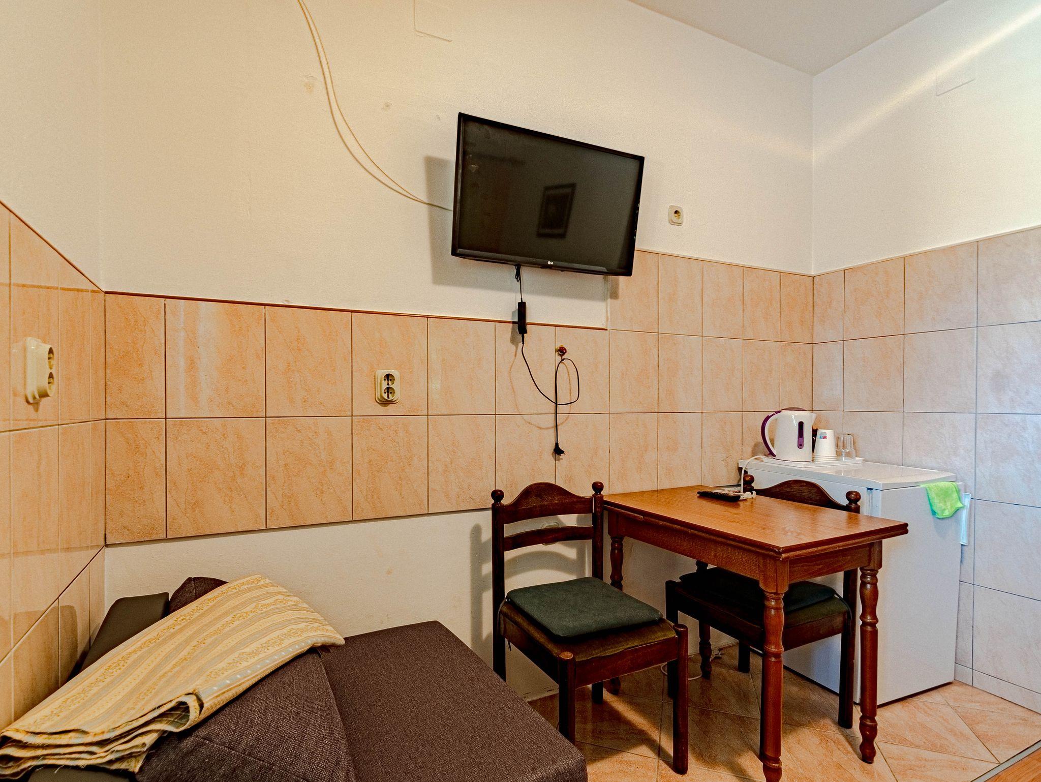 Zimmer bietet Platz für 3 Gäste. Die Betten sind in Schlafzimmern, die es 1 gibt, innerhalb einer Gesamtfläche von 18m2, angeordnet. Die Gäste haben eine eigene Terrasse zur Verfügung, auf der sie in warmen Sommernächten genießen können. Es ist erlaubt, Speisen auf dem Gemeinschafts-Grill vorzubereiten. Die reservierte Unterkunftseinheit ist ein Zimmer mit eigenem Badezimmer ohne die Möglichkeit der Nutzung einer Küche. IM PREIS INBEGRIFFEN: Kurtaxe, Endreinigung, Klimatisierung, Internet, Wäschewaschen. VERBINDLICHE ZUSÄTZLICHE KOSTEN: Aufzahlung für Kurzaufenthalte (prozentualer Zuschlag pro Nächtigungsanzahl: 30% - 1, 20% - 2, 10% - 3). Die Verfügbarkeit zusätzlicher Dienstleistungen in Ihrem reservierten Termin und die Preise derselben (falls nicht aufgeführt) müssen im Voraus überprüft werden. Zusätzliche Dienstleistungen die in der Zahlungsaufforderung nicht aufgeführt sind werden direkt beim Vermieter bezahlt, angenommen der Gast nutzt auch diese. Ermäßigung auf den Grundpreis: Gratistag 14=13 (bei einem Aufenthalt von 14 Tagen oder mehr erhalten Sie einen Gratistag für den Aufenthalt bis 31.12.26).