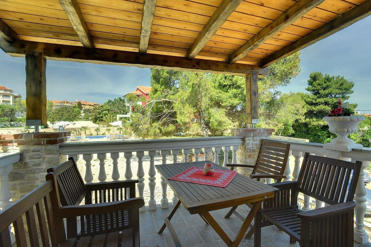 We offer five apartments in Ližnjan, situated in a family house which extends over 1700 square feet of private land. At the guests disposal there is a large swimming pool which dominates the sun terrace with free deck chairs and parasols. In addition to the pool, the guests of these beautifully decorated suites can also use a shared furnished terrace with a fireplace, which is set beside a nice refreshing fountain. In addition, the owner of this fine estate provides his guests with two private and one public parking space.