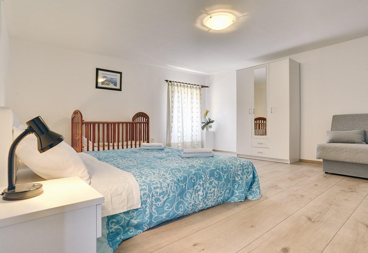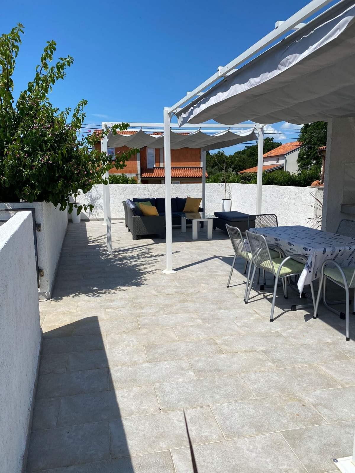 This lovely apartment surrounded by flowers and olive grooves, in no way reveals that the interior is decorated in a modern and minimalistic way with neutral colors and clean lines. Two bedrooms, two bathrooms, an open plan kitchen with dining area and living room area are the essential parts of this apartment. If you're looking for quiet, peaceful surroundings, Valtura is the right place for you, with just 3 km from the sea.