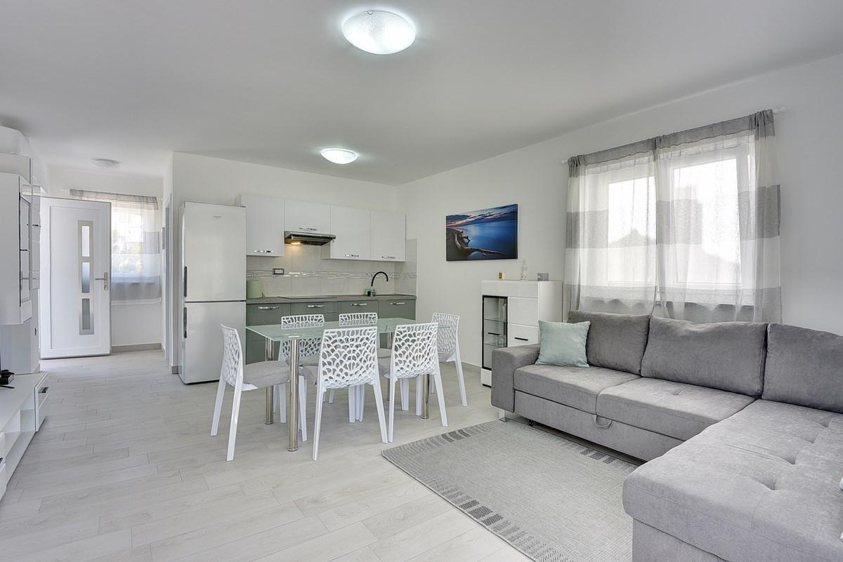 In the very south of Istria, in Ližnjan, not far from the beach is located this beautiful newly built Villa Residence Oli A. The house spreads over two floors and can accommodate up to 6 persons. The ground floor has a beautifully decorated living room with kitchen and dining area and bathroom. Upstairs are two bedrooms and one bathroom and a balcony overlooking the sea. Guests also have at their disposal a covered terrace and a private swimming pool. Villa Residence Oli A in Ližnjan will surely meet all your expectations. In order to spend unforgettable moments on your vacation and discover the beautiful bays of southern Istria, a boat trip is possible in agreement with the owner.