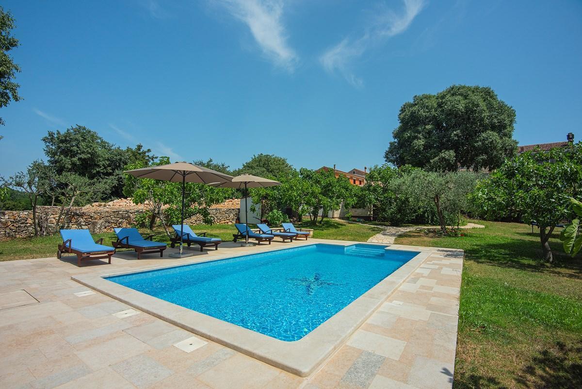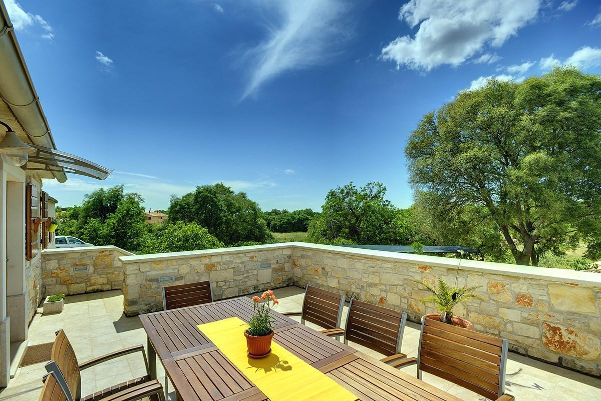 With three airconditioned bedrooms, three bathrooms, private covered balcony and large swimming pool on the semi-paved terrace surrounded by neatly maintained garden, the villa Altura is a real treat!The interior of the villa Altura in Valtura is gorgeous - the combination of stone walls and wooden furniture is amazing. The kitchen area is enormous and beautifully arranged, the bedrooms are cosy, stylish and warm, while the living room and dining area kept the traditional Istrian charm. Starting from the house, a stone path leads to a large barbecue place and the swimming pool with wooden deck chairs. This villa in Valtura is perfect for a large group of friends or families with children. Lovers of nature, peace and privacy will not remain indifferent to perfectly landscaped lawns that extend all over the garden.
