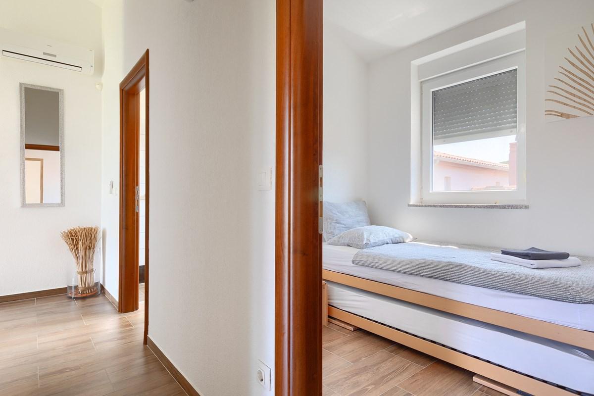 Welcome to Villa Lara I, your perfect accommodation in beautiful Ližnjan. Located in a quiet part of this picturesque place, Villa Lara I provides comfort, luxury and access to all the charms of the Istrian coast. This semi-detached house offers accommodation for up to 6 people and becomes an ideal destination for relaxation and escape from everyday life.The two floors of this beautiful accommodation allow you to feel at home. The open space of the ground floor with a modern kitchen and living room makes it an ideal place for family and friends to gather.One of the biggest assets of this villa is its beautiful private pool. After exploring the magical beaches and restaurants nearby, you will be able to refresh and relax in this oasis. The terrace by the pool offers a perfect corner for sunbathing and enjoying your favorite drinks.Villa Lara I is your opportunity for an unforgettable vacation in Istria. Book now and experience the combination of luxury, comfort and natural beauty of this beautiful region.