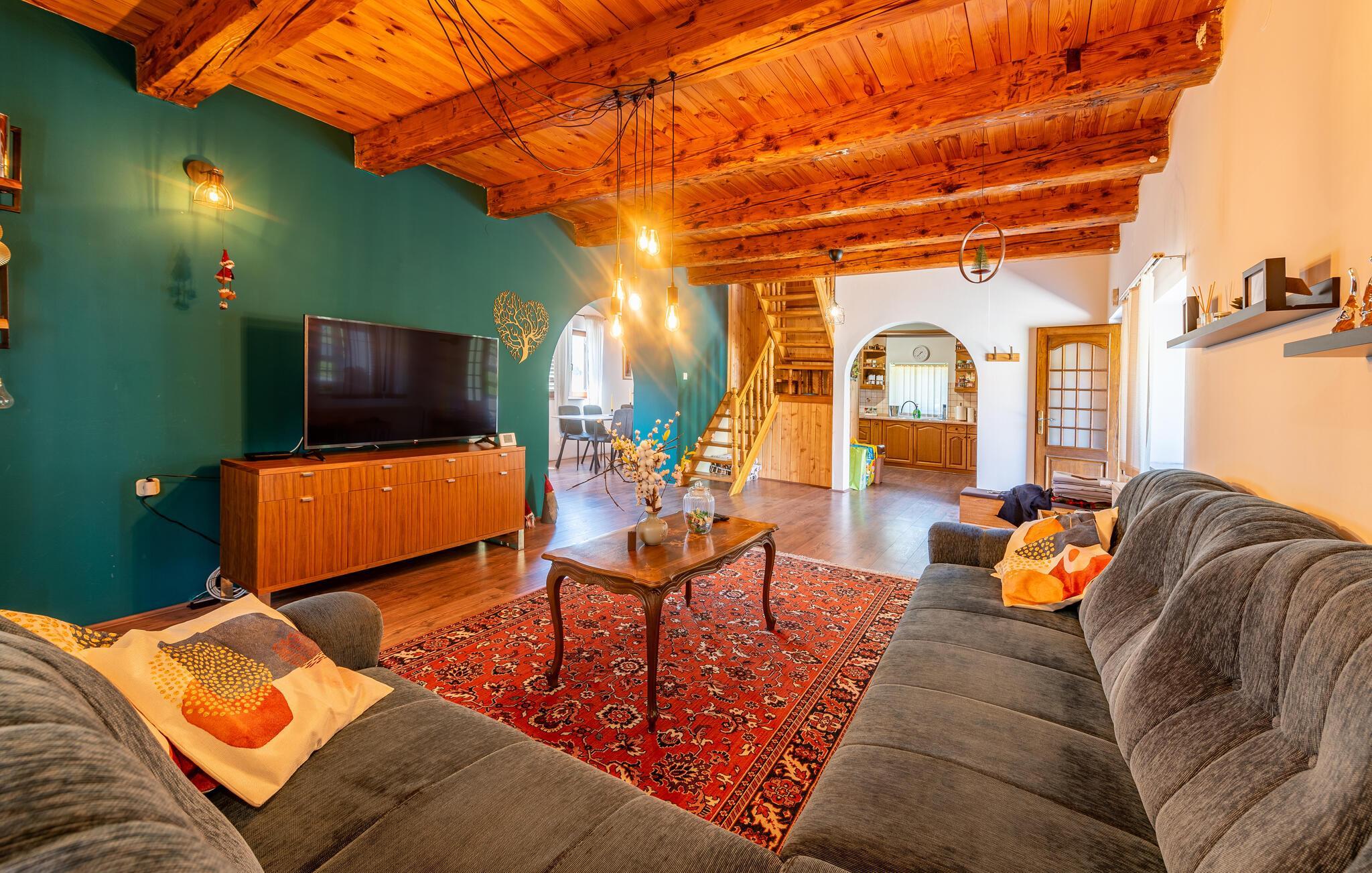 Das rustikal anmutende Haus heißt Sie in landschaftlich schöner Umgebung willkommen und bietet eine herrliche Aussicht. Seinen besonderen Charme erhält es durch teilweise freiliegendes Mauerwerk und dekorative Deckenbalken. Freuen Sie sich auf gemeinsame Mahlzeiten am langen Esstisch und gemütliche Abende am Kamin. Im Erdgeschoss können Sie Billard und Kicker spielen.