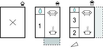 Badezimmer 5m2 (nr. 1) - WC. Warmes und kaltes Wasser. Dusche