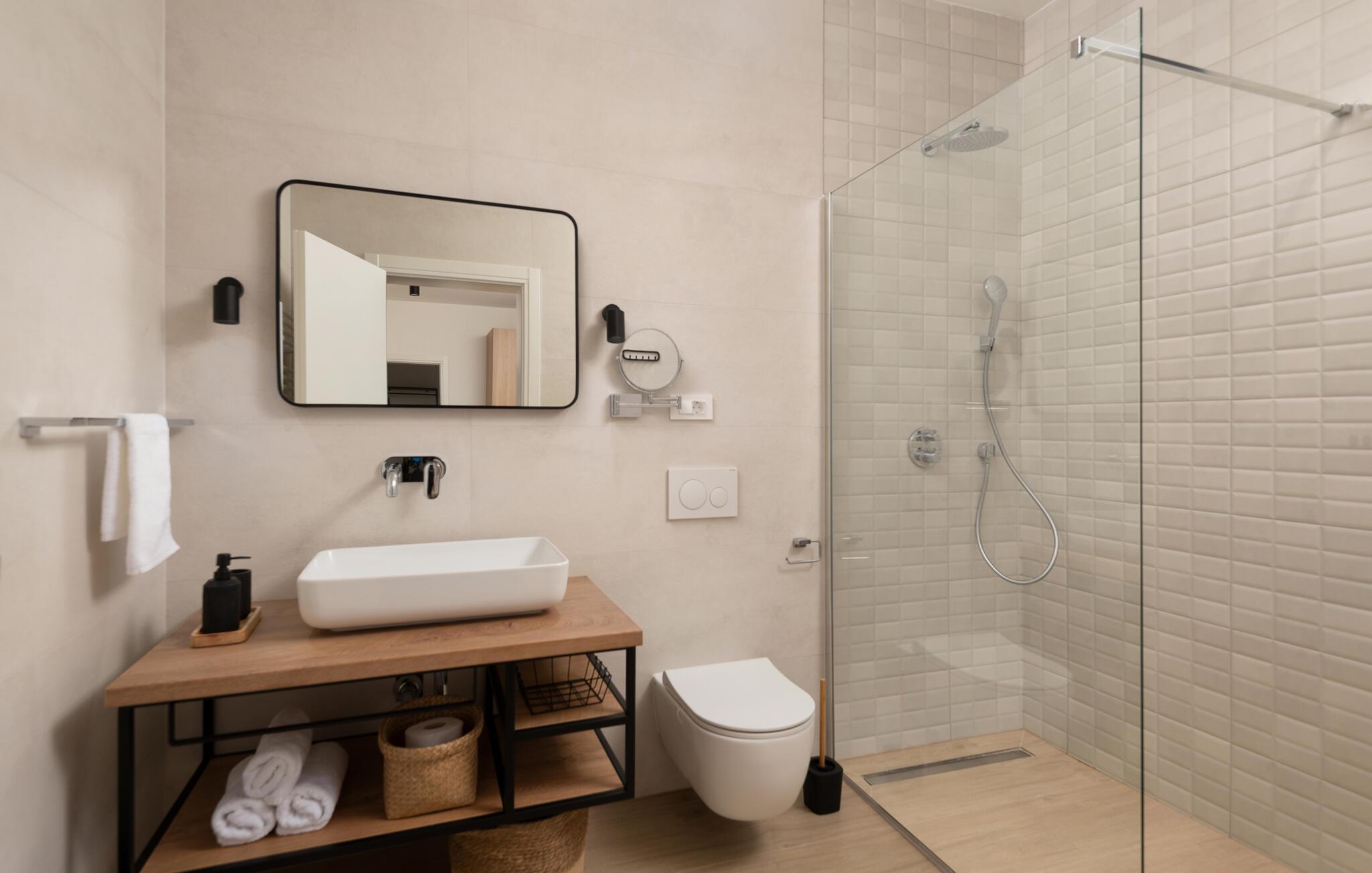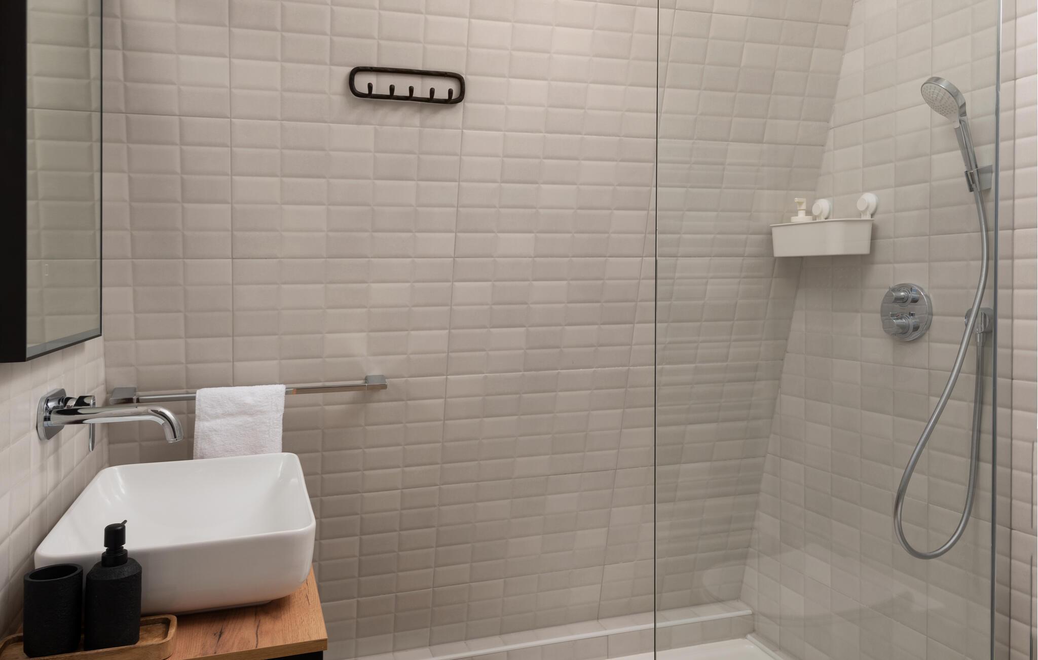 Badezimmer 5m2 (nr. 1) - WC. Warmes und kaltes Wasser. Dusche