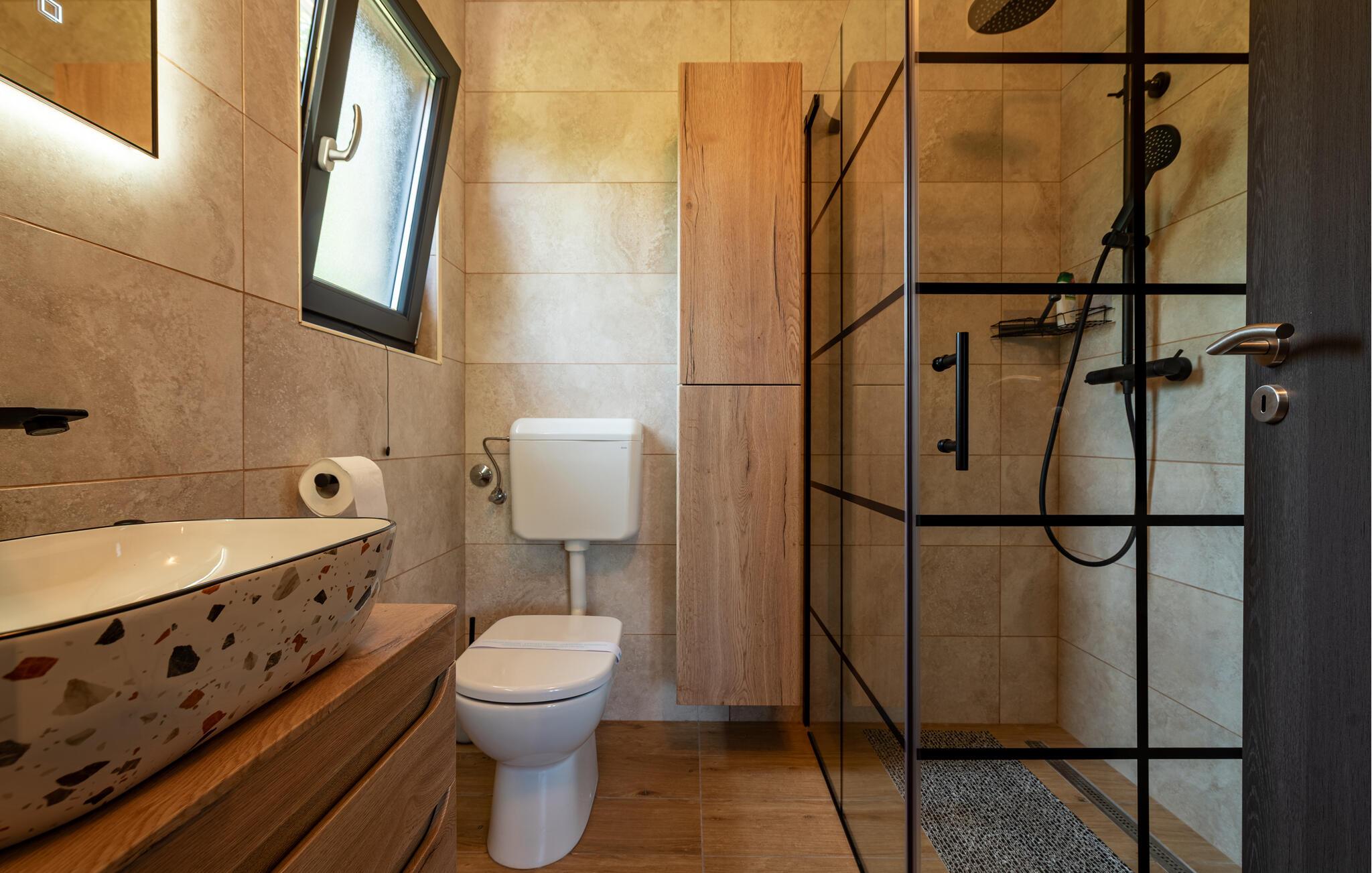 - WC mit warmem und kaltem Wasser, Dusche