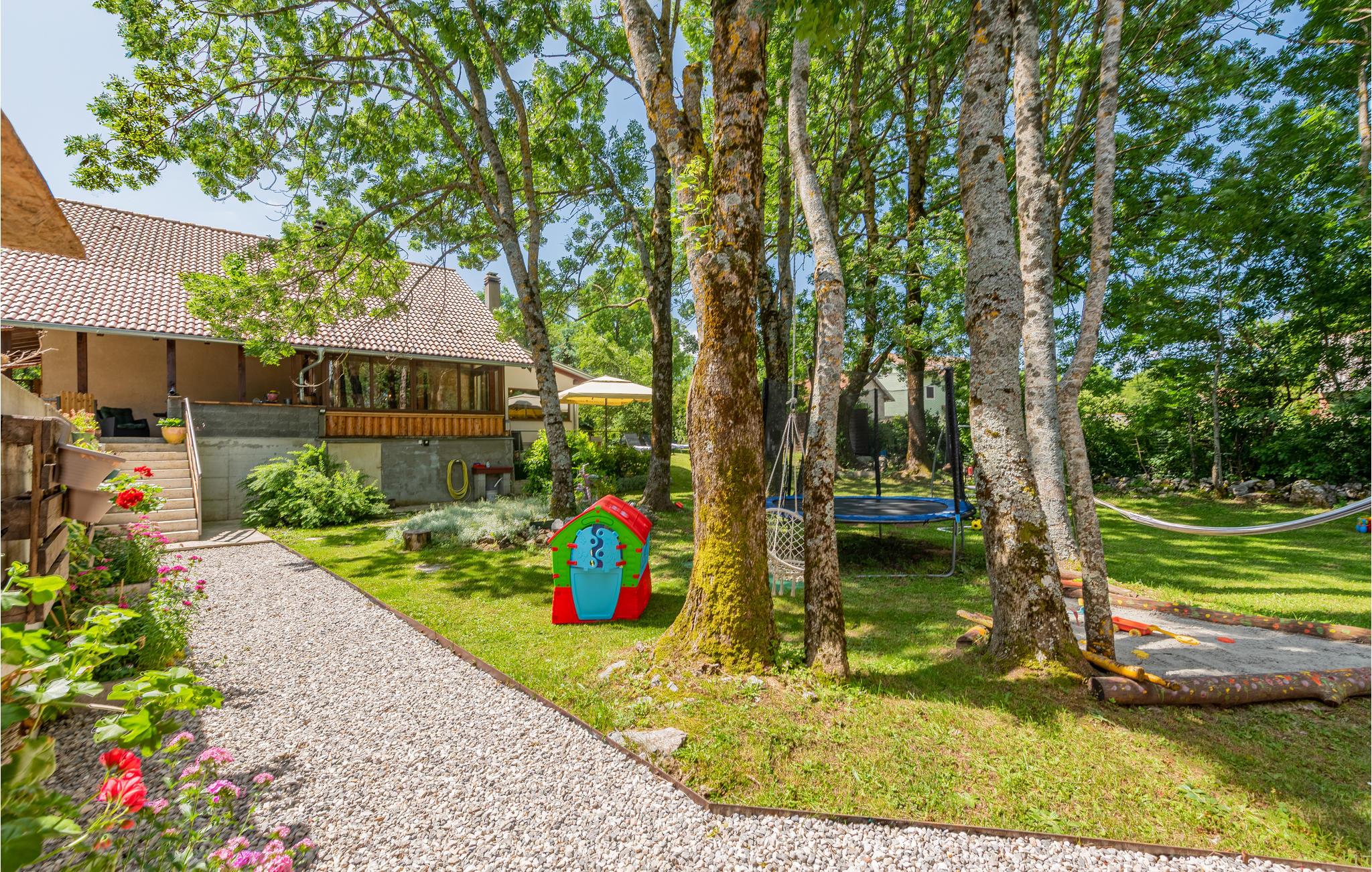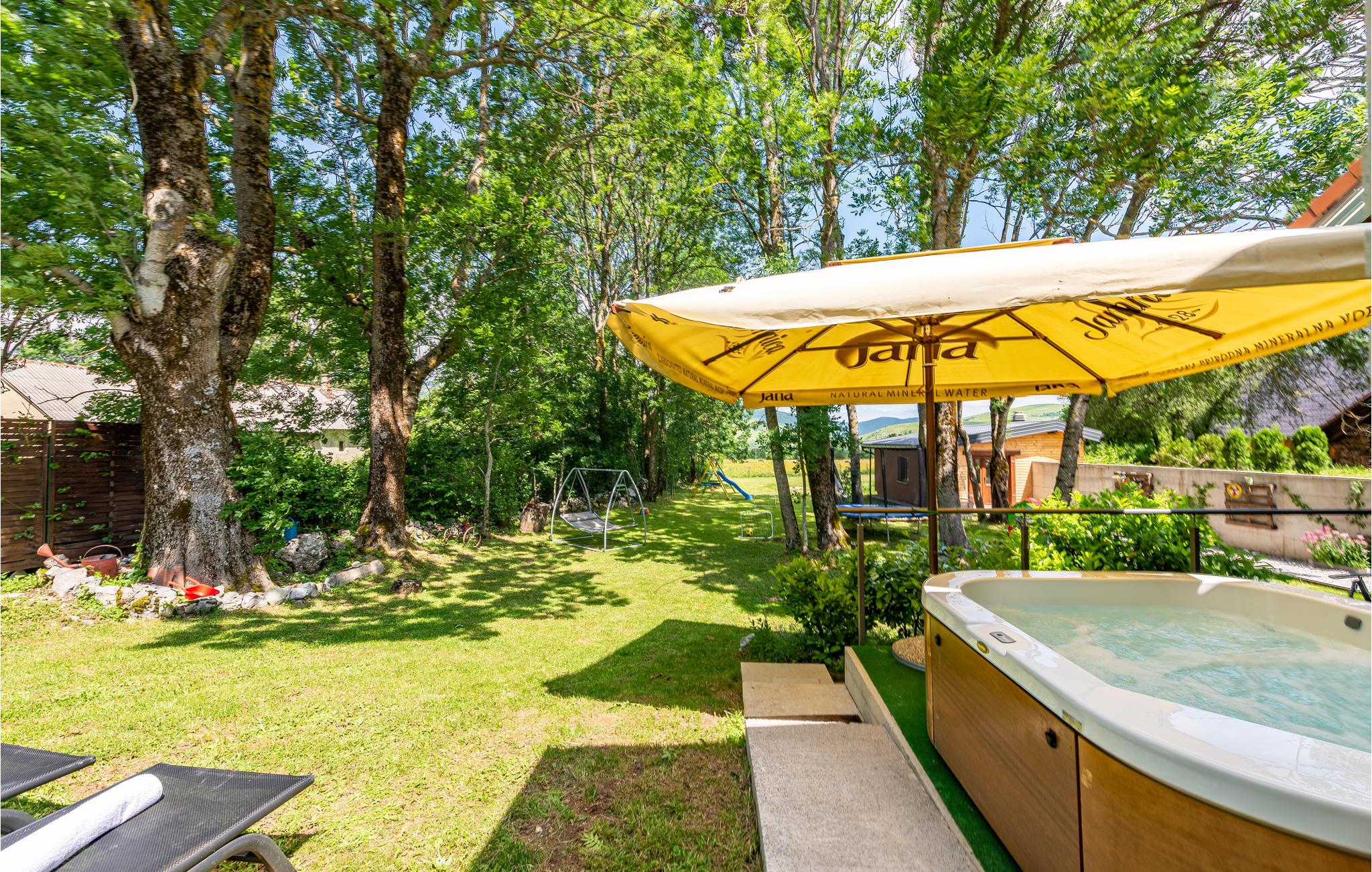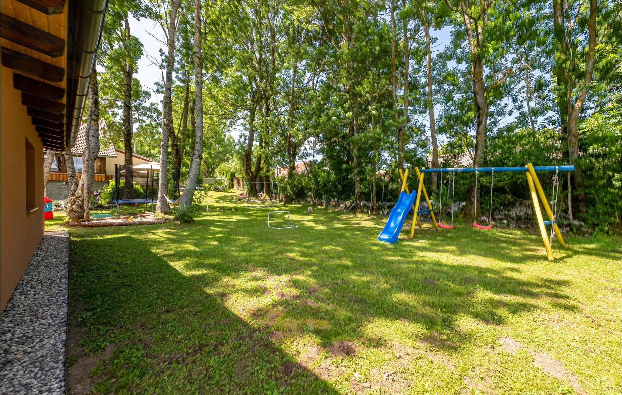 Draußen erwartet Sie viel Unterhaltung: neben dem Whirlpool können die Kinder die vielen Spielmöglichkeiten nutzen. Es gibt u.a. ein Volleyballnetz, ein Badmintonnetz, Fußballtore, eine Wippe, Spielzeug und vieles mehr.