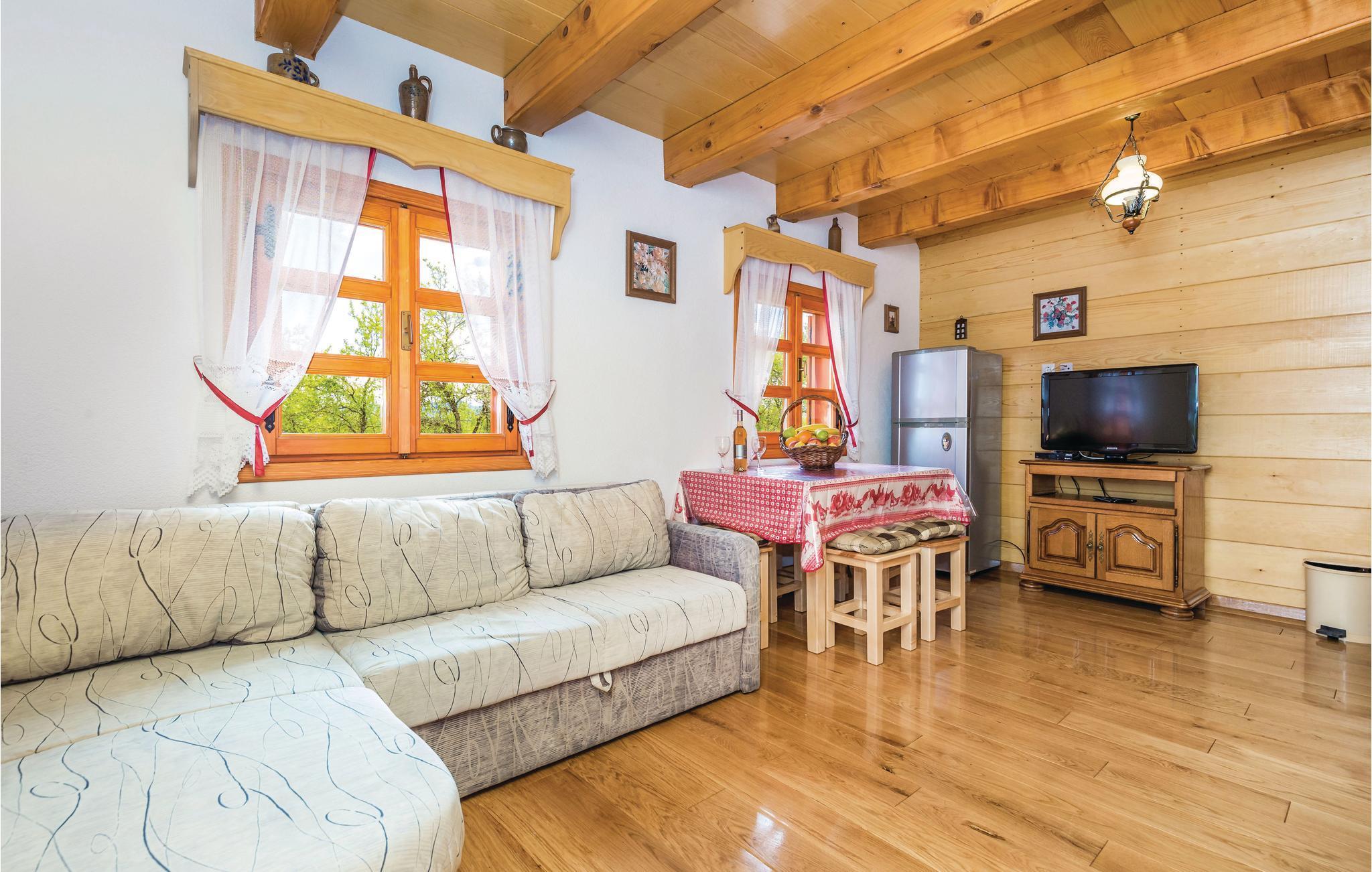 Einfach eingerichtetes Holzhaus, ideal für Familien mit Kindern. Das Haus steht auf einem 10.000 m2 großen gemeinsamen Grundstück, wo sich auch die Häuser CKB294 und CKB295 befinden, was sich gut für einen kombinierten Aufenthalt von mehreren Familien eignet. Das Ambiente und die Natur in dieser Gegend sind einzigartig und es gibt viele interessante Ausflugsziele. Besuchen Sie z.B. die Quelle des Flusses Gacka. In den Restaurants in der Umgebung sollten Sie unbedingt gegrillte Forellen kosten. Erkunden Sie auch die Gedenkstätte Memorijalni centar Nikola Tesla in Smiljan, dem Geburtsort des weltberühmten Physikers. Zum Objekt führt ein 400 m langer Schotterweg. Zur gemeinsamen Benutzung mit den Ferienhäusern CKB295 und CKB294 steht Ihnen ein Pool mit Sonnendeck zur Verfügung sowie Kinderspielzeug wie Spielhaus, Sandkasten, Wippe und Schaukel, 8 Fahrräder für Erwachsene, ein Netz für Badminton/Volleyball, eine Gartenlaube mit Grill, ein Nebengebäude auf zwei Etagen mit Unterhaltungsangeboten wie Tischtennis, Tischfußball, Projektor mit Leinwand für mögliche Präsentationen, Billard dazu auch eine Teeküche und ein Bad.