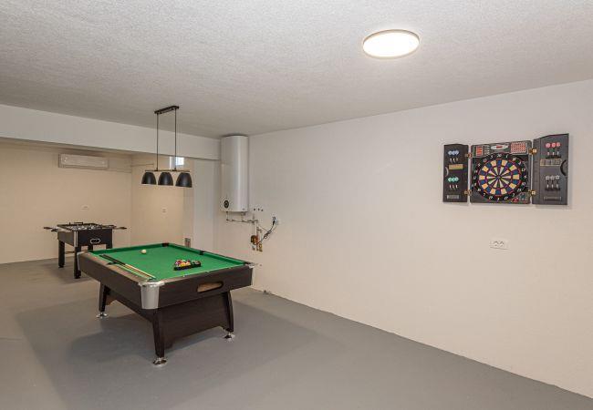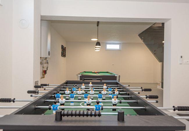 In the basement of the villa there is an entertainment area that includes table football, board games and other entertainment facilities, as well as a private gym for those who want to stay active during their vacation.