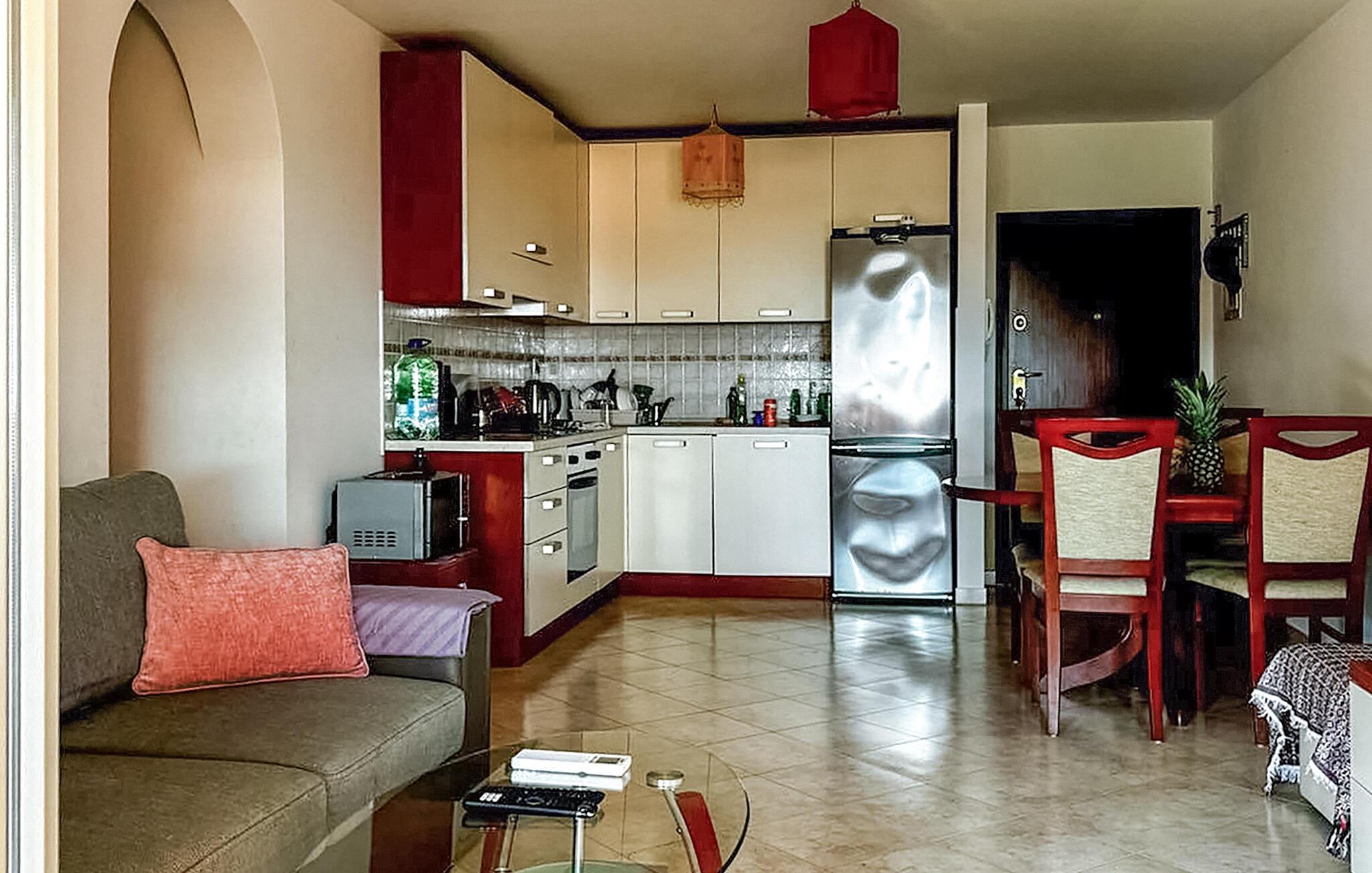 Für die kleinen Gäste gibt es einen Kinderspielplatz in der Nähe, der für zusätzlichen Spaß sorgt. Auch Einkaufsmöglichkeiten und Restaurants sind bequem zu Fuß erreichbar. Entspannen Sie sich am gemeinsamen Außenpool, der allen Gästen des Wohngebäudes zur Verfügung steht. Nutzen Sie die Gelegenheit, ein erfrischendes Bad zu nehmen und anschließend die Sonne auf einer Liege zu genießen.