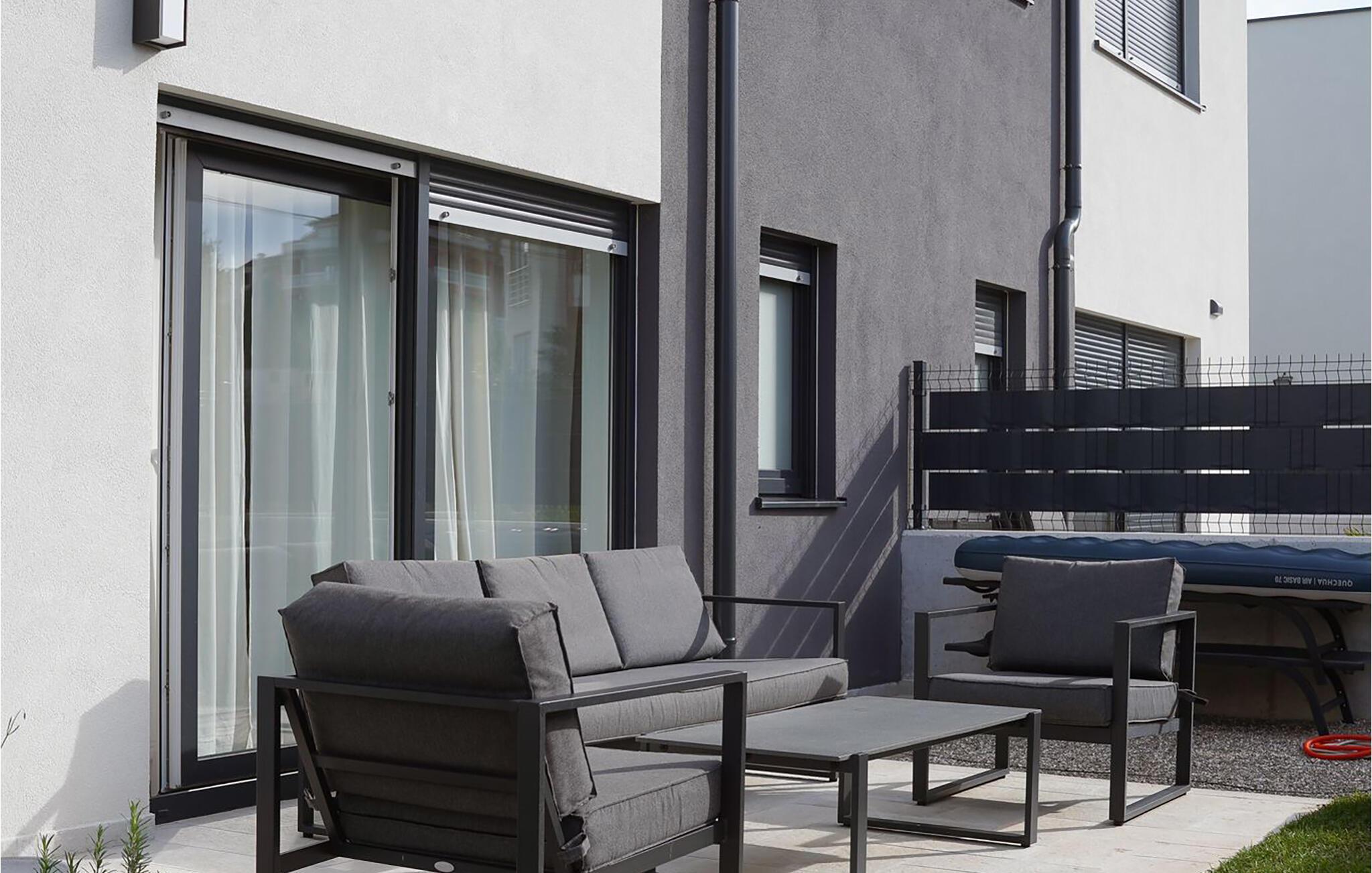 Erleben Sie Entspannung und Komfort in diesem modernen Ferienhaus mit Pool.