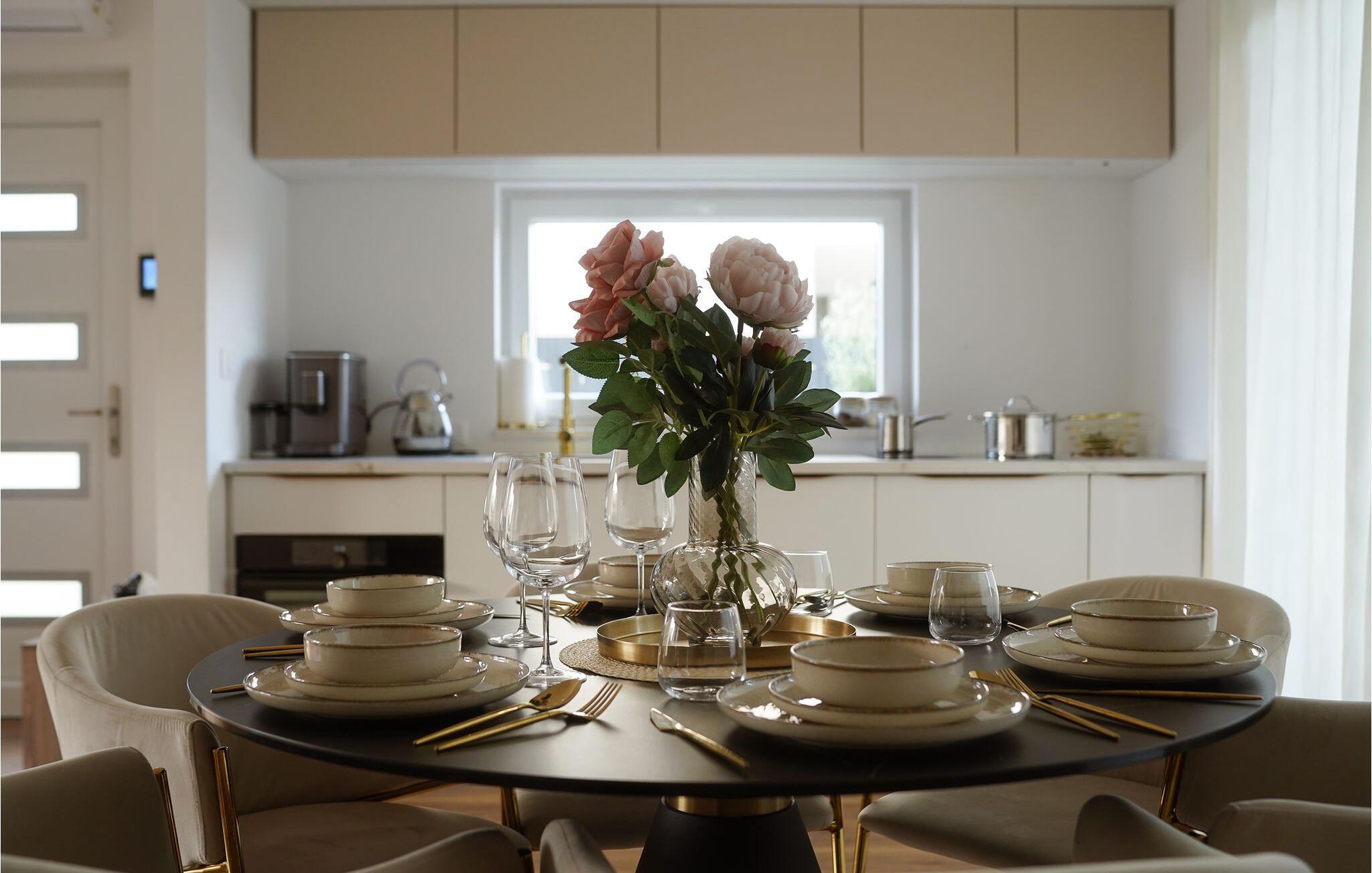 Tauchen Sie ein in die mediterrane Leichtigkeit und genießen Sie einen unvergesslichen Urlaub in diesem stilvoll und hochwertig eingerichteten Ferienhaus. Lassen Sie sich vom modernen Design der lichtdurchfluteten Räume verzaubern, bereiten Sie in der modernen Küche köstliche Gerichte zu und genießen Sie diese am eleganten Esstisch. Verbringen Sie gemütliche Abende auf der bequemen Couch im Wohnzimmer und entspannen Sie mit einem Film oder einem Glas kroatischem Wein.