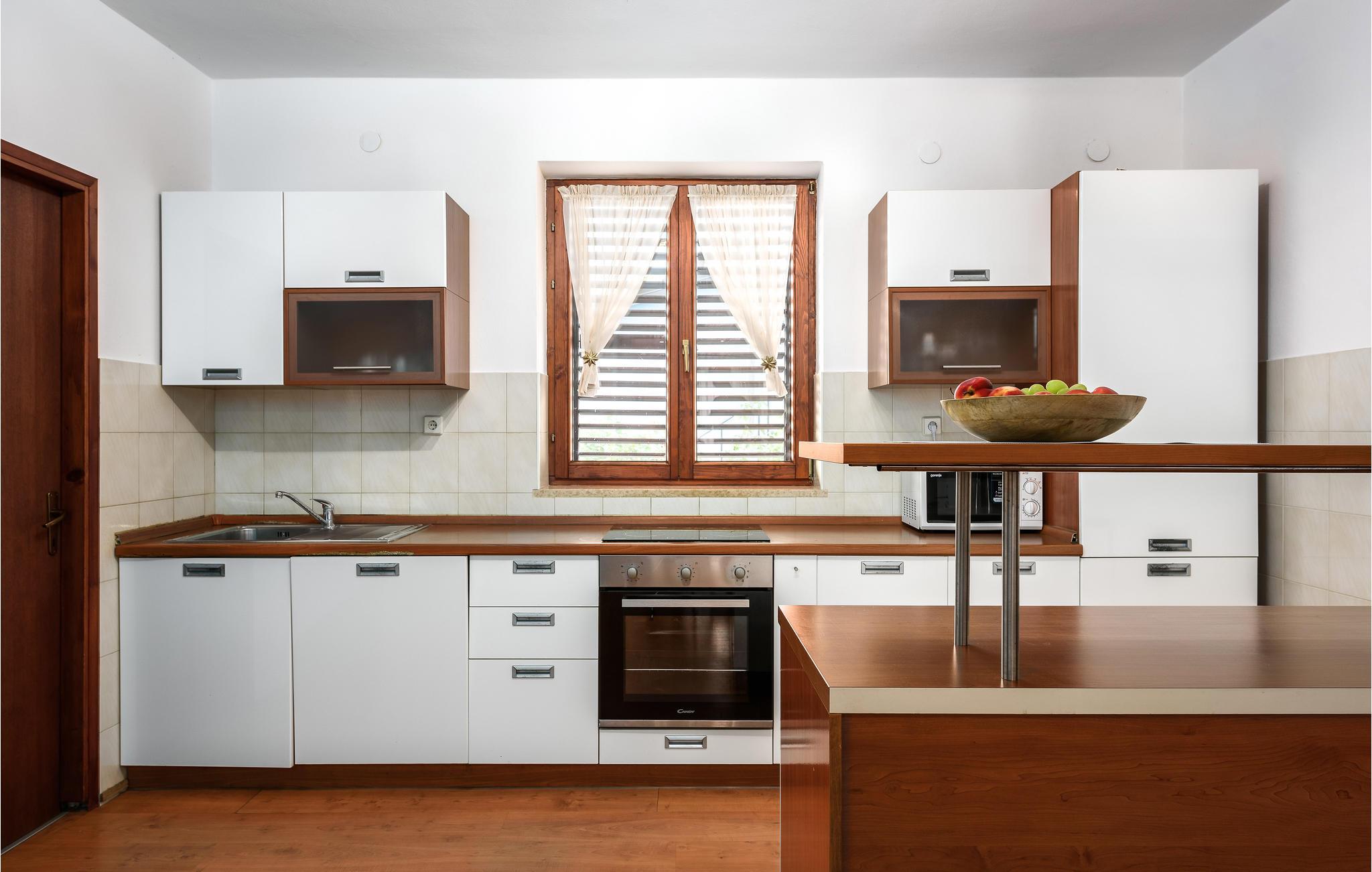 Auf einem großen, umzäunten Grundstück mit einer traumhaften Panoramaaussicht und in einer sehr schönen Umgebung erwartet Sie dieses komfortable Ferienhaus mit viel Platz. Es besteht aus zwei Wohnungen, die durch eine Innentreppe miteinander verbunden sind. Es ist sehr gut für zwei Familien geeignet. Auf der 70 m² großen Terrasse können Sie in aller Ruhe ein Gläschen Malwasia genießen, während Ihre Kinder im Garten spielen. Hier befindet sich ein Außengrill, auf dem Sie wohlschmeckende Grillgerichte zubereiten können. Nur wenige Gehminuten vom Haus entfernt liegen wunderschöne Strände, an denen Sie im kristallklaren Meer baden können. Es ist ebenfalls nicht weit zu mehreren Lebensmittelgeschäften und einem Restaurant. Der herrliche Pool bietet in den heißen Sommermonaten Abkühlung und Erfrischung. Liznjan ist ein typisch istrisches Dorf, in dem Massentourismus noch ein Fremdwort ist. Das nicht weit entfernte Medulin bietet ein reiches Nachtleben, insbesondere für Jüngere, von Sommerterrassen über Beachbars bis zu Discos. Die malerische Stadt Pula lädt zum Bummeln und Shoppen ein.