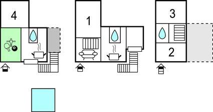 Badezimmer (nr. 3) - WC. Warmes und kaltes Wasser. Dusche