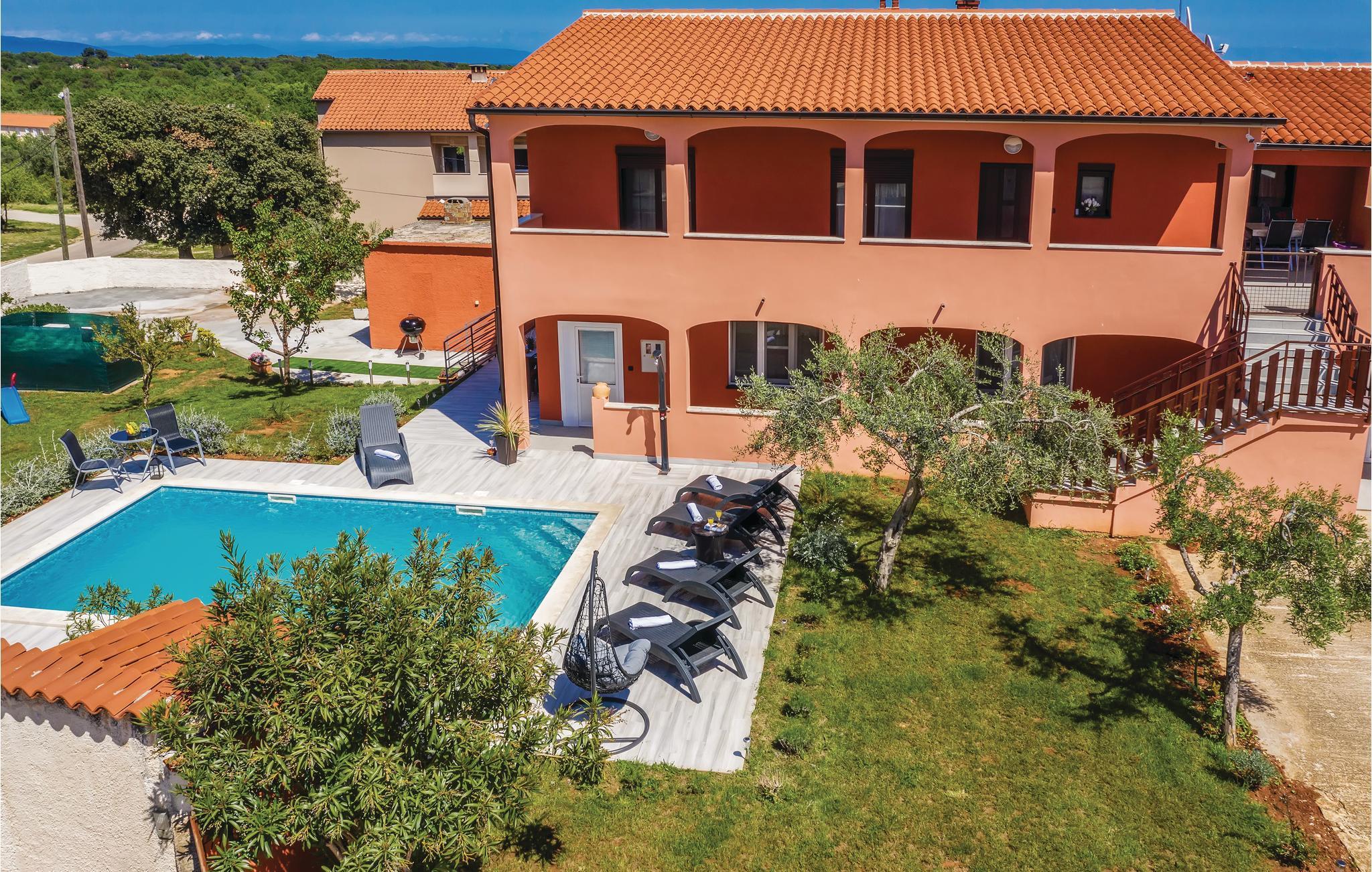 Verbringen Sie einen angenehmen Urlaub in dieser geräumigen Ferienwohnung mit Pool. Entspannen Sie auf der großen Terrasse und nehmen eine Erfrischung im Pool. Für die Kleinsten gibt es Spielgeräte, so dass keine Langeweile aufkommt. Die Gäste haben einen separaten Eingang zum Grundstück, so dass auch für Ihre Privatsphäre gesorgt ist. Ližnjan grenzt an den Urlaubsort Medulin und ist etwa 12 km von der historischen Stadt Pula entfernt. Entdecken Sie versteckte Buchten mit kristallklarem Meer und unberührte Natur, hier kommen Spaziergänger, Radfahrer, Surfer, Taucher und Liebhaber anderer Wassersportarten auf Ihre Kosten.