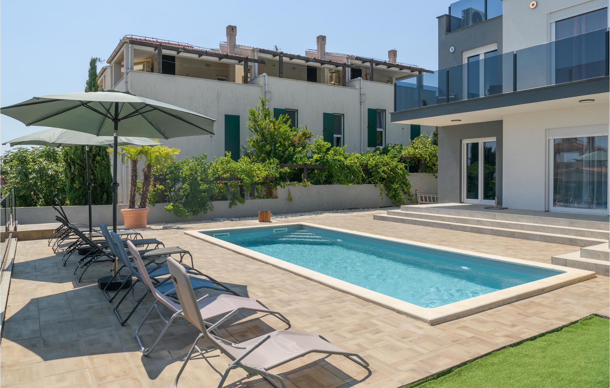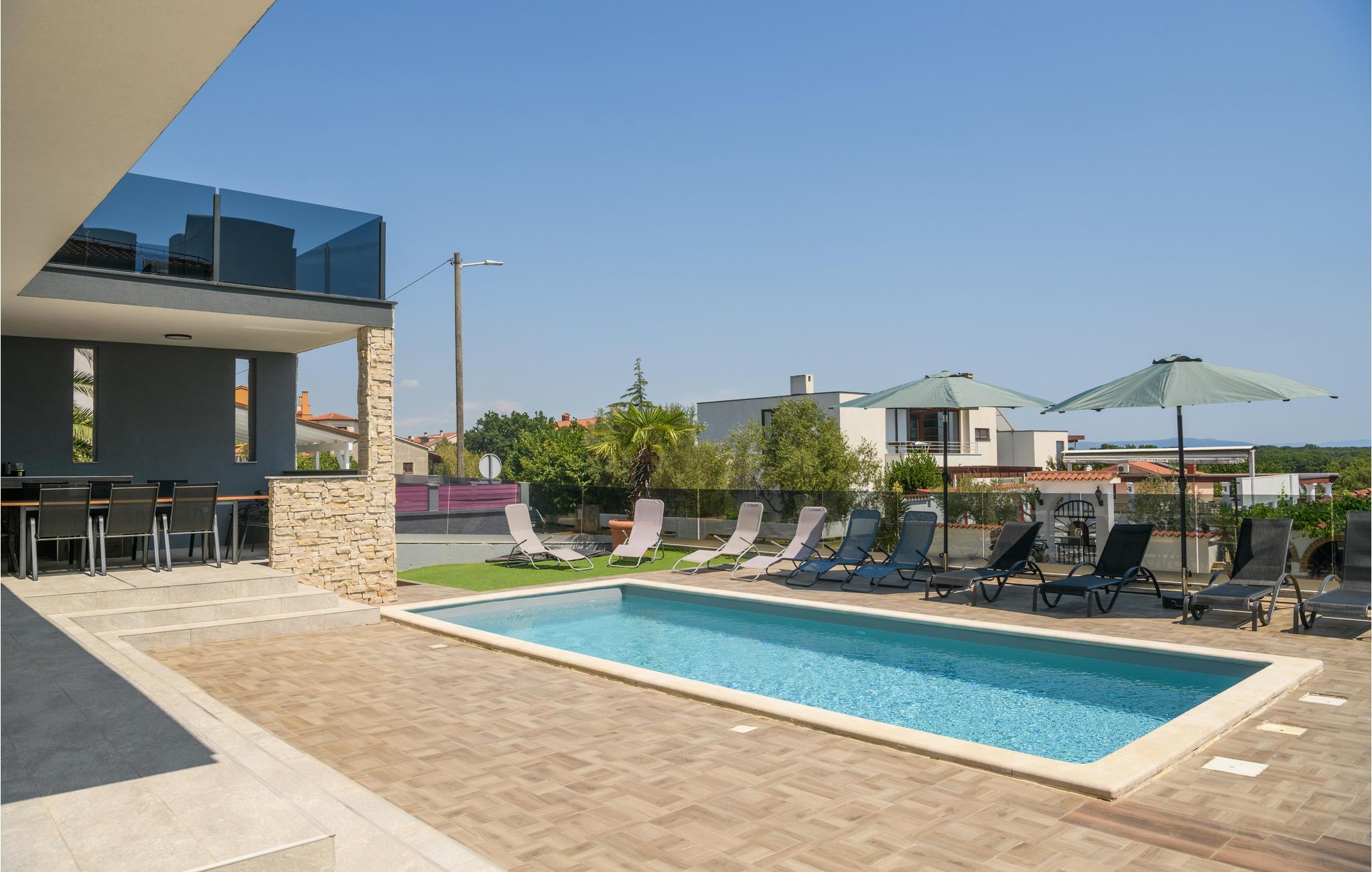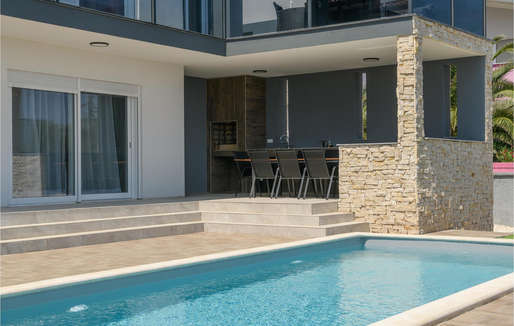 Freuen Sie sich auf eine geräumige Unterkunft mit stilvoller moderner Einrichtung, welche Ihnen einige gemütliche Wohlfühlecken bietet in die Sie sich zurückziehen können, Ihre Zeit in eine Urlaubslektüre investieren, Karten spielen oder sich gemeinsamen Mahlzeiten zuwenden können. DIeses Steinhaus bietet Ihnen ebenso eine teilweise überdachte Terrasse, sowie einen privaten Pool, in dem Sie sich jederzeit abkühlen können, sollte es mal zu heiß werden. Des weiteren stehen Ihnen auch Sonnenliegen zur verfügung auf welchen Sie sich in der Sonne baden und vollkommen entspannen können. An lauen Sommerabenden können Sie auch den Grill zu nutzen machen und in der Außenküche Ihr Abendessen zum Brutzeln vorbereiten. In diesem harmonischen Haus finden Sie alles was Ihren Besuch von Kroatien zu einem entspannten Urlaub machen wird.