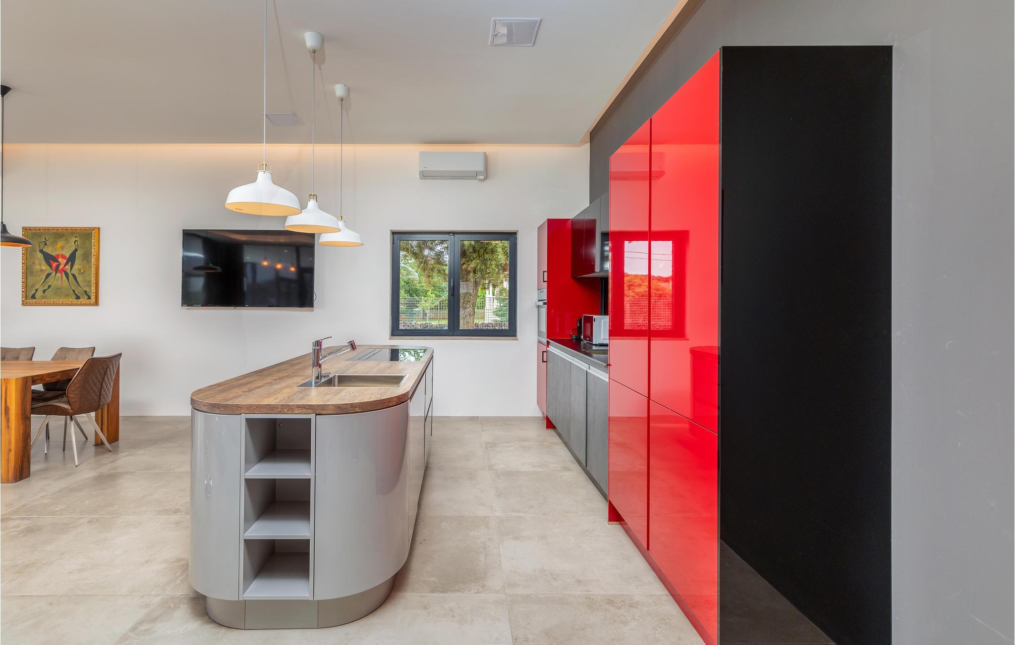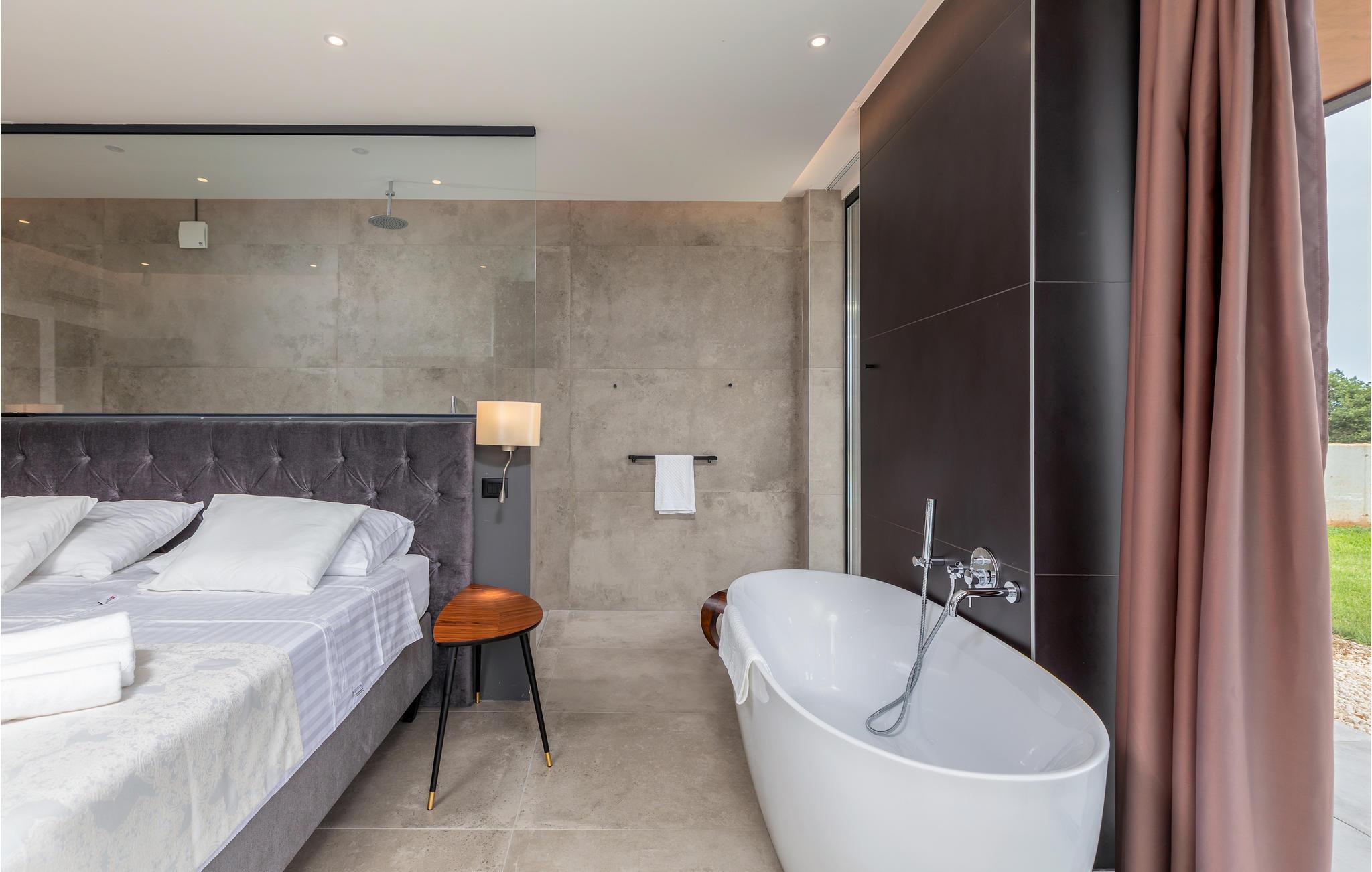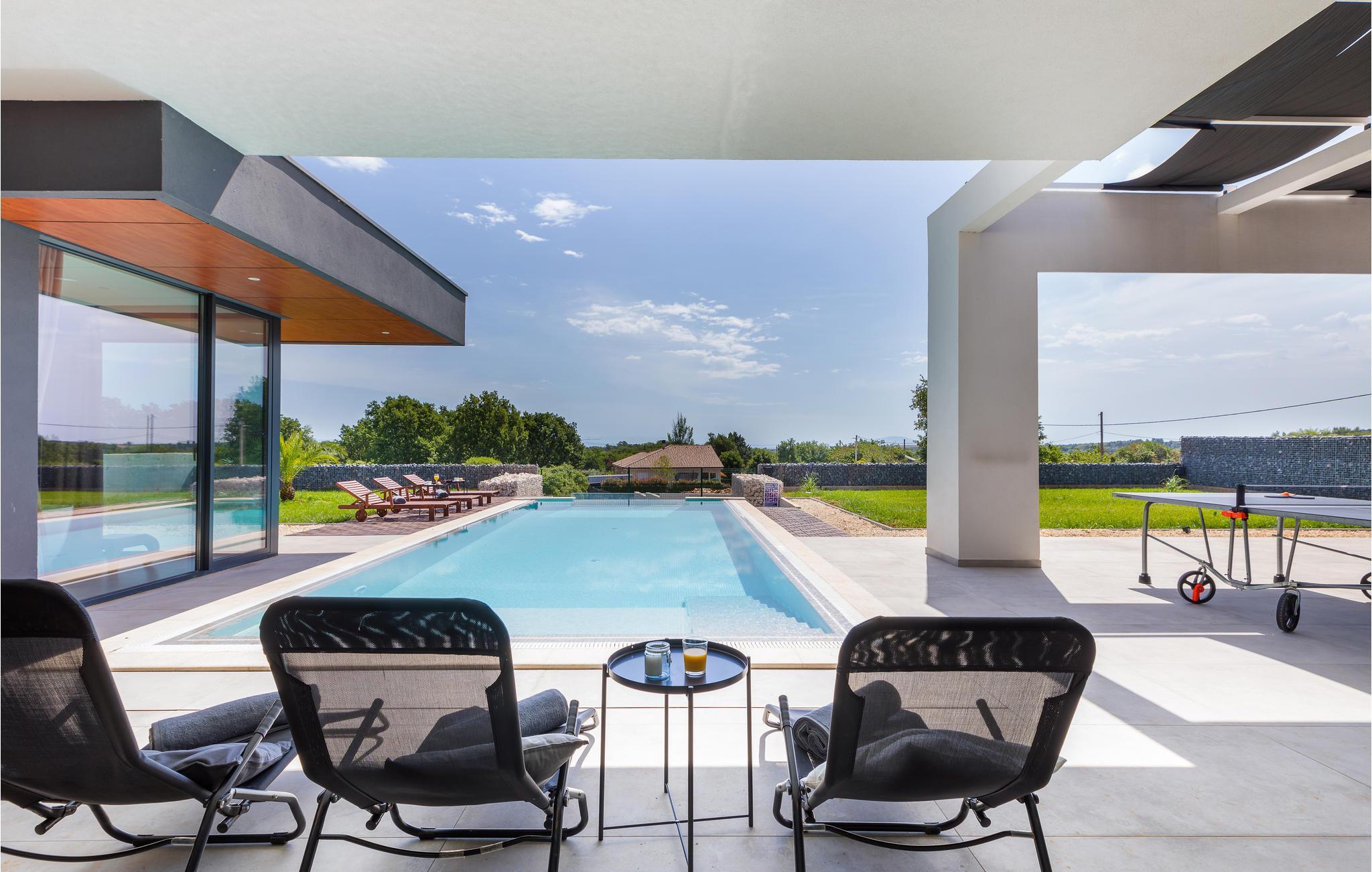 Dieses architektonisch beeindruckende Ferienhaus liegt in der Nähe des Meeres und befindet sich an der südlichsten Spitze Istriens im kleinen Fischerdorf Ližnjan. Das 2021 fertig gestellte Haus bietet einen schönen Blick auf das Meer und die Inseln Cres und Lošinj. Die Architektur dieser Villa wurde von den renommiertesten kroatischen Zeitschriften für Design und Architektur veröffentlicht. Die Zimmer sind modern eingerichtet mit viel Licht und Glasflächen. Das Haus ist für Menschen mit Behinderung geeignet, da das gesamte Erdgeschoss keine Treppen hat. Der Pool ist nur 2 m vom Bett des unteren Zimmers entfernt.