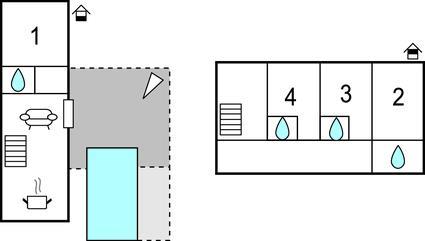 Badezimmer 6m2 (nr. 1) - WC. Warmes und kaltes Wasser. Dusche