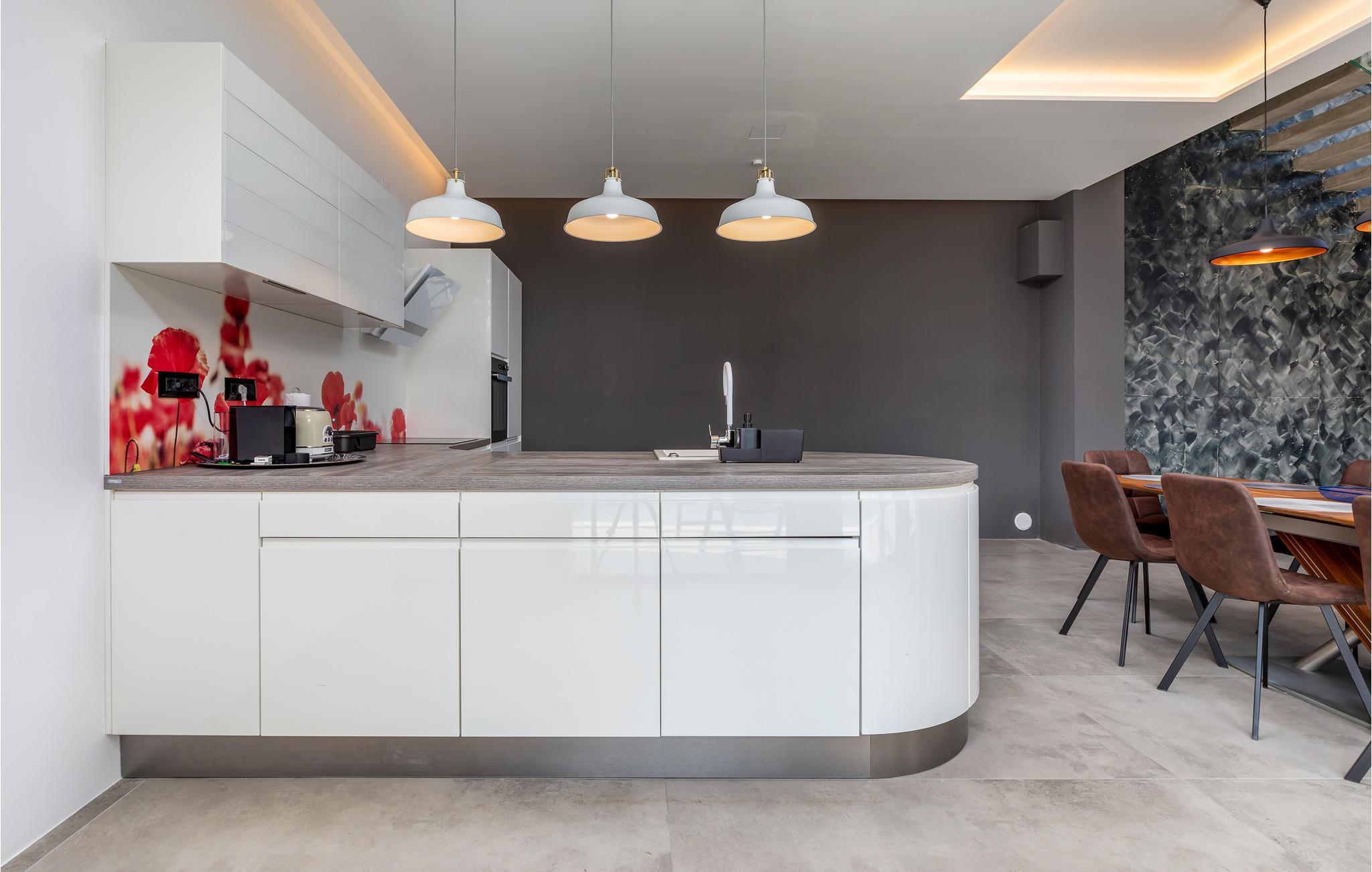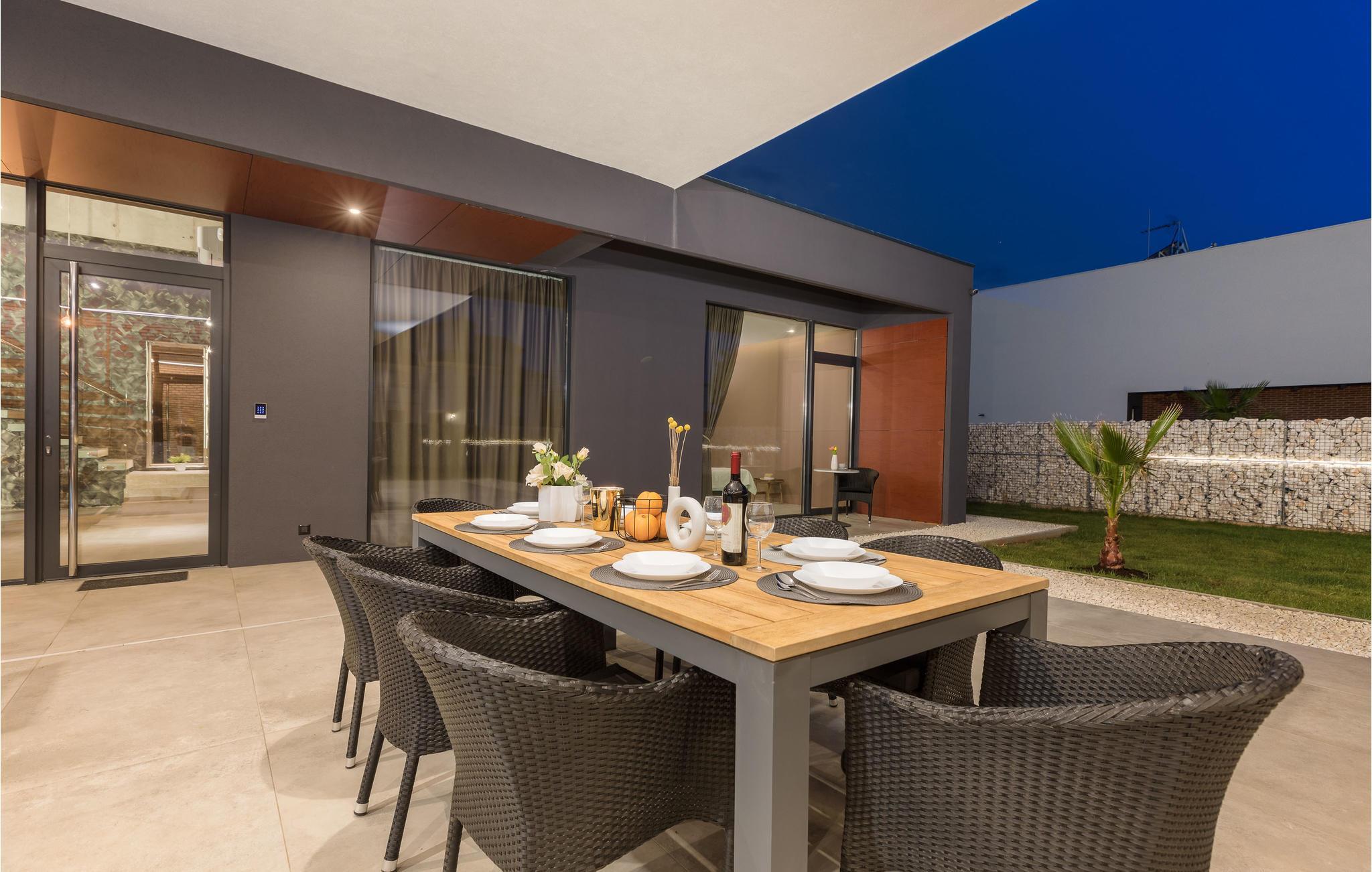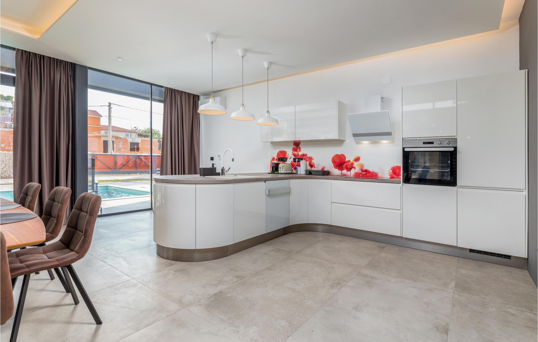 Es handelt sich um ein schönes, modernes und geräumiges Haus mit hohem Komfort aus dem Jahr 2021. Die Zimmer sind modern eingerichtet mit viel Licht und Glasflächen, von hier haben Sie einen schönen Blick auf das Meer und die Inseln von Losinj. Die Schlafzimmer befinden sich im 1. Stock, während das Erdgeschoss aus einem großen Wohnzimmer besteht, das sich zu einer überdachten Terrasse öffnet, durch die der beheizte Pool führt. Der Pool erstreckt sich unterhalb des Hauses und setzt sich bis in den Außenbereich fort.