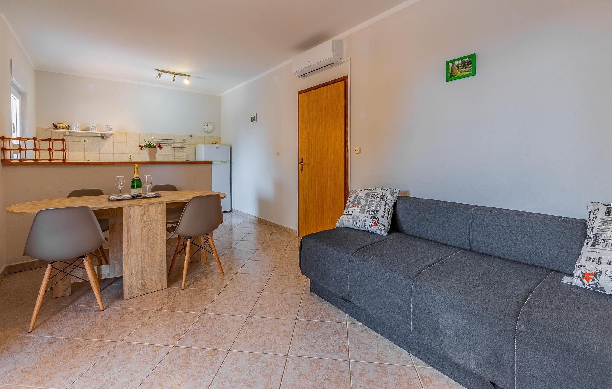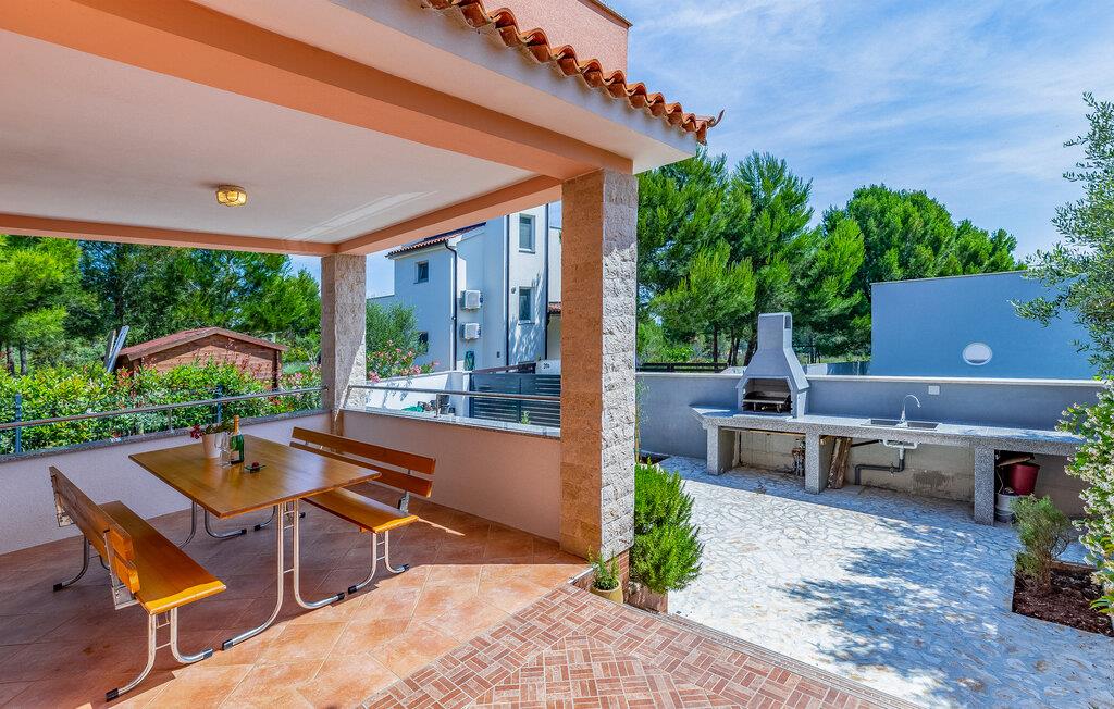 Erleben Sie einen entspannten Urlaub in dieser harmonischen Doppelhaushälfte in Liznjan, ideal für kleinere Familien und Paare. Die geschmackvoll eingerichteten Innenräume bieten modernen Komfort und sorgen für eine gemütliche Atmosphäre. Hier können Sie sich wohlfühlen und Ihren Ferienalltag nachgehen. Die interne Kommunikation im Haus ist optimal, sodass Sie sich schnell und bequem im ganzen Haus bewegen können. Von der Terrasse im ersten Stock genießen Sie einen herrlichen Meerblick. Spielen Sie hier Karten, genießen kühle Getränke und entspannen in der Sonne.