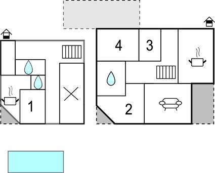 Badezimmer (nr. 3) - WC. Warmes und kaltes Wasser. Dusche