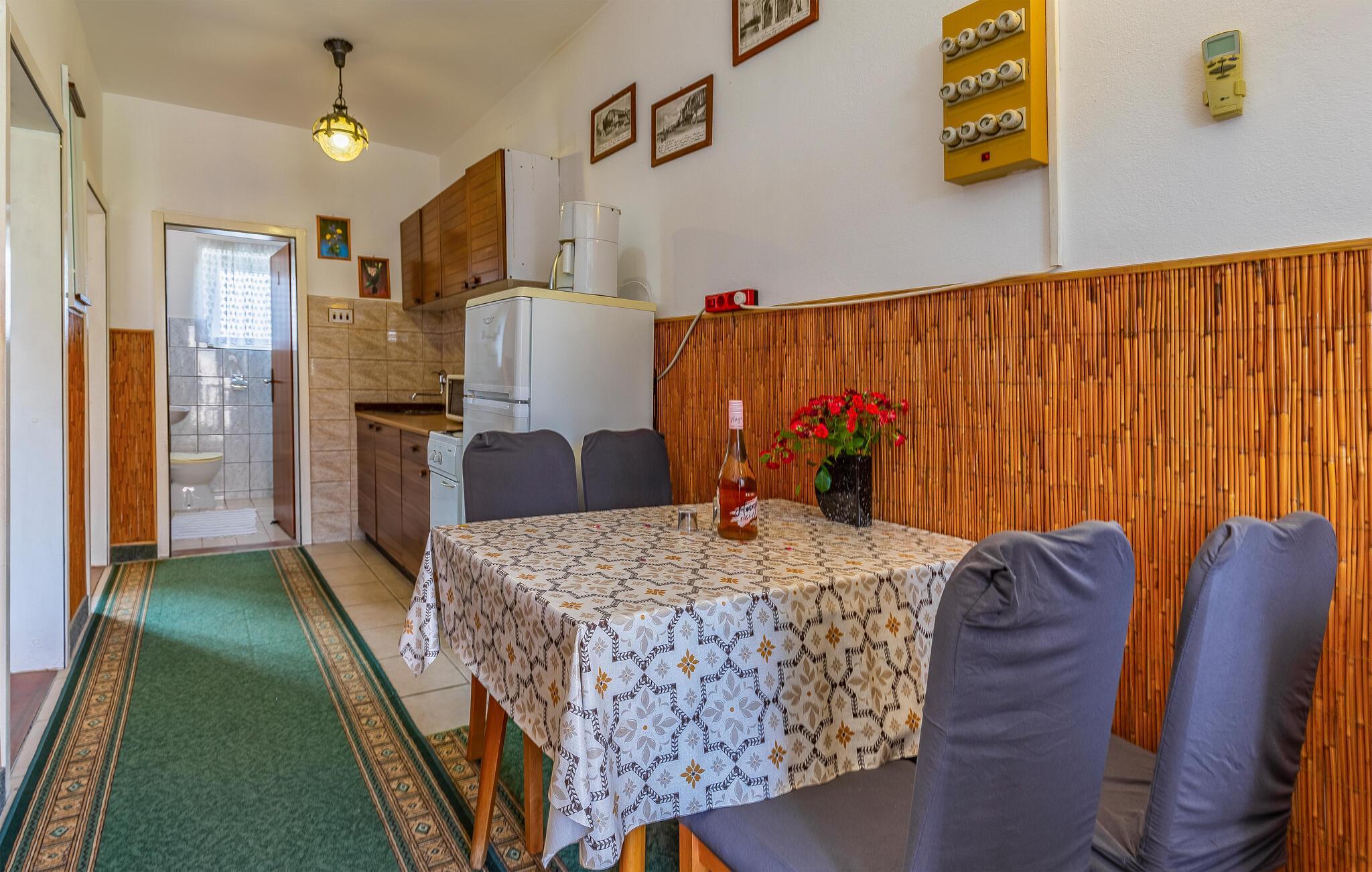 Diese freundliche Ferienwohnung begrüßt Sie mit einer behaglichen Wohnatmosphäre und bietet Ihnen ein schönes Zuhause, während Sie die Region rund um Medulin von ihrer schönsten Seite kennenlernen. Freuen Sie sich auf leckere Mahlzeiten und harmonische Spieleabende am einladenden Esstisch und entspannen Sie sich nach einem erlebnisreichen Tag bei einem guten Film.