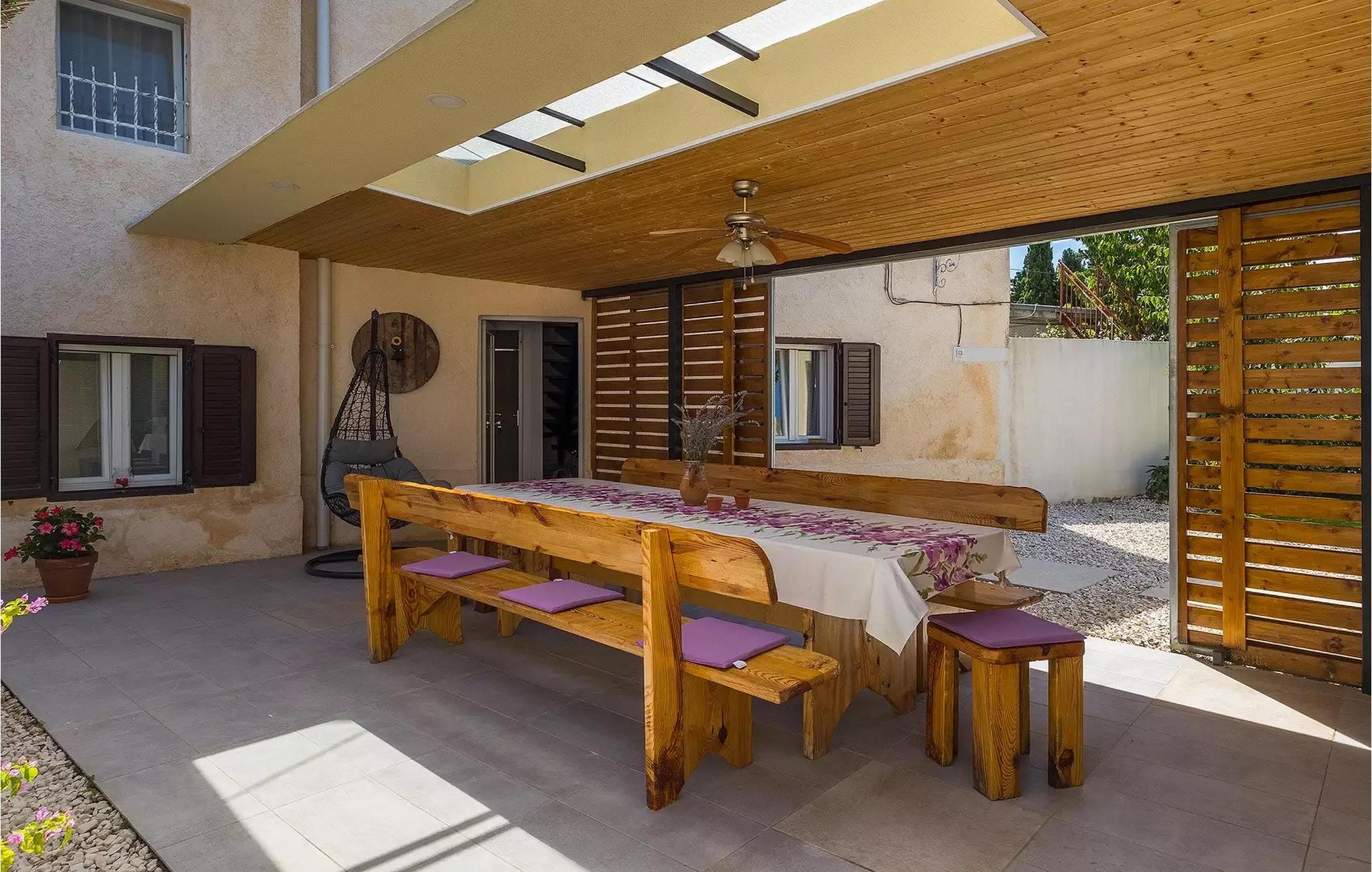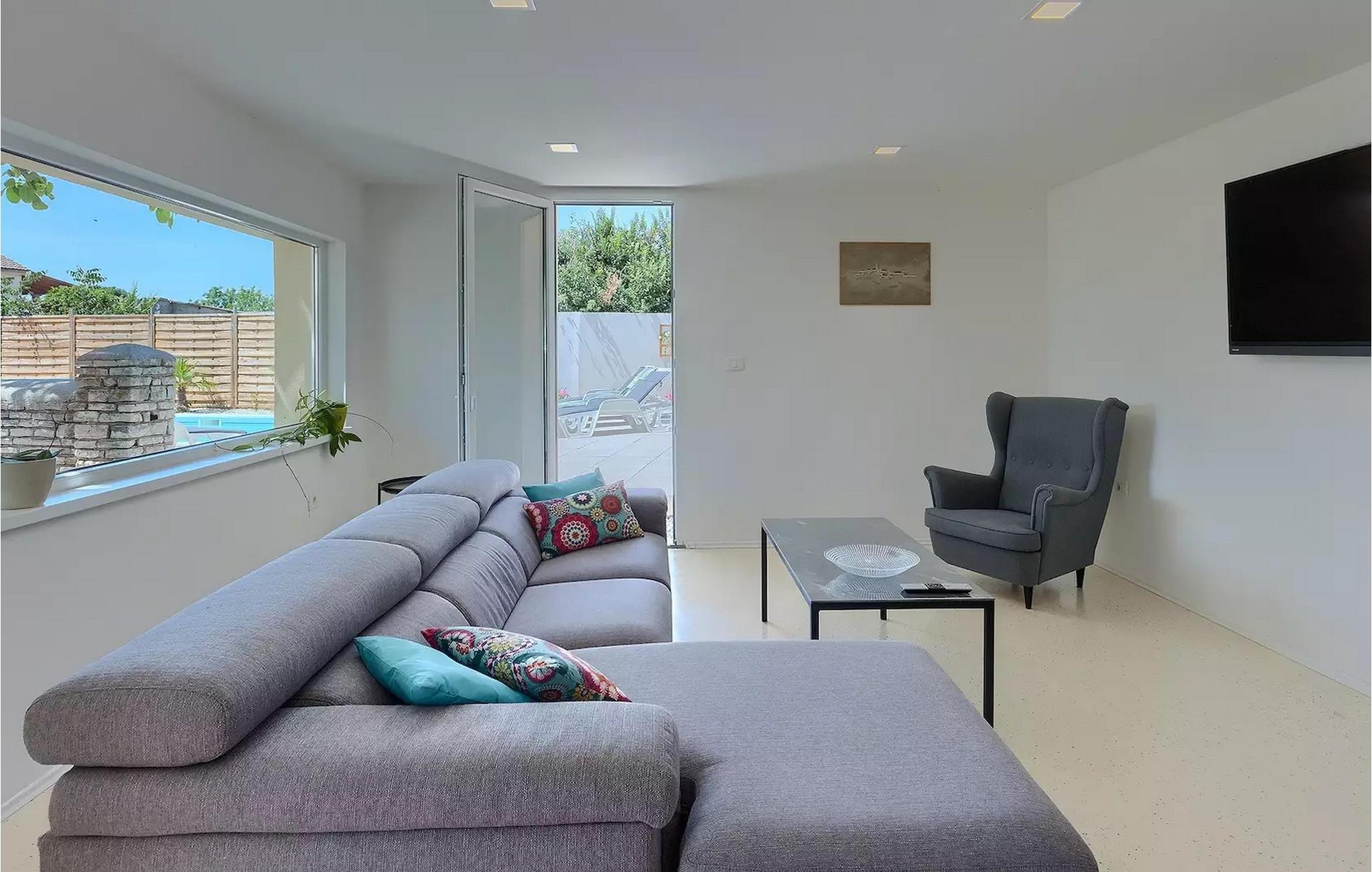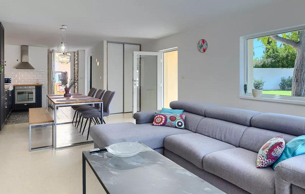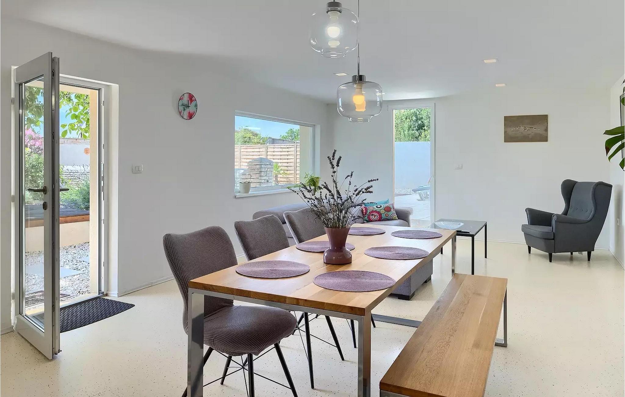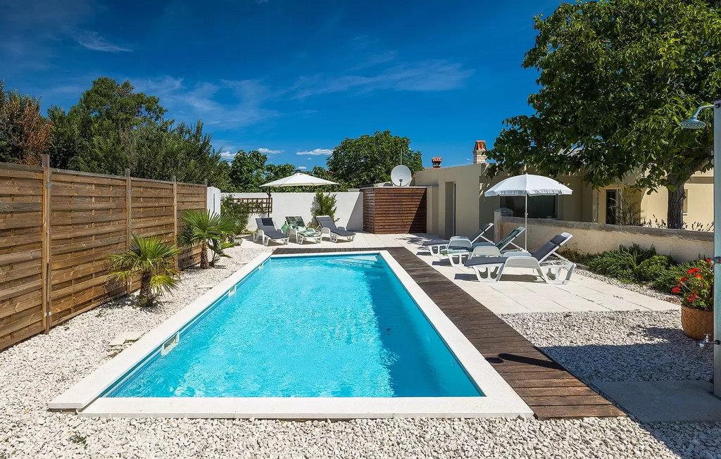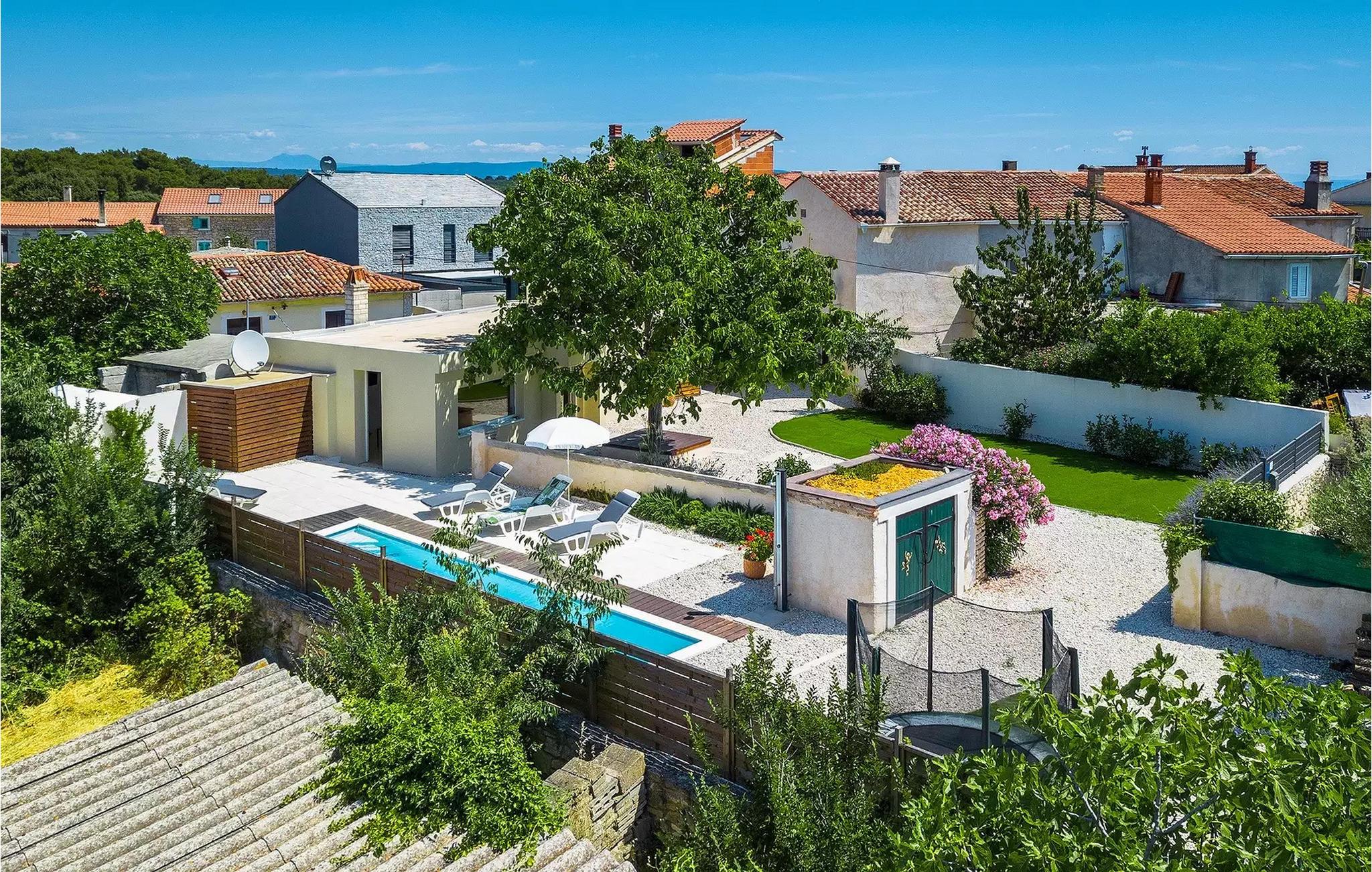 Die Villa Antonici befindet sich in einer ausgezeichneten Lage in der Nähe des Meeres in Liznjan. Diese moderne Villa kann bis zu 6 Personen beherbergen und bietet alles, was Sie für einen erholsamen Urlaub benötigen. Die Villa besteht aus 2 separaten Gebäuden, die durch eine Außenterrasse verbunden sind. Das einstöckige Gebäude der Villa besteht aus einer voll ausgestatteten Küche, mit allem, was Sie brauchen, um köstliche Mahlzeiten für Familie und Freunde zu kochen, wie ein Esszimmer, ein Wohnzimmer und eine Toilette. Das Erdgeschoss des zweiten Gebäudes besteht aus einem Schlafzimmer, einem Badezimmer und einem Abstellraum. Im ersten Stock gibt es zwei weitere Schlafzimmer und ein Badezimmer. Die geräumige überdachte Terrasse mit einem Essbereich ist von diesen beiden Gebäuden aus leicht zugänglich. Auf der Terrasse gibt es auch einen Holzkohle- und einen Elektrogrill für die Zubereitung von Fleischspezialitäten und Gemüse der Saison. An heißen Sommertagen können Sie sich im Pool oder in der Außendusche im Garten erfrischen. Der Pool ist von Liegestühlen umgeben. Ihre Kleinen können sich beim Badminton spielen oder auf dem Trampolin springen entspannen. Es gibt auch vier Parkplätze. Verbringen Sie Ihre Tage mit einem Sonnenbad am Pool und genießen Sie am Abend traditionelle Köstlichkeiten und unbeschwerte Gespräche mit Ihren Lieben. Buchen Sie die Villa Anotnici, denn sie ist eine ideale Wahl dafür :)Die wunderschön restaurierte Villa Antonici befindet sich in Liznjan, in einem kleinen Fischerdorf mit einem natürlich geschützten Hafen auf einer kleinen Halbinsel im Süden Istriens. Es gibt bis zu 28 km schöne und unberührte Strände, die größtenteils felsig sind. Liznjan ist ein idealer Ort für Naturliebhaber und für diejenigen, die dem Verkehr entfliehen und gleichzeitig in der Nähe der Unterhaltungsmöglichkeiten des Touristenzentrums wohnen möchten. Von den historischen Sehenswürdigkeiten empfehlen wir Ihnen die Kirche "Gospa od Kuj" aus dem 17. Jahrhundert sowie die Kirche Sv. Martin von 1879. Wenn Sie in Ližnjan sind, sollten Sie unbedingt größere touristische Ziele wie Rovinj, Pula und Porec besuchen.