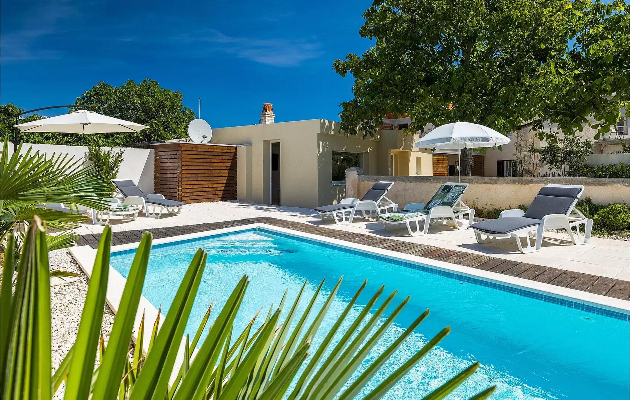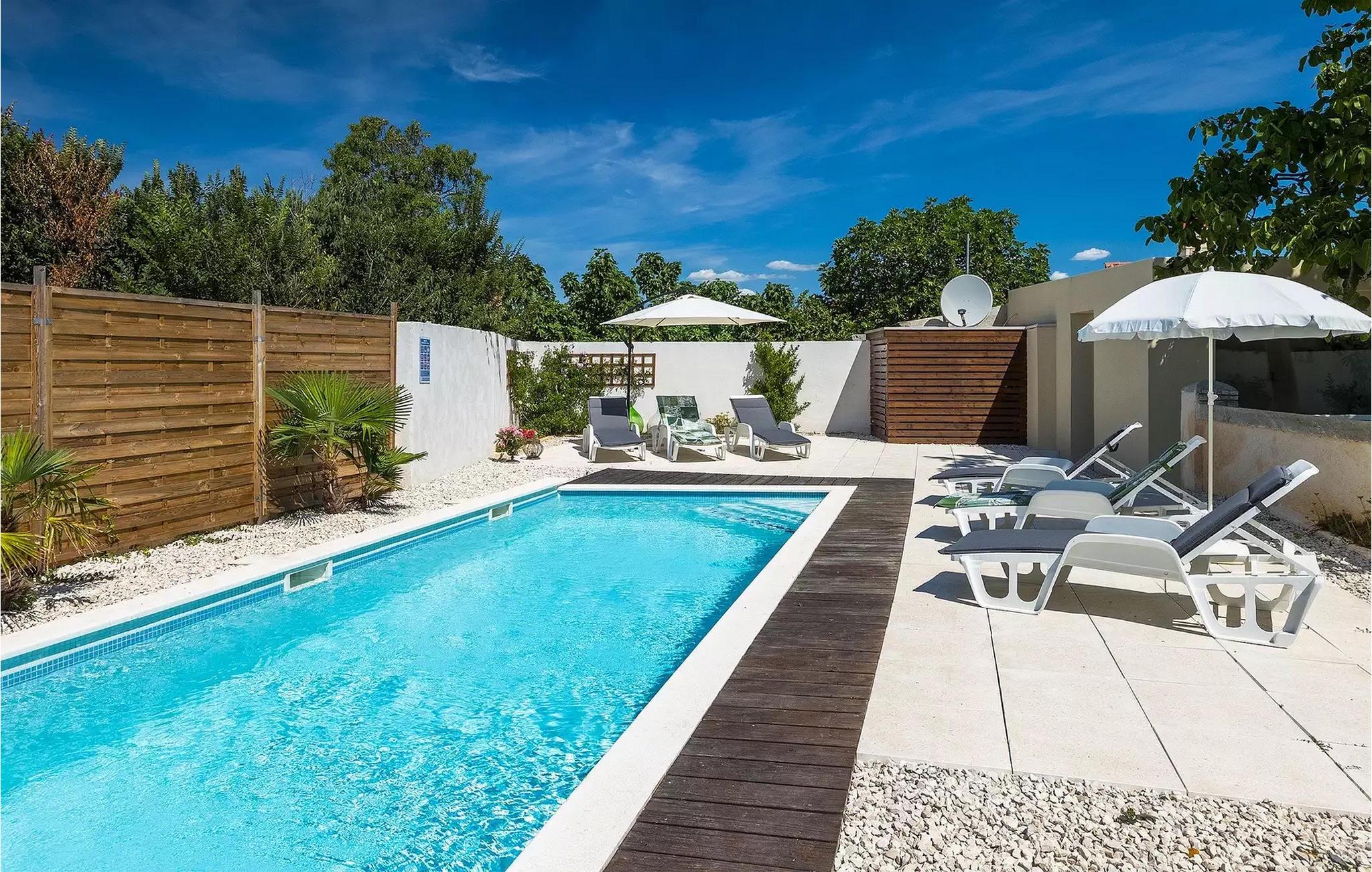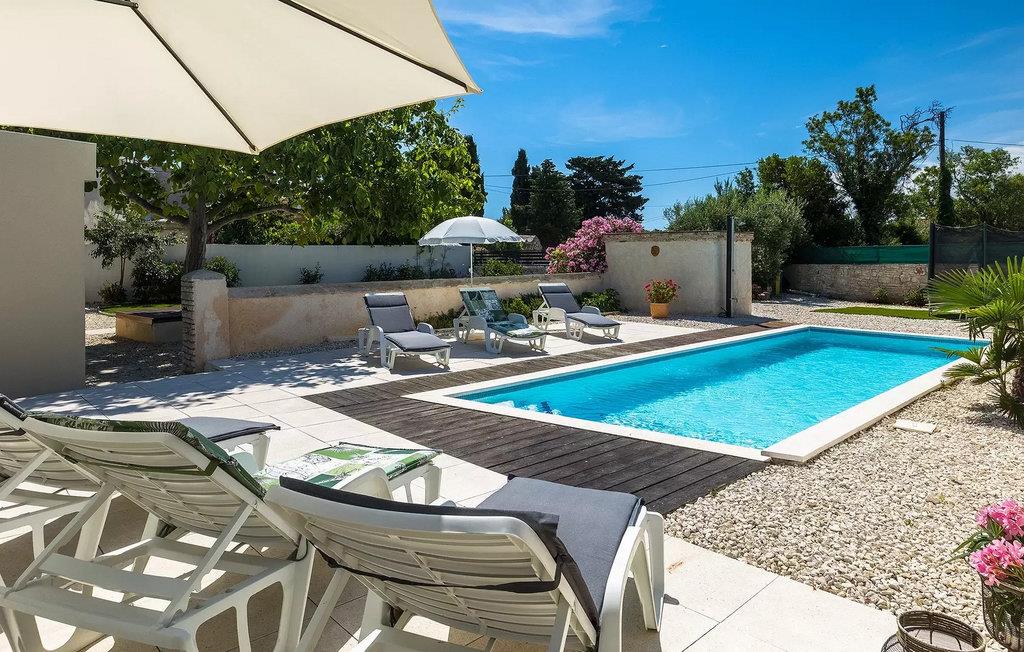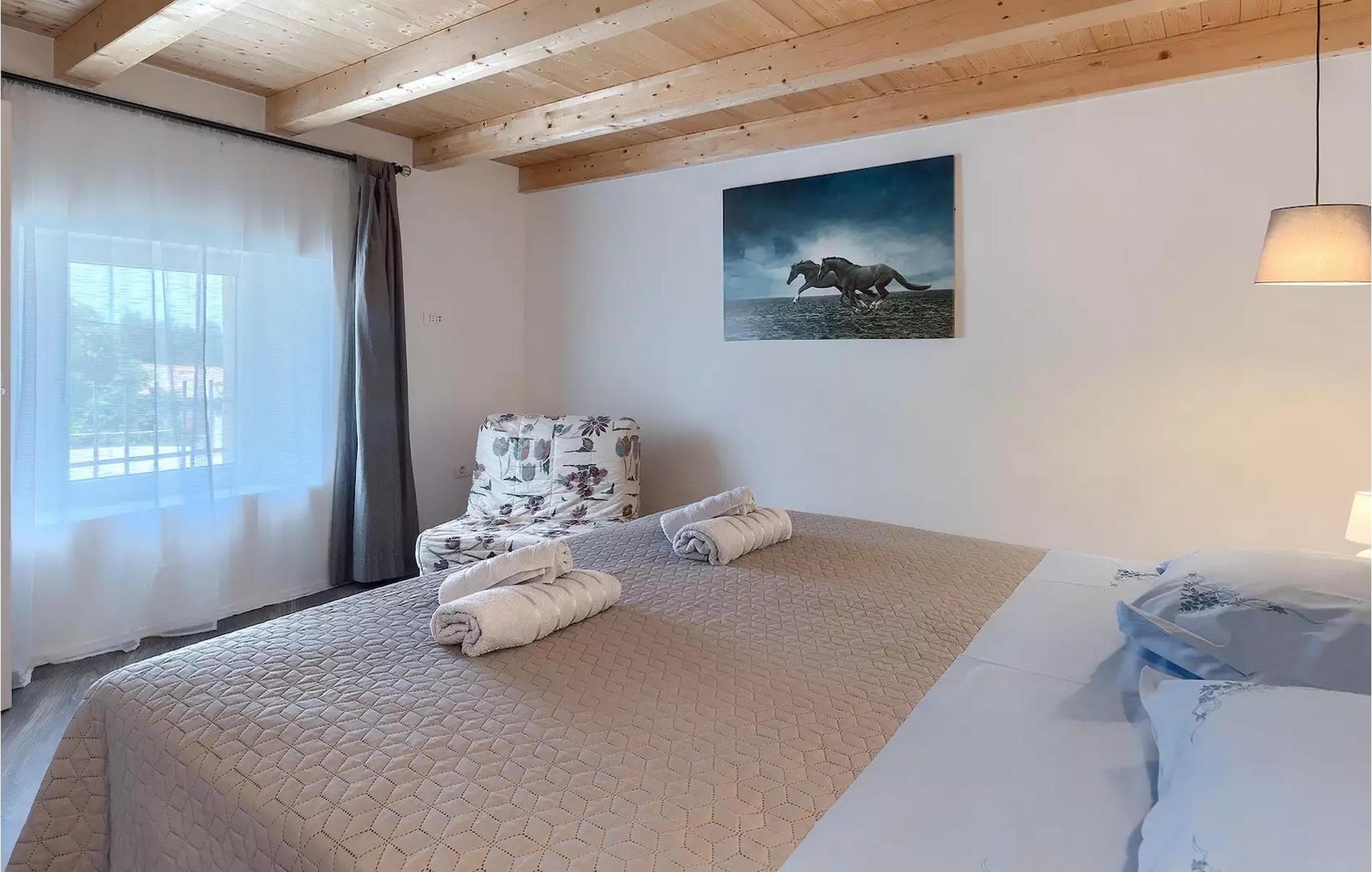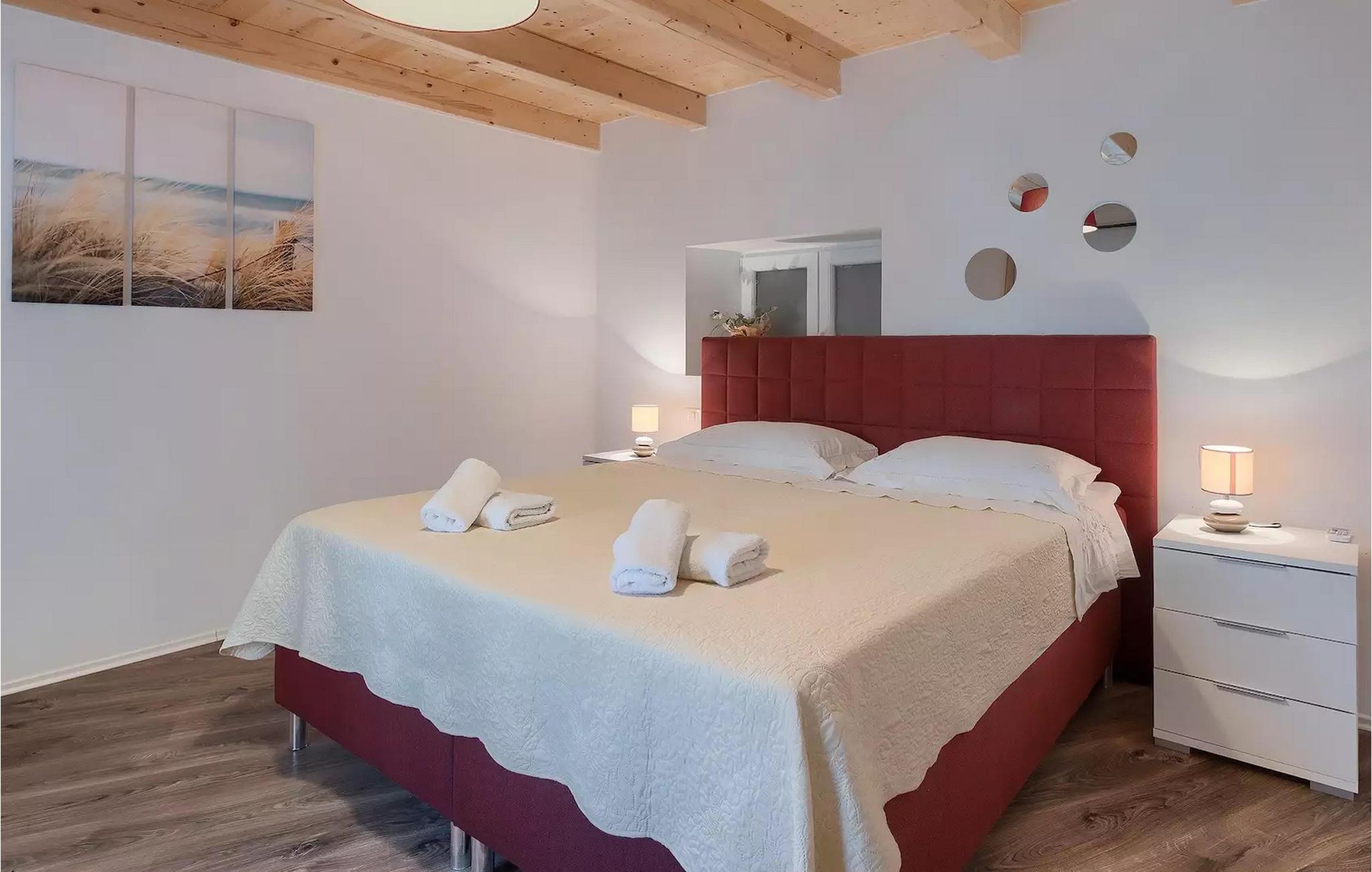 Die Villa Antonici befindet sich in einer ausgezeichneten Lage in der Nähe des Meeres in Liznjan. Diese moderne Villa kann bis zu 6 Personen beherbergen und bietet alles, was Sie für einen erholsamen Urlaub benötigen. Die Villa besteht aus 2 separaten Gebäuden, die durch eine Außenterrasse verbunden sind. Das einstöckige Gebäude der Villa besteht aus einer voll ausgestatteten Küche, mit allem, was Sie brauchen, um köstliche Mahlzeiten für Familie und Freunde zu kochen, wie ein Esszimmer, ein Wohnzimmer und eine Toilette. Das Erdgeschoss des zweiten Gebäudes besteht aus einem Schlafzimmer, einem Badezimmer und einem Abstellraum. Im ersten Stock gibt es zwei weitere Schlafzimmer und ein Badezimmer. Die geräumige überdachte Terrasse mit einem Essbereich ist von diesen beiden Gebäuden aus leicht zugänglich. Auf der Terrasse gibt es auch einen Holzkohle- und einen Elektrogrill für die Zubereitung von Fleischspezialitäten und Gemüse der Saison. An heißen Sommertagen können Sie sich im Pool oder in der Außendusche im Garten erfrischen. Der Pool ist von Liegestühlen umgeben. Ihre Kleinen können sich beim Badminton spielen oder auf dem Trampolin springen entspannen. Es gibt auch vier Parkplätze. Verbringen Sie Ihre Tage mit einem Sonnenbad am Pool und genießen Sie am Abend traditionelle Köstlichkeiten und unbeschwerte Gespräche mit Ihren Lieben. Buchen Sie die Villa Anotnici, denn sie ist eine ideale Wahl dafür :)Die wunderschön restaurierte Villa Antonici befindet sich in Liznjan, in einem kleinen Fischerdorf mit einem natürlich geschützten Hafen auf einer kleinen Halbinsel im Süden Istriens. Es gibt bis zu 28 km schöne und unberührte Strände, die größtenteils felsig sind. Liznjan ist ein idealer Ort für Naturliebhaber und für diejenigen, die dem Verkehr entfliehen und gleichzeitig in der Nähe der Unterhaltungsmöglichkeiten des Touristenzentrums wohnen möchten. Von den historischen Sehenswürdigkeiten empfehlen wir Ihnen die Kirche "Gospa od Kuj" aus dem 17. Jahrhundert sowie die Kirche Sv. Martin von 1879. Wenn Sie in Ližnjan sind, sollten Sie unbedingt größere touristische Ziele wie Rovinj, Pula und Porec besuchen.
