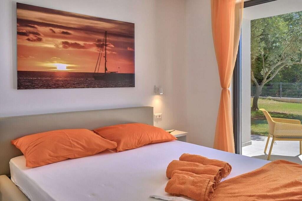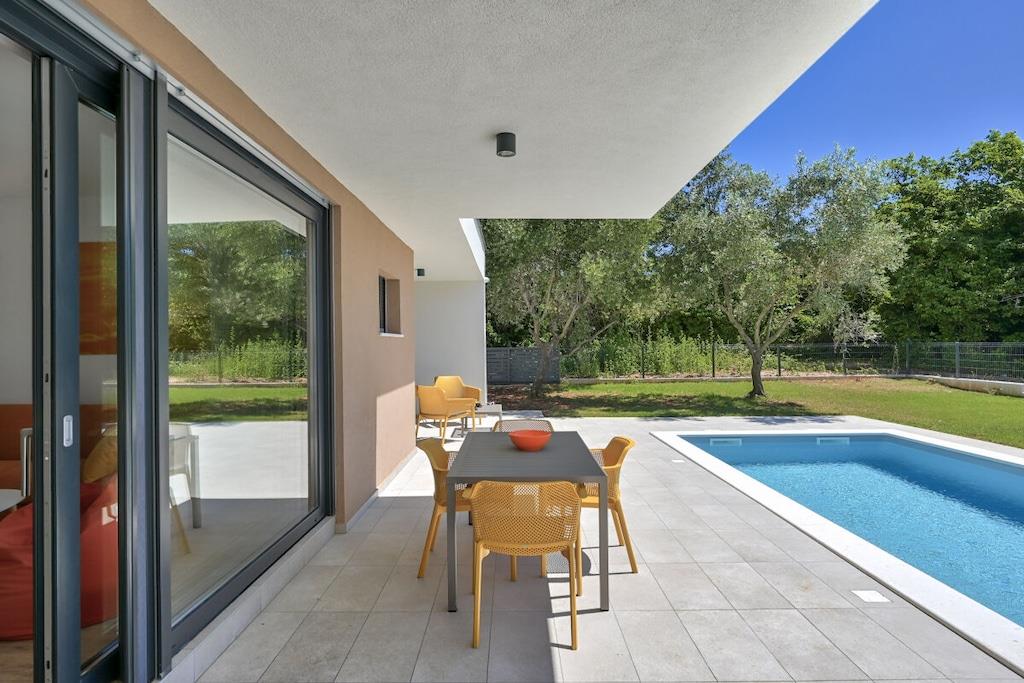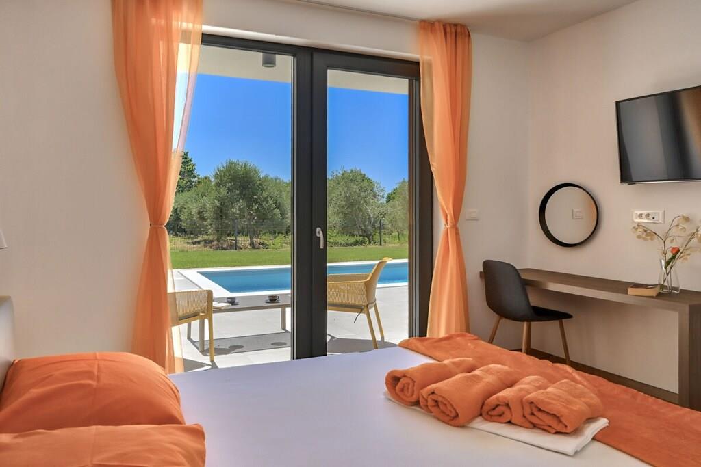 Are you looking for an intimate place to relax with your loved ones? Villa Solis offers all that and much more. Located on the edge of the small fishing village of Ližnjan and surrounded by olive trees, it offers exactly what you have been looking for - a peaceful and private place for you and your significant other. Villa Solis is a modern, fully equipped villa for 2 adults and 2 children up to 14 years old. It offers a bedroom with a large double bed, a bathroom and a living room with a fully equipped kitchen and dining area. The living room and bedroom both have air conditioning and smart satellite TVs and both offer direct access to the terrace, heated pool and garden. Facilities include free WiFi and a fenced private parking space, washing machine, fully equipped kitchen with dishwasher, barbecue with outdoor dining area, sun loungers and a large double bed under the olive trees. The garden is fully fenced so that your pet can also enjoy the holiday to the fullest (yes, we are pet friendly too!). Visit us and recharge your batteries at Villa Solis.