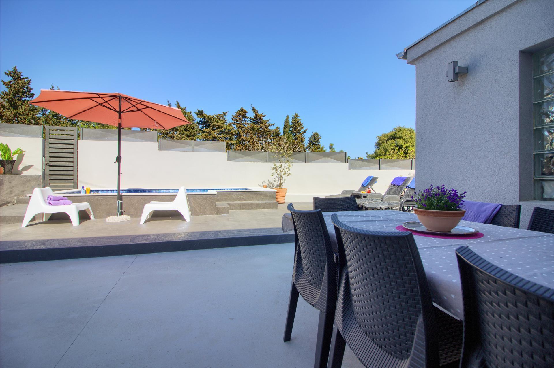 Villa Zoya is within walking distance of the beach. (900m). It is on 380 square meters of private land. The villa offers space for 8 people and is distributed over two floors. On the ground floor is an apartment with living room with a sofa bed for two additional persons a fully equipped kitchen with dining area and a private bathroom. On the first floor there are two bedrooms, one with double bed and larger room for 4 persons with two double beds and bathroom. You can relax in the green garden with private pool, lie on sunbathing and enjoy the sun beauty or you can also prepare specialties on charcoal grill for your friends. If you want to go to the beach just take your towel and in a few minutes walk you are on the beach but also within walking distance there are amazing restaurants. The Villa Zoya is air-conditioned, has free WiFi, private parking for 2 cars, children's playground and offers everything for a pleasant holiday.