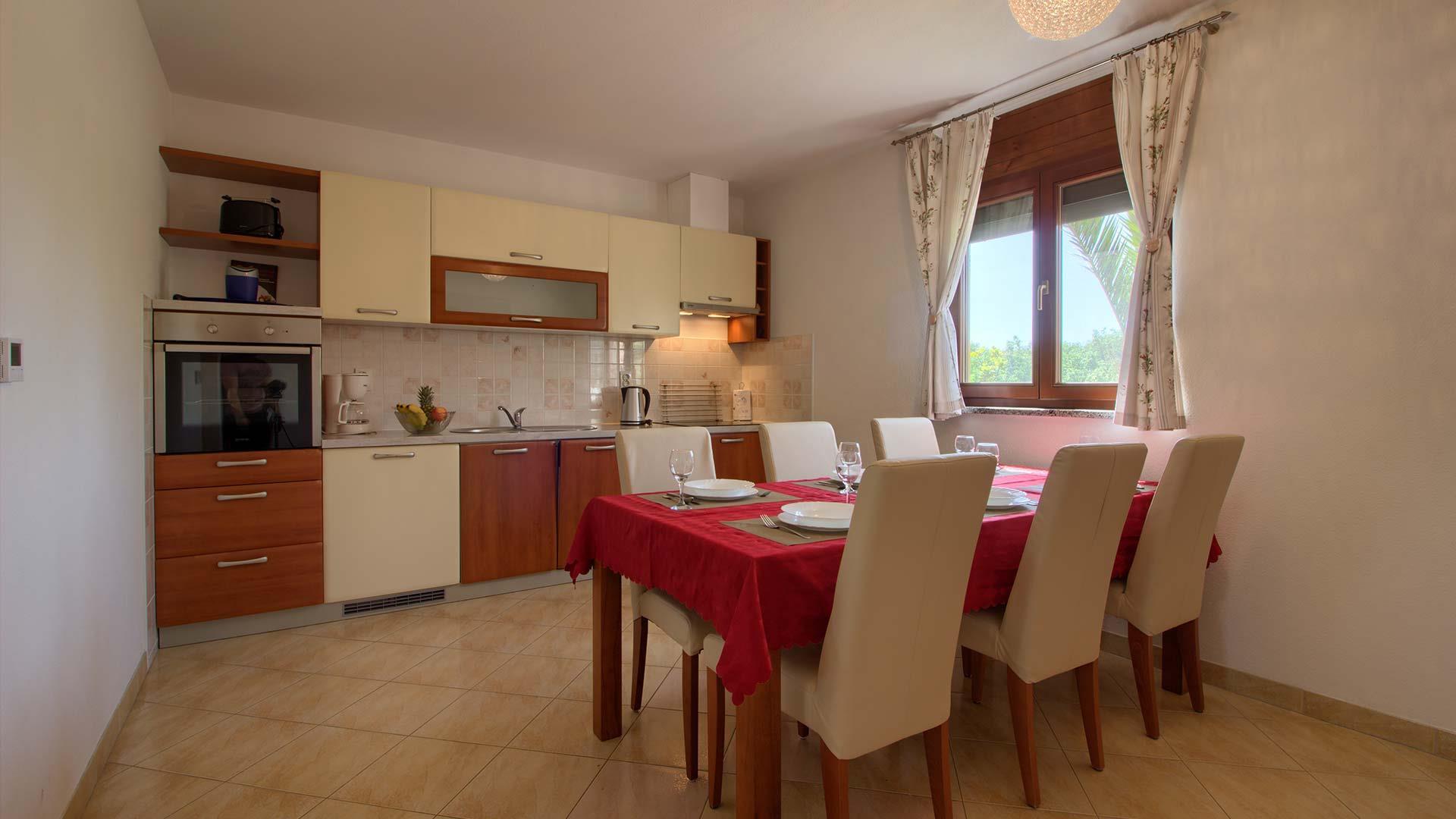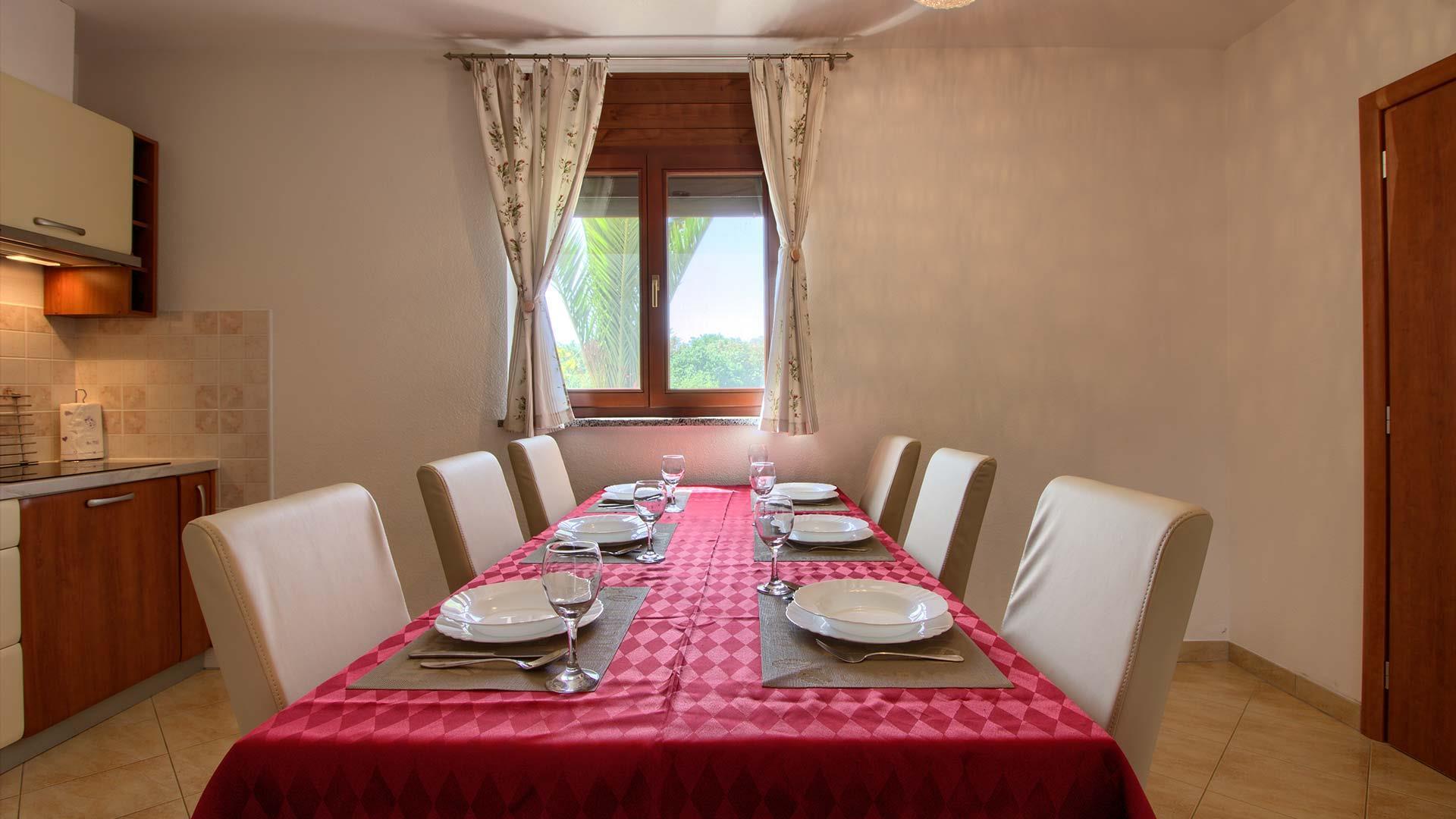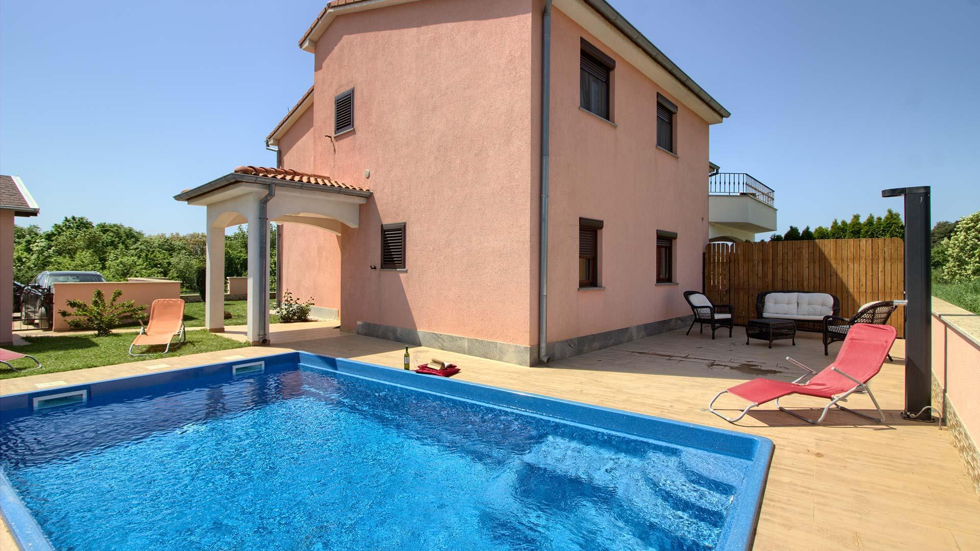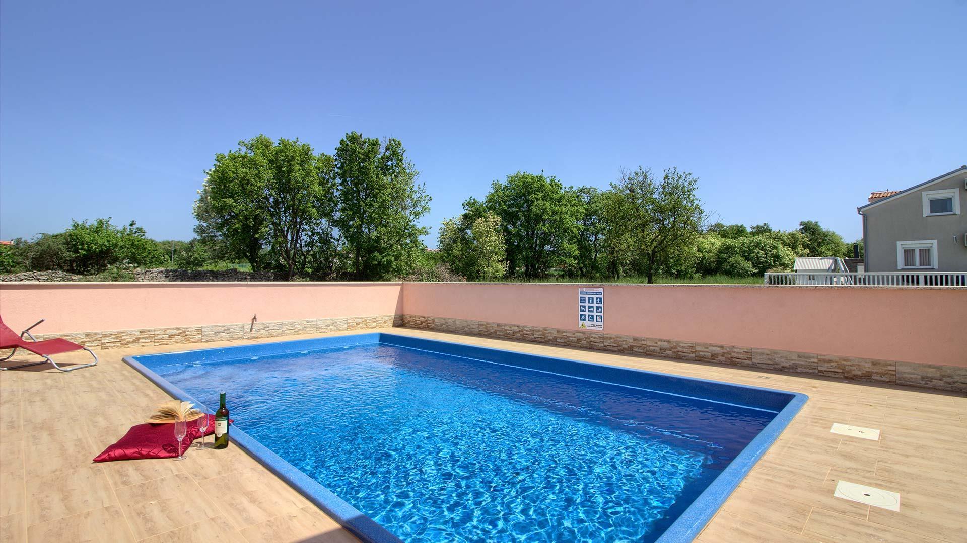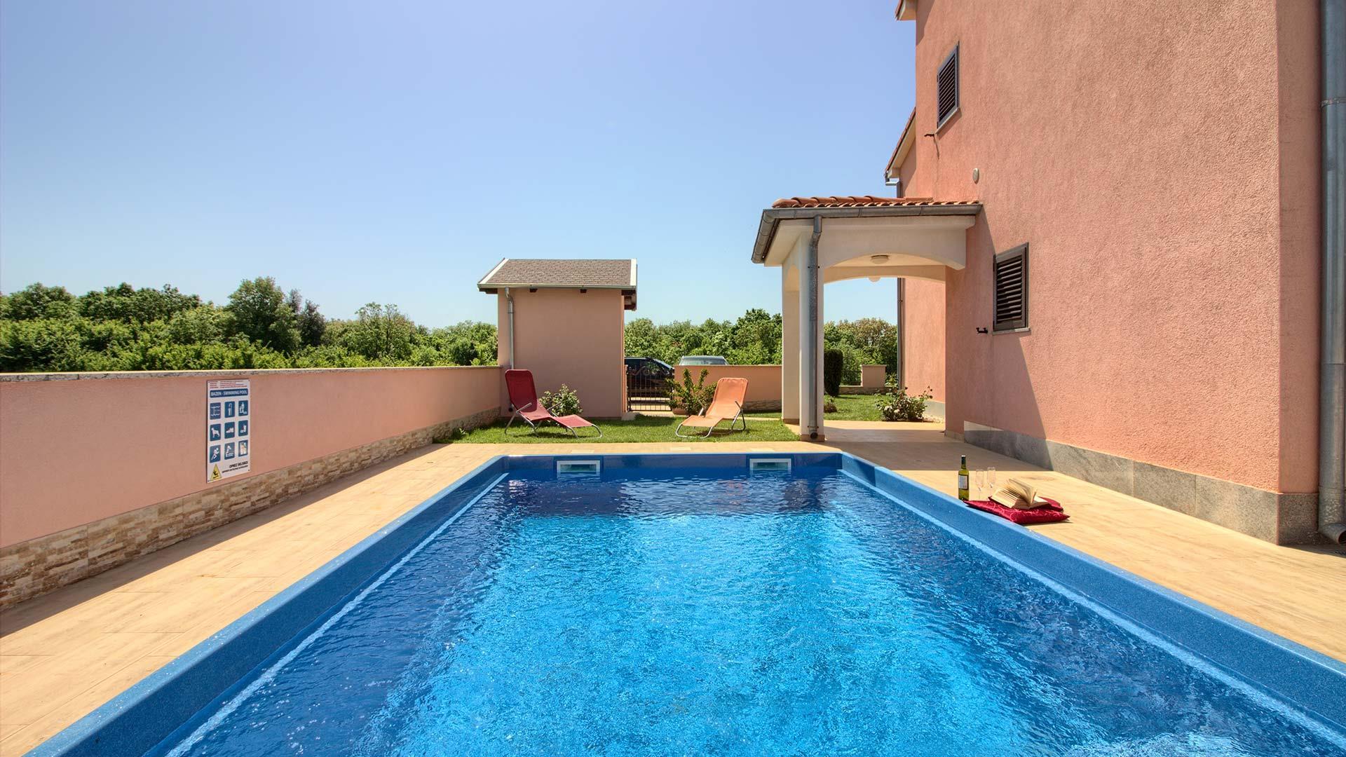 Villa Mary is located in Liznjan, near Medulin. Villa Mary can accommodate up to 7 people and offers plenty of space for a pleasant holiday. The villa has 3 beautiful bedrooms with double beds and 2 bathrooms with shower and bathtub. The ground floor has a large living room with kitchen and dining area. From the living room you have access to the pool and terrace where you can grill with friends and family. The yard is pleasantly decorated with garden furniture, barbecue, terrace with sun loungers and parasol next to a large private pool on the sunny side and of course free wi-fi in the house and private parking. You can reach the sea on foot in 15 minutes. There are also good restaurants and bars nearby where you can spend your evenings. The coast of Liznjan has beautiful and untouched beaches in the length of 28 km, where you can still find very personal contact with the Mediterranean Sea. Visit Medulin-Ližnjan, an unforgettable city of rich cultural heritage.