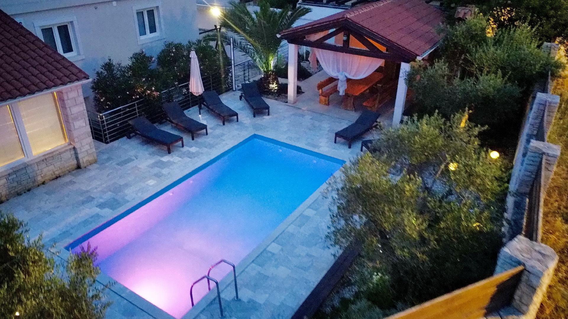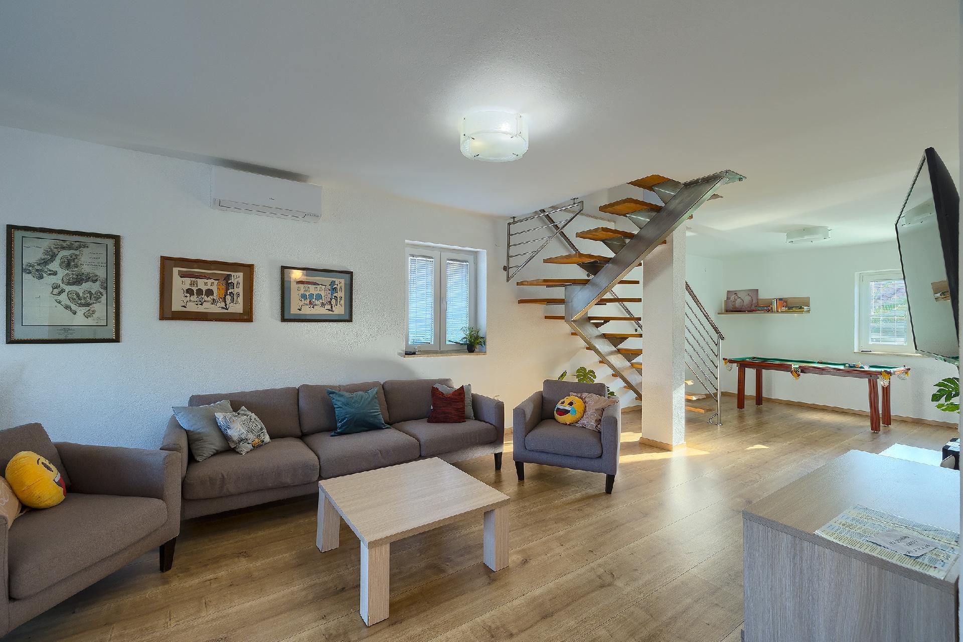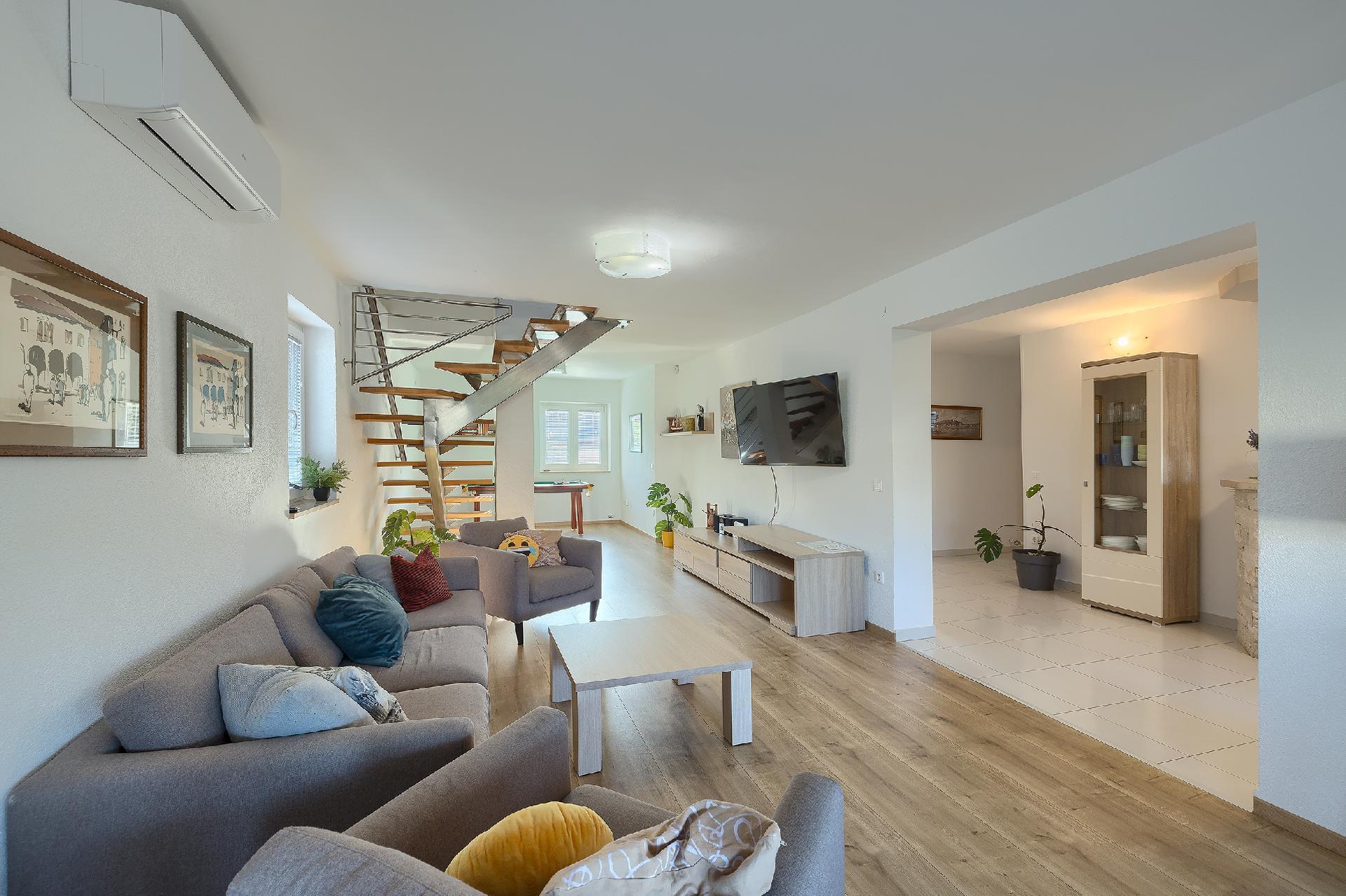 The beautiful outside covered terrace with barbecue, balcony with perfect panoramic sea view and swimming pool invites you for a perfect and relaxing holiday. The house of 190 m2 is well furnished and fully equipped. The House has: 3 terraces, 6 bathrooms, 5 bedrooms, (3 bedrooms with double beds, 1 bedroom with a double bed and a single bed and 1 bedroom with separate beds), living room, dinning room, fully equipped kitchen and spa area (with Jacuzzi,sauna and small gym). There is a billiard, table soccer, picado and fast internet connection to make your stay more comfortable.The house is located on a walking distance from the sea, beach (cca 1 km ), market and local restaurants. Around the house there is a beautiful Mediterranean garden with olive trees, Mediterranean plants, herbs and spices. The garden offers a playground for kids with slide and swing. The area and nature around the house is quiet with fresh sea air. The city of Pula is 10 and the city of Medulin is 2 kilometers away. All this environment invites you for a perfect relaxing family or sporty holiday. Furthermore,we can arrange favorable transportation from/to airport or other destinations and special trips and tours of local attractions.